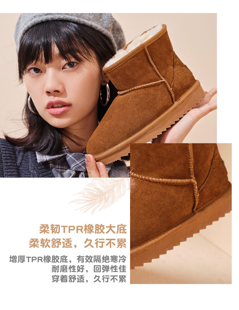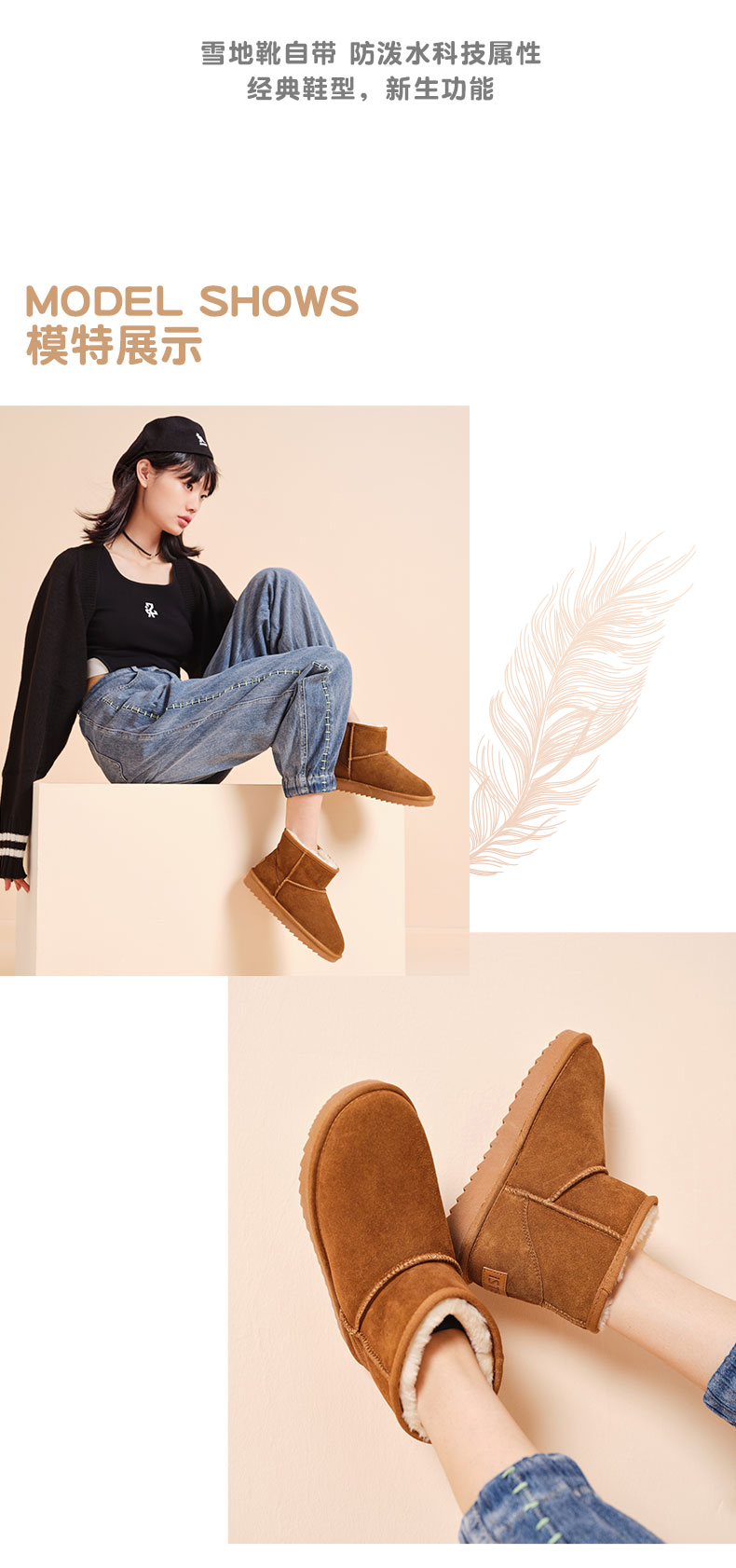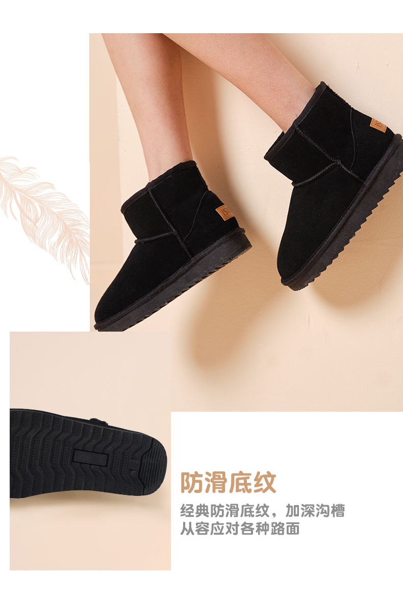 istep新款防泼水雪地靴防滑大底时尚百搭加绒保暖短靴冬鞋女鞋