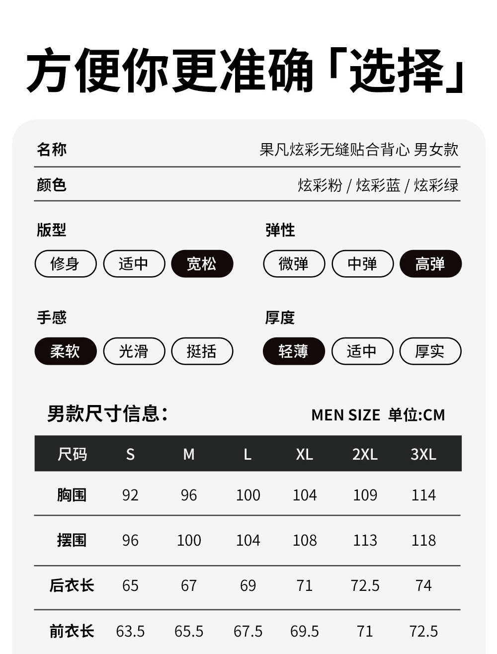 果凡男女款炫彩无缝贴合背心跑步运动健身GTD11261/GTD12262