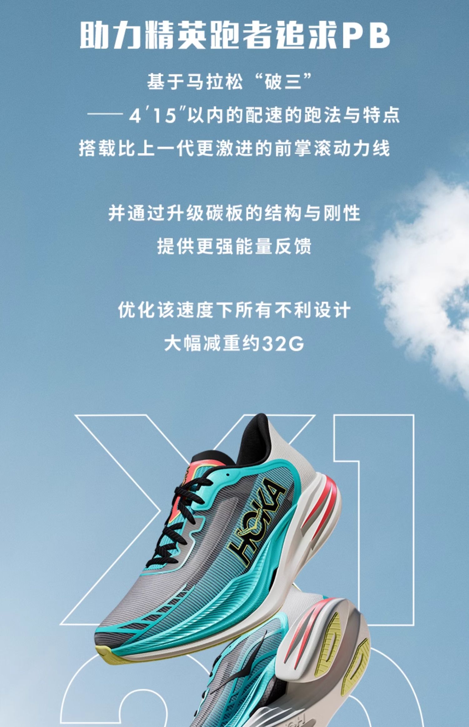 HOKA ONE ONE CIELO X1 2.0 天空中性款竞速路跑鞋