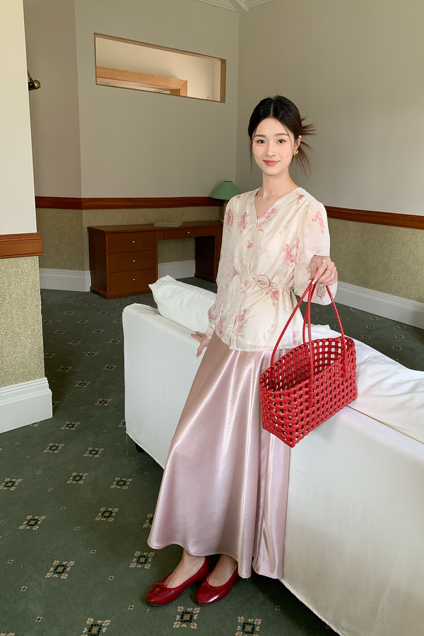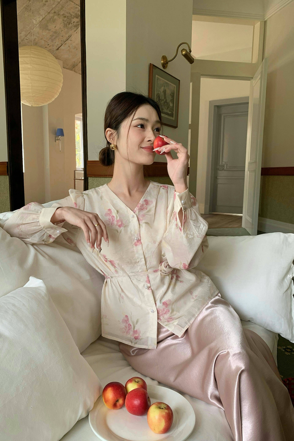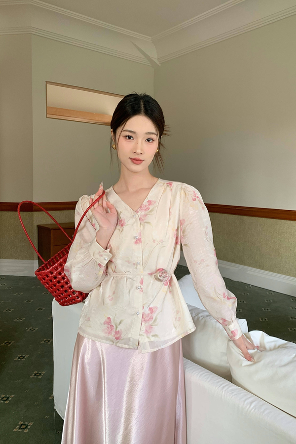 amadella 法式温柔甜美粉色印花衬衫 22347