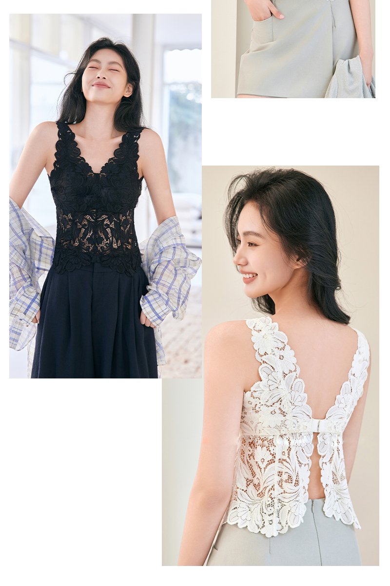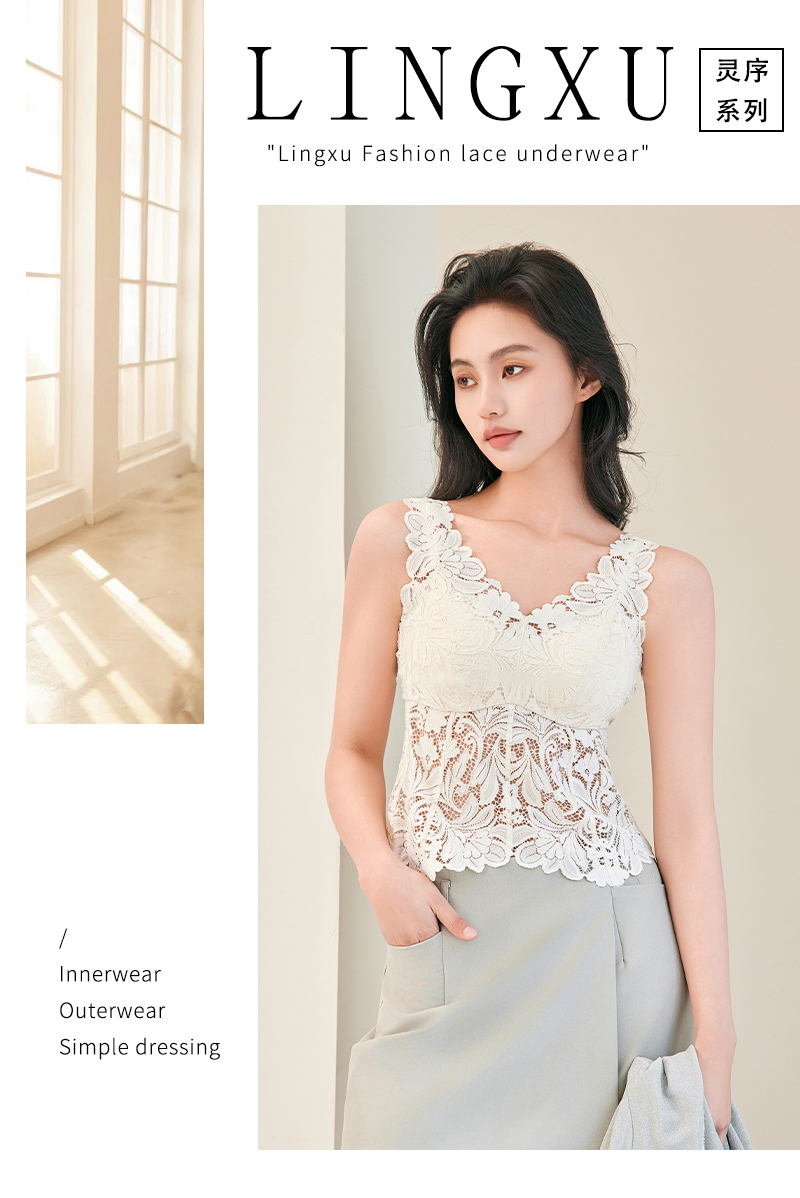 【带胸垫】女士新款蕾丝长款背心宽肩带美背背扣【FF26523】