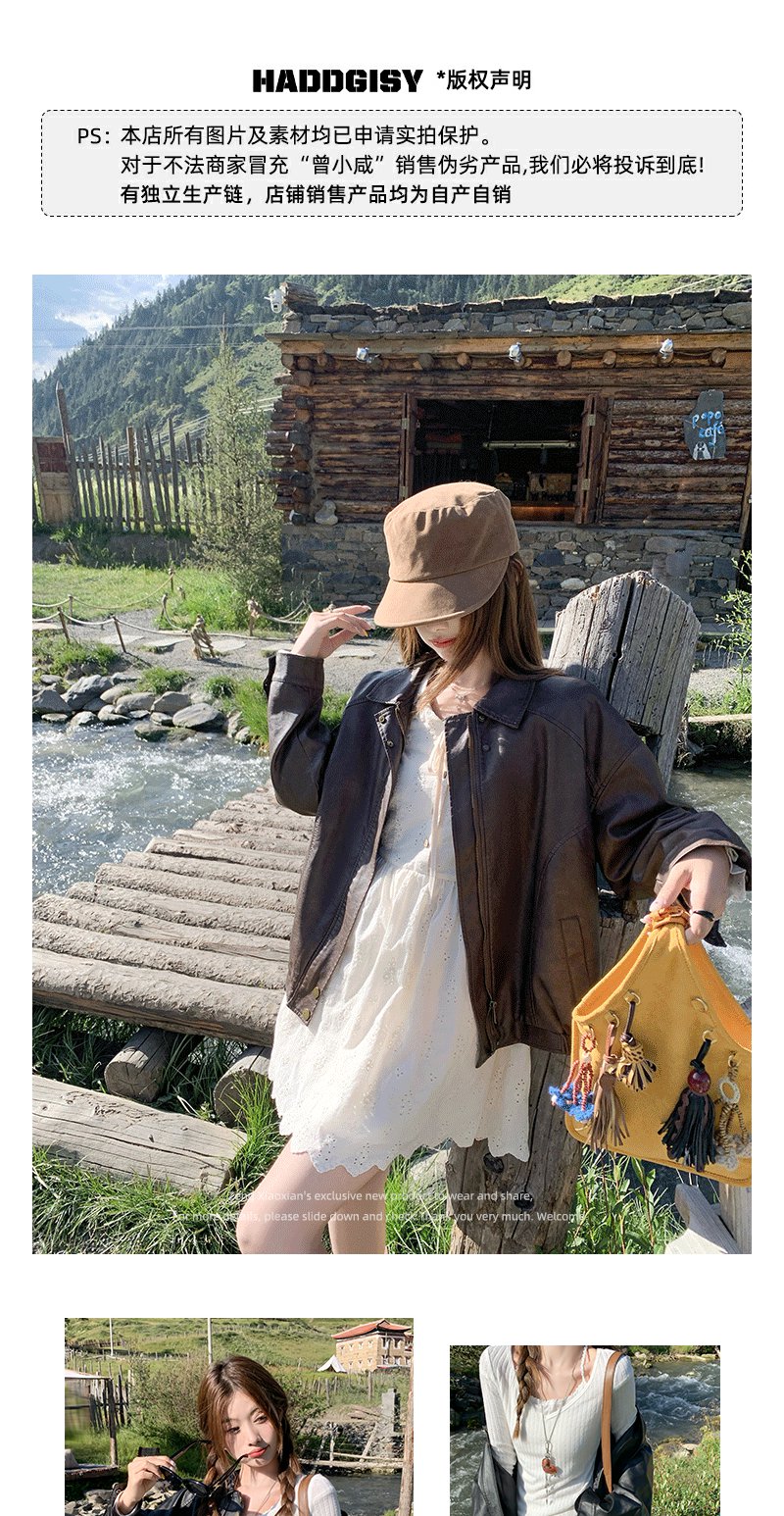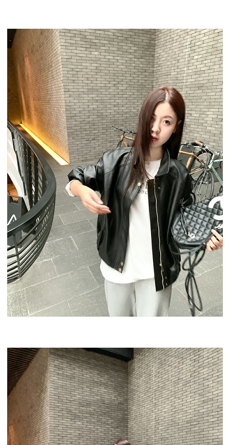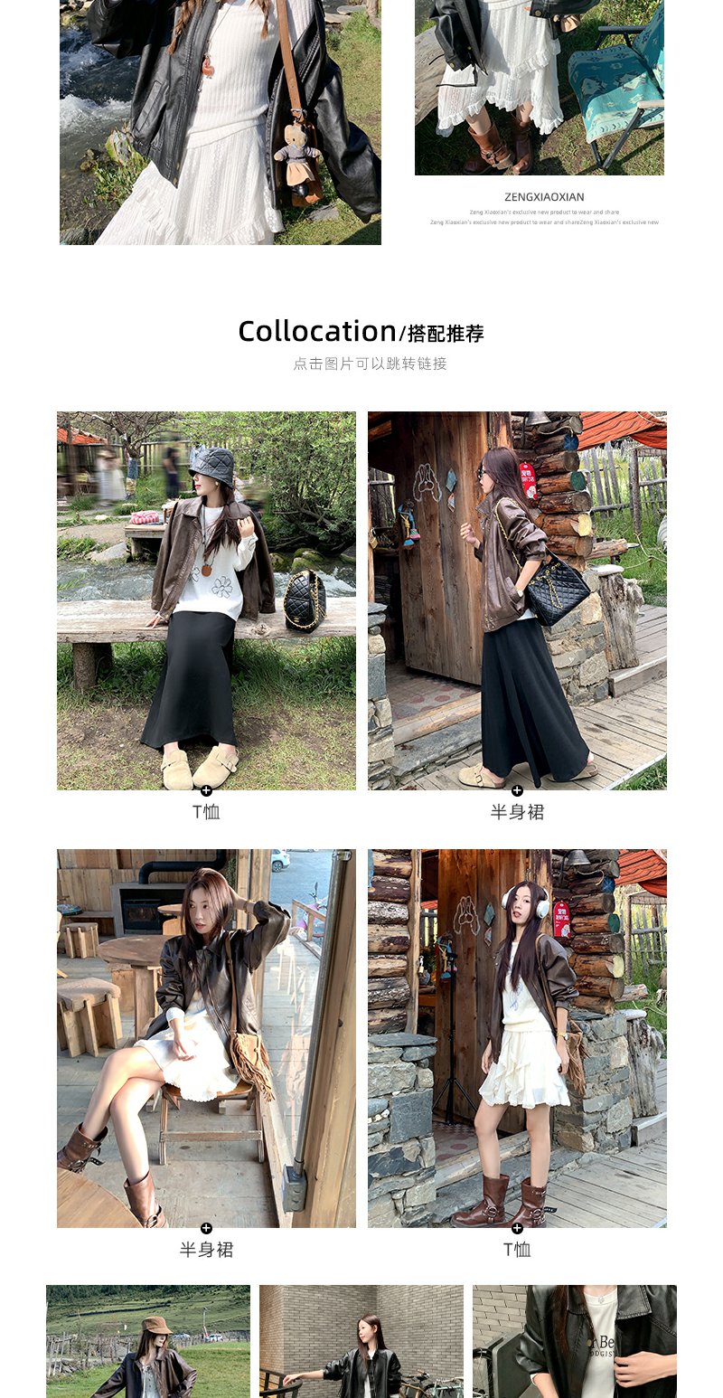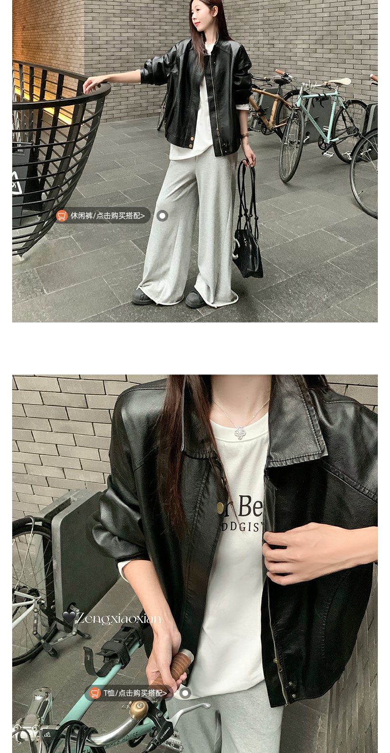 <曾小咸推荐>早秋复古黑色皮衣短外套翻领夹克
