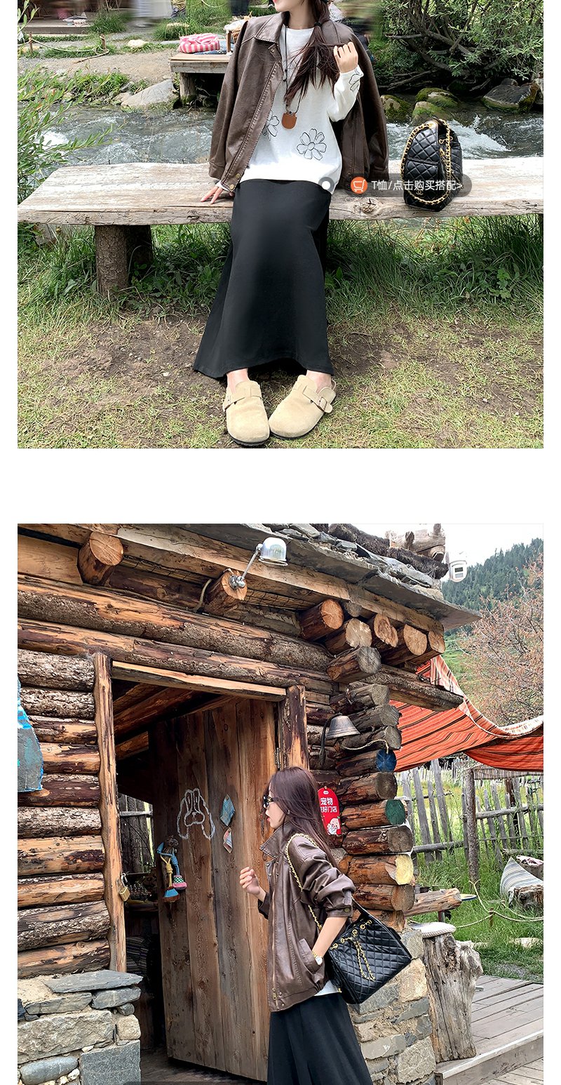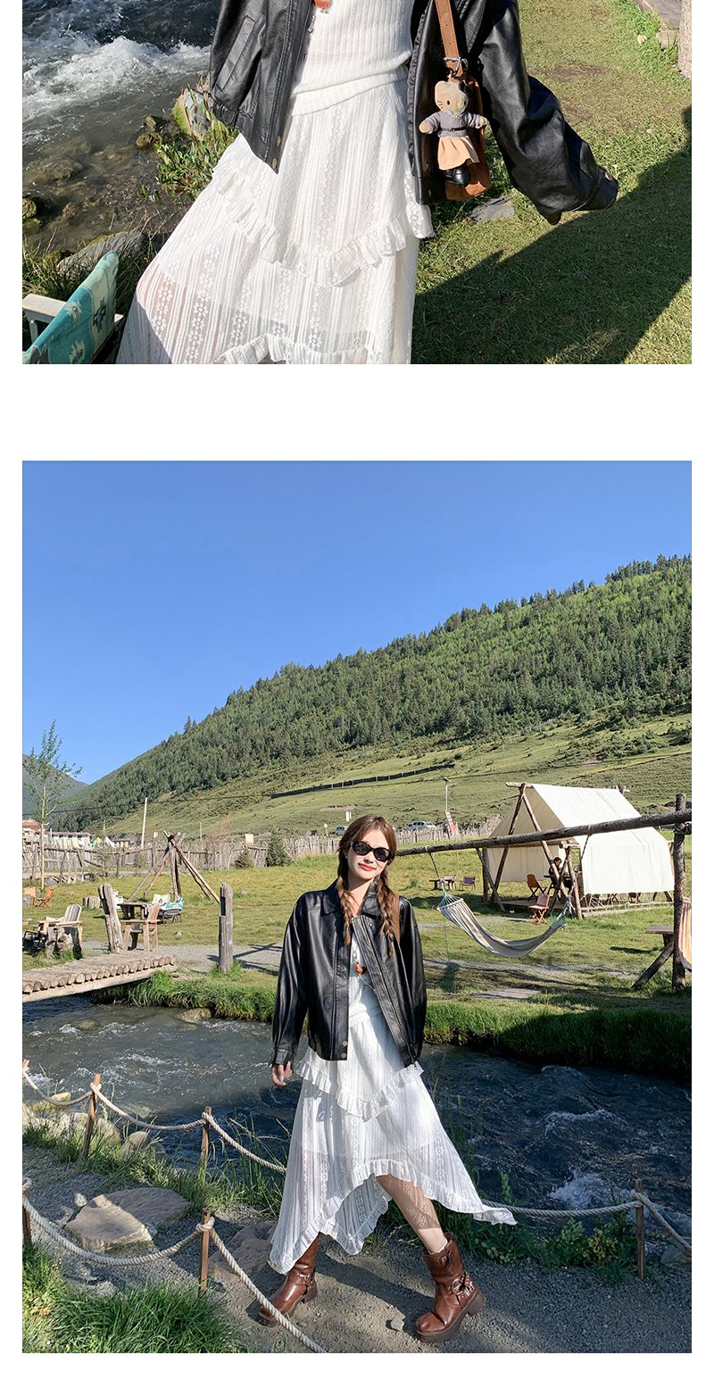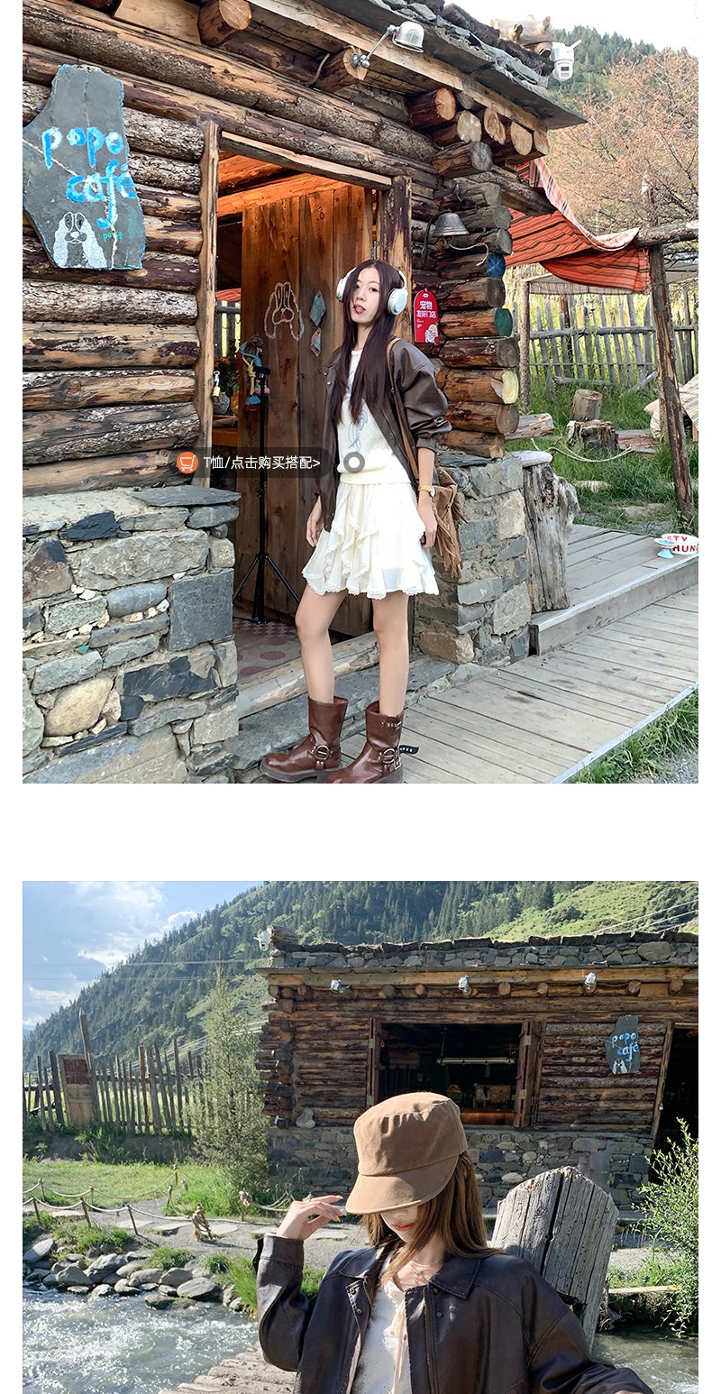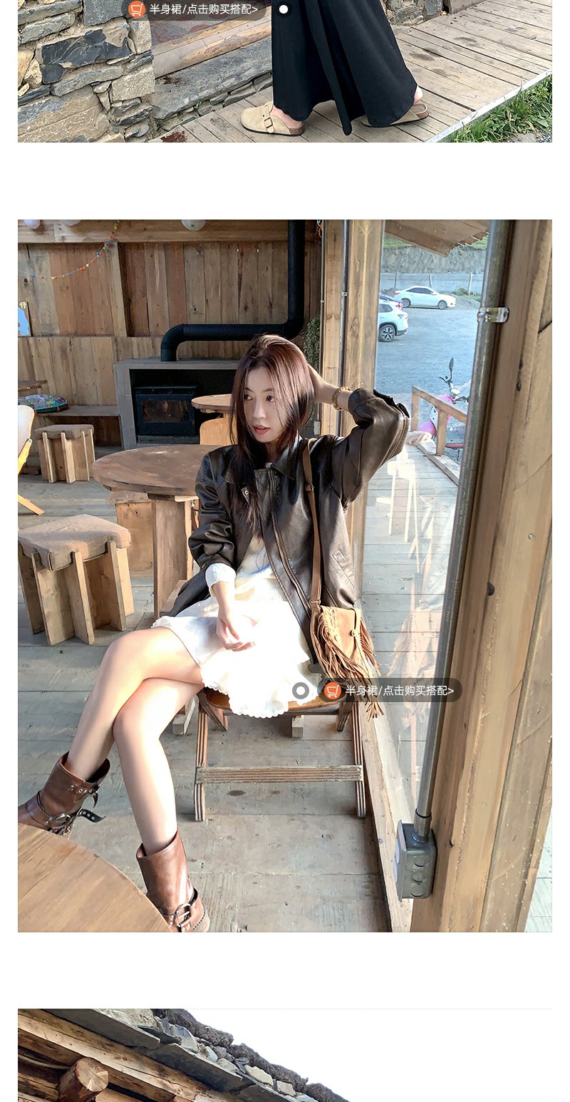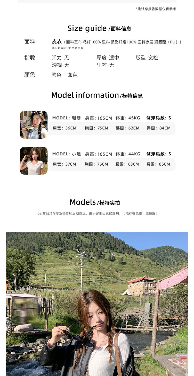 <曾小咸推荐>早秋复古黑色皮衣短外套翻领夹克