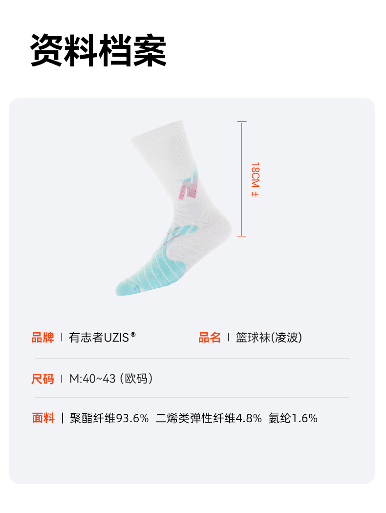 有志者UZIS 篮球袜男专业实战高帮长筒训练防滑精英毛巾底袜[凌波