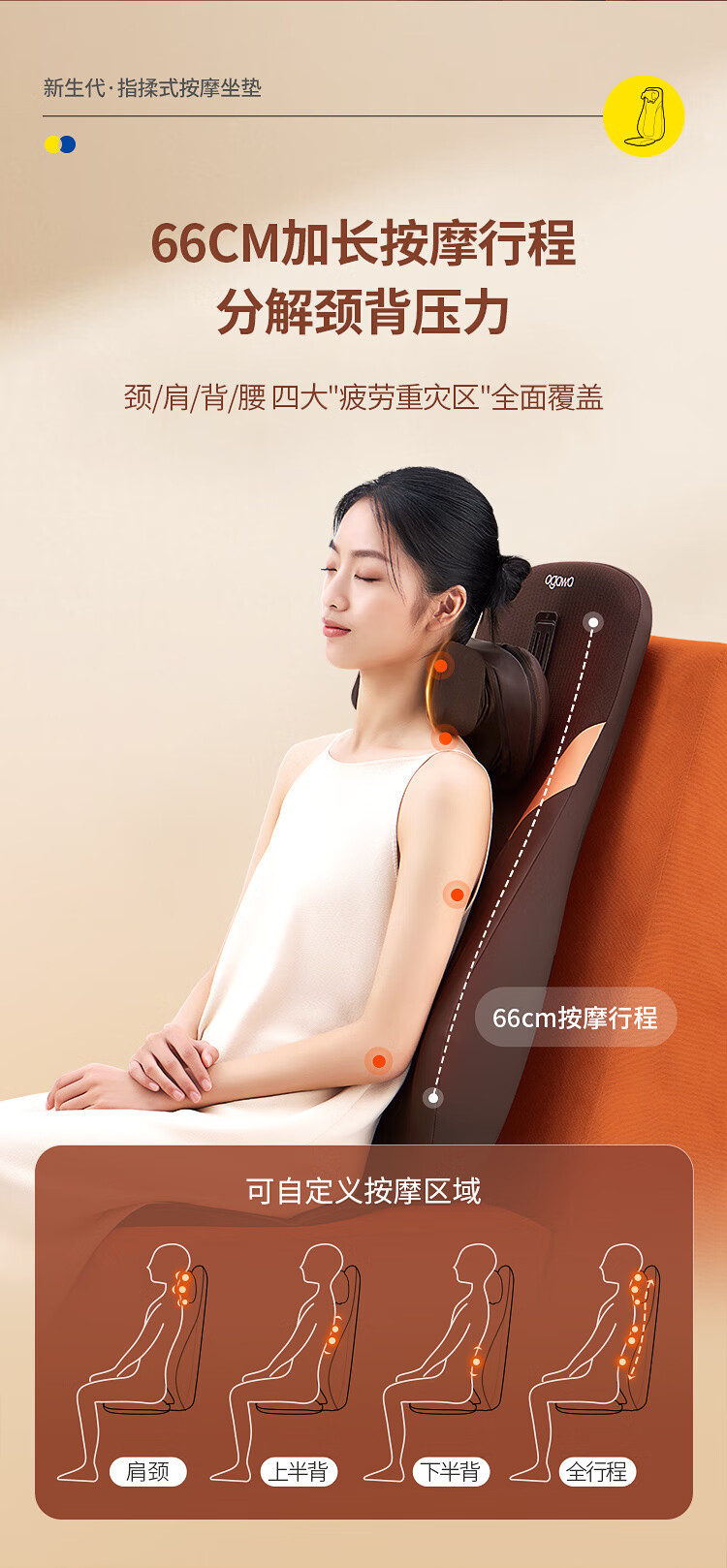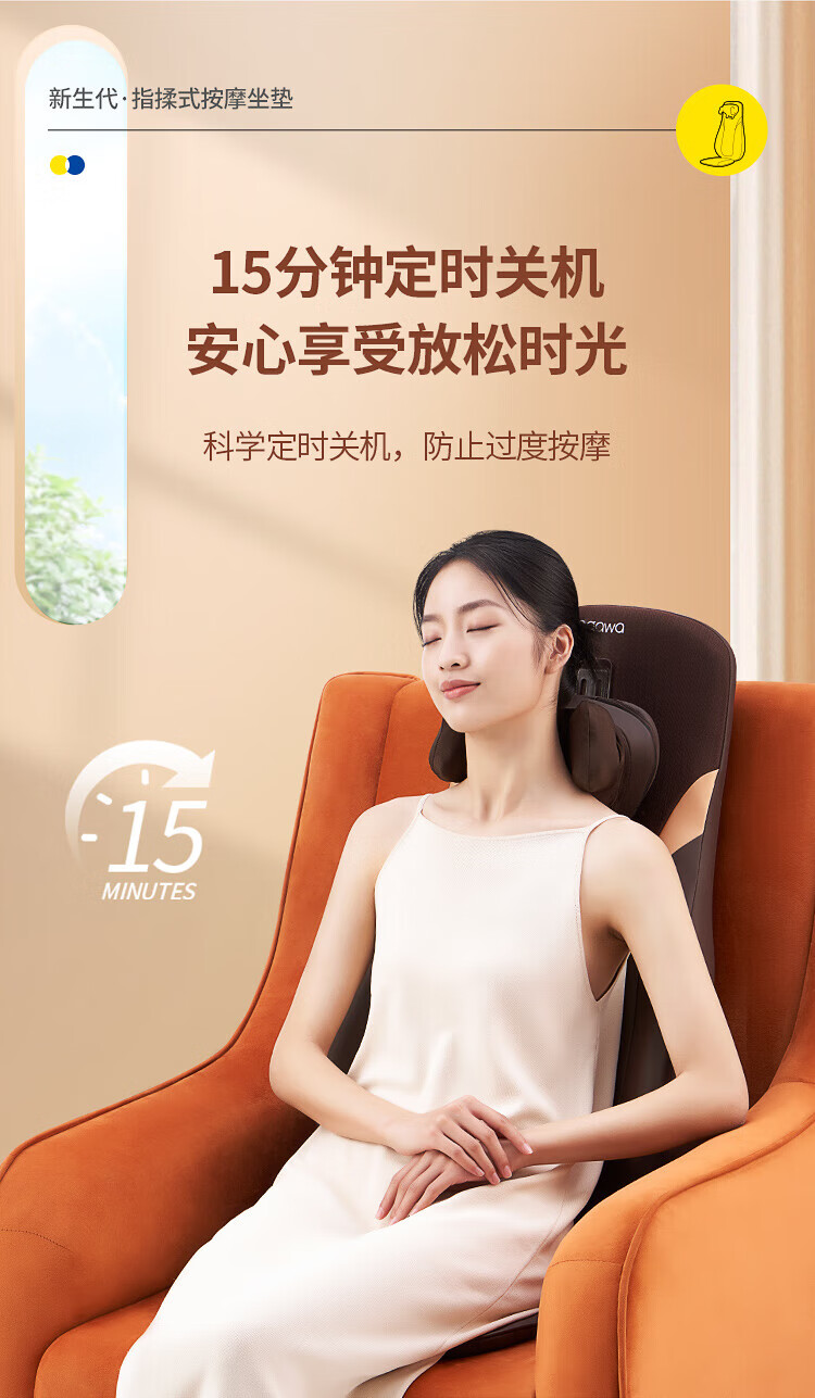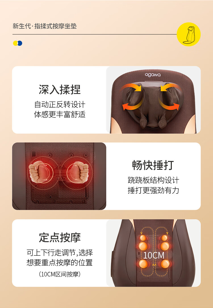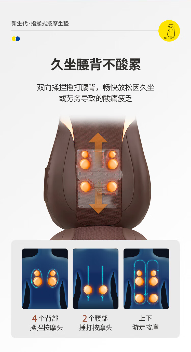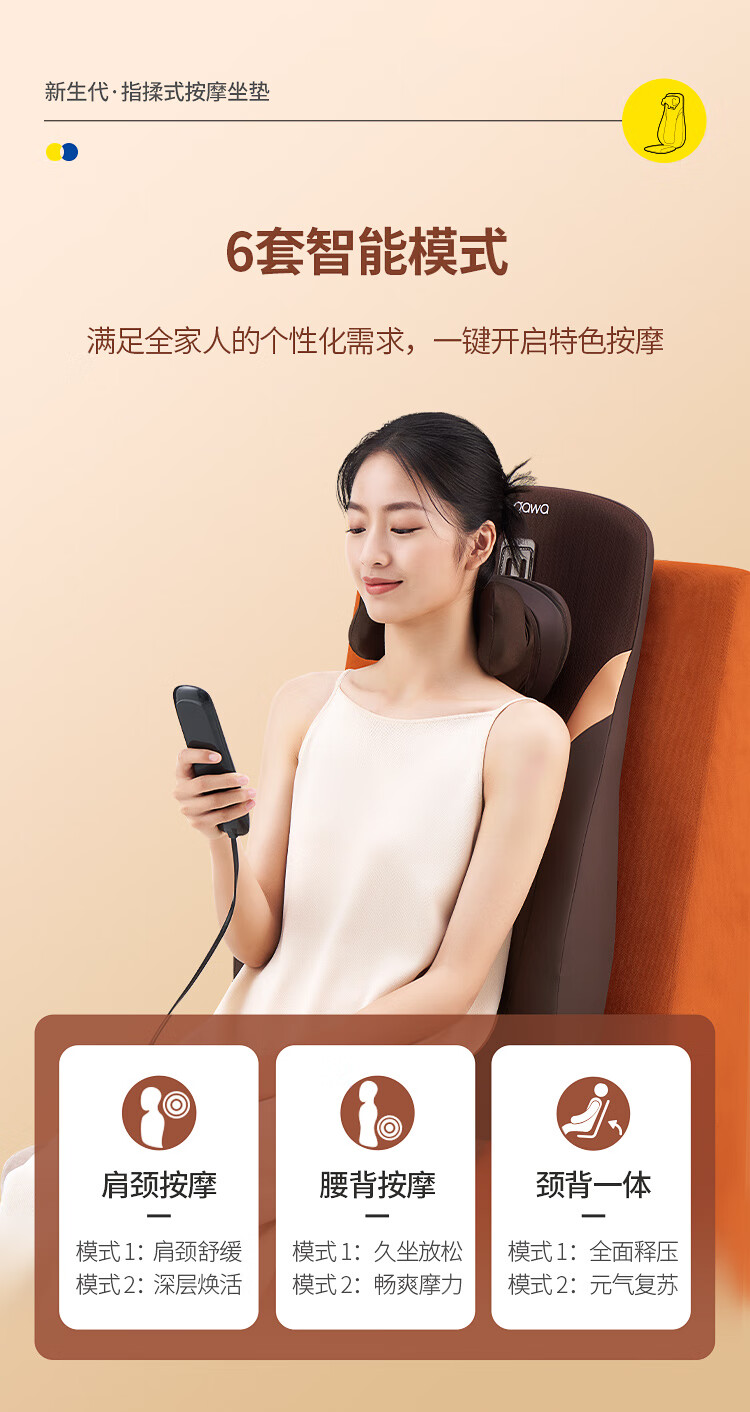 奥佳华按摩垫肩颈椎腰背部靠垫全身多功能热敷久坐按摩仪器送父母长辈男女友生日礼物1305指摩师星云棕