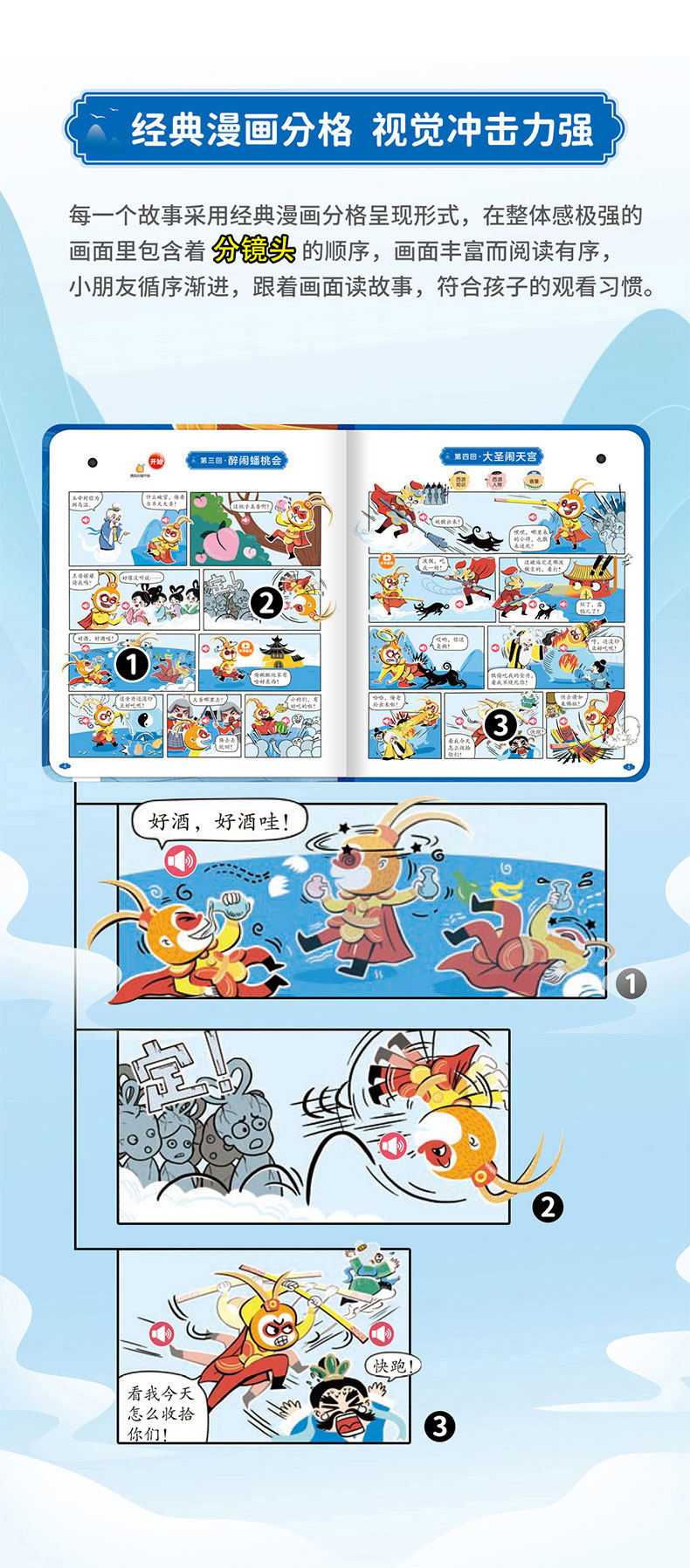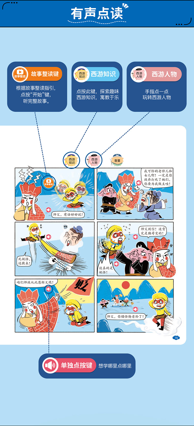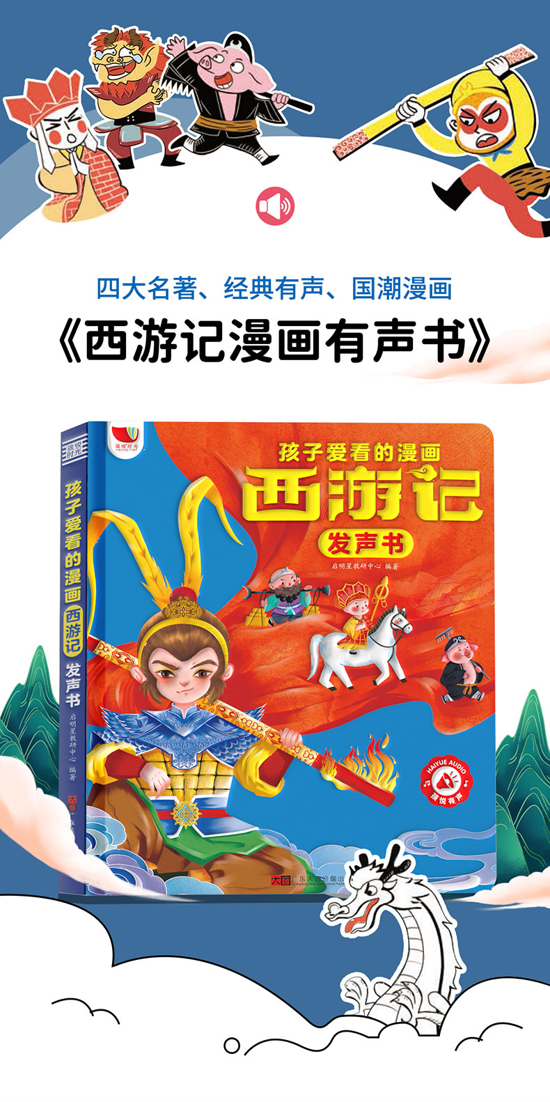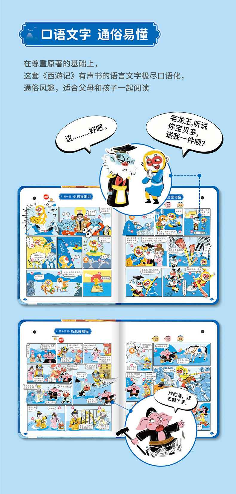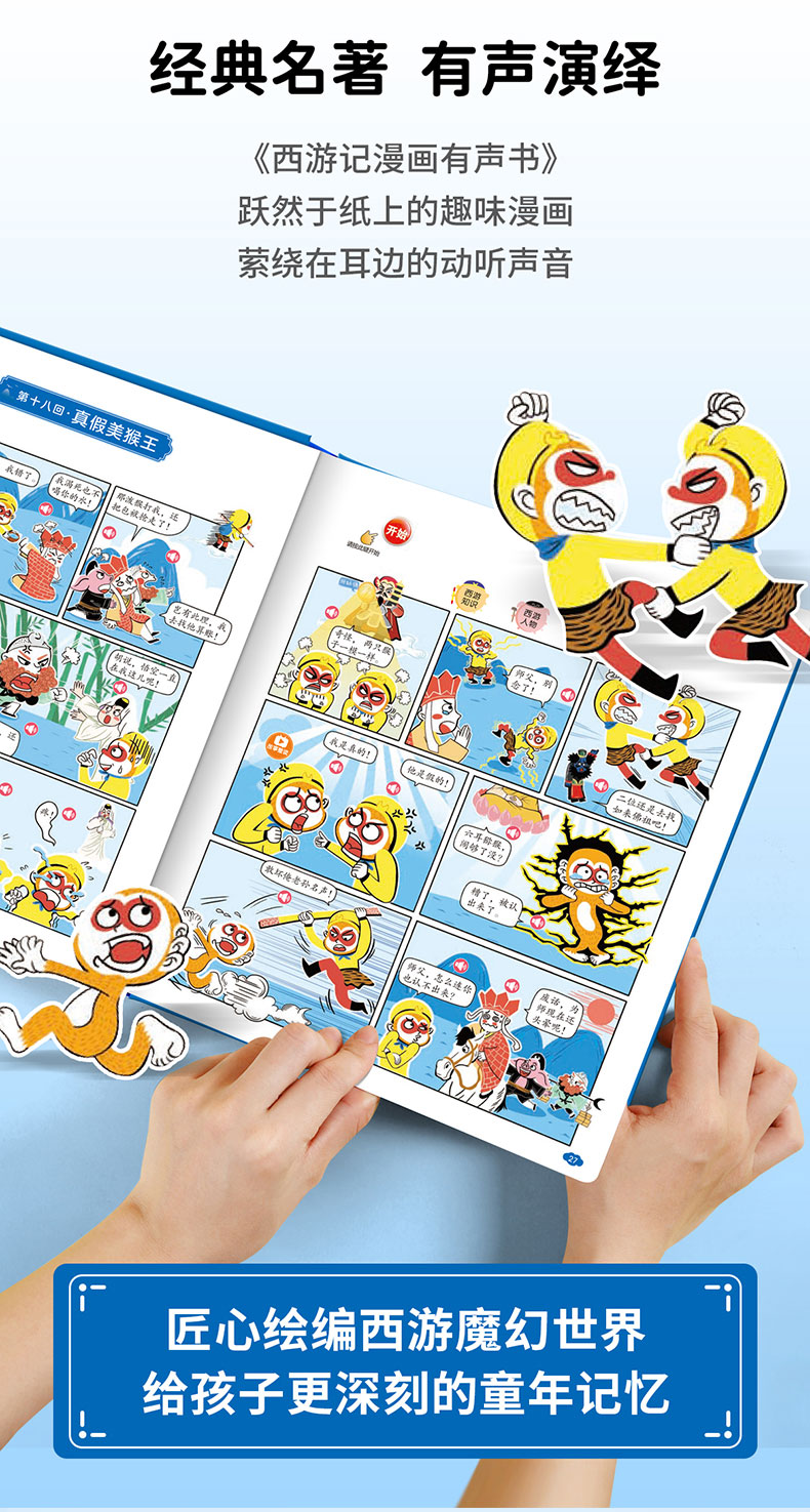 【0-6岁】《孩子爱看的漫画西游记发声书》经典有声国潮漫画