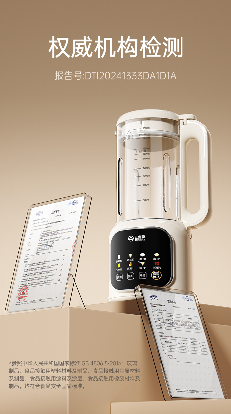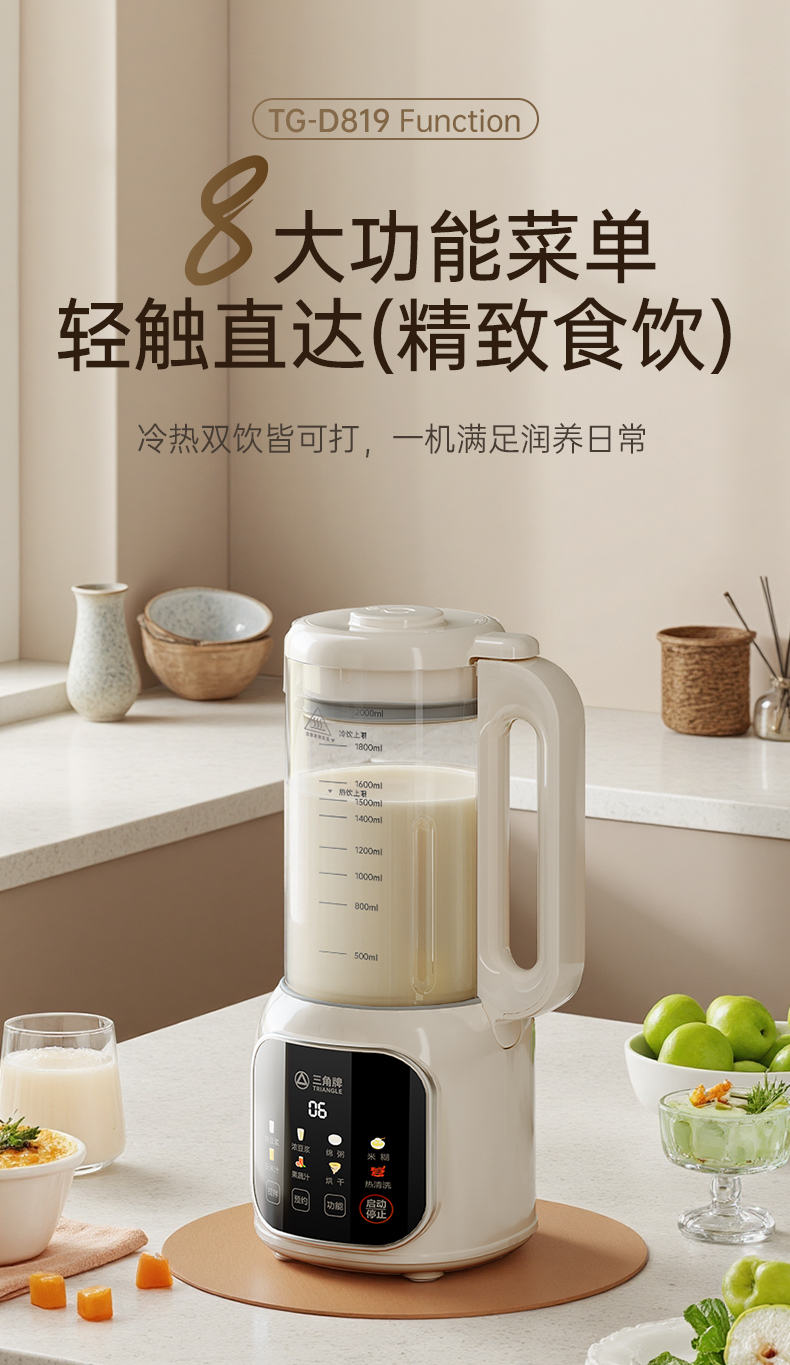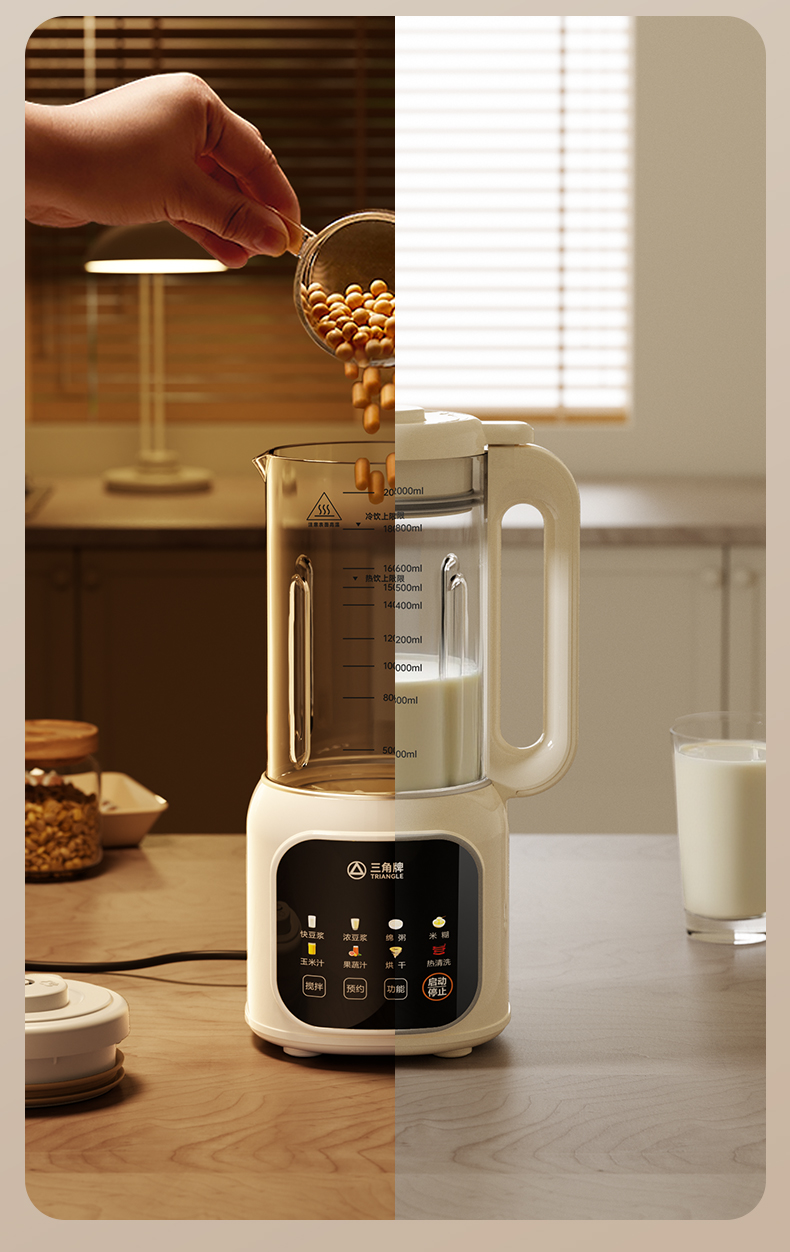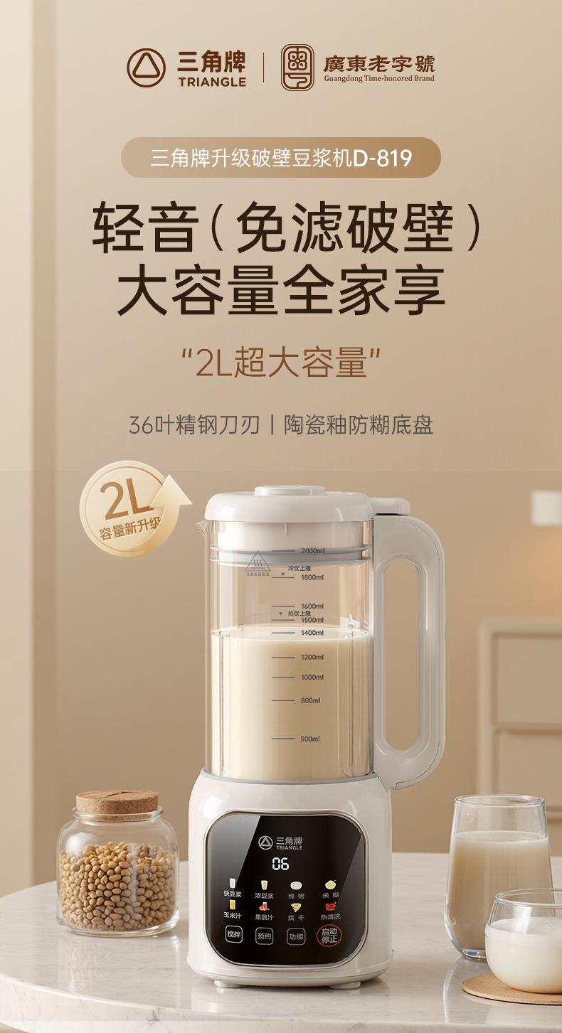 三角牌多功能高硼硅玻璃2L豆浆机D819白
