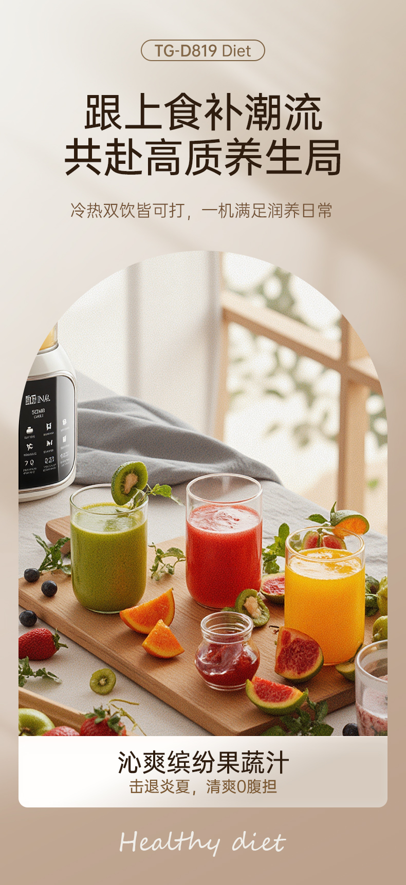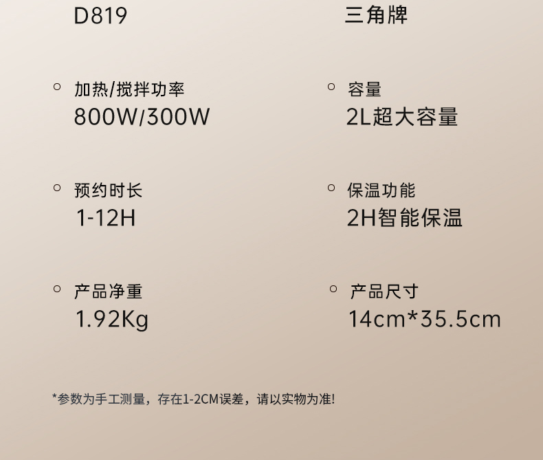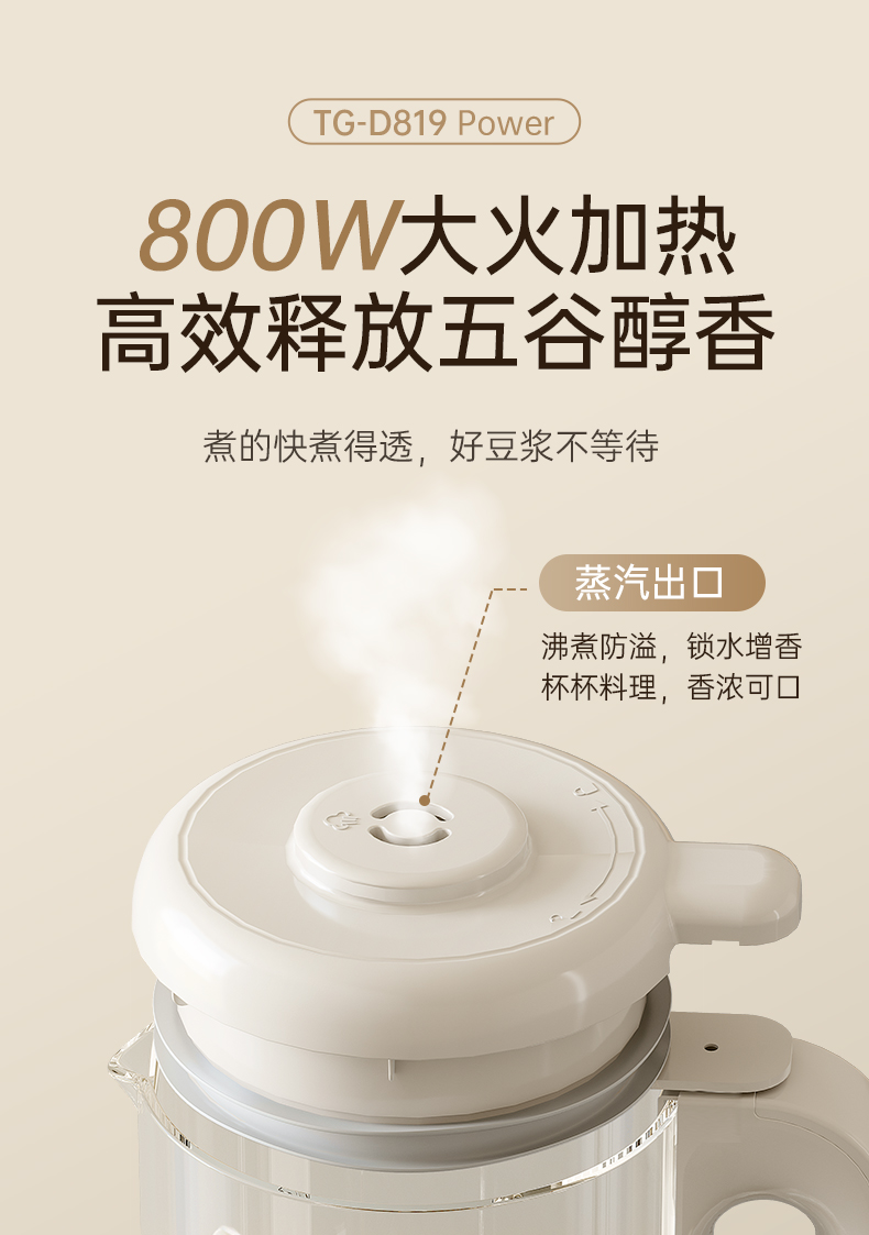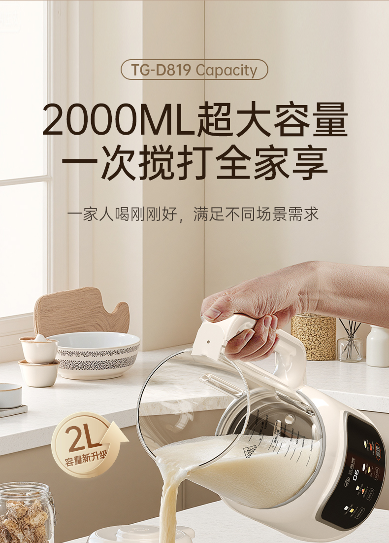 三角牌多功能高硼硅玻璃2L豆浆机D819白