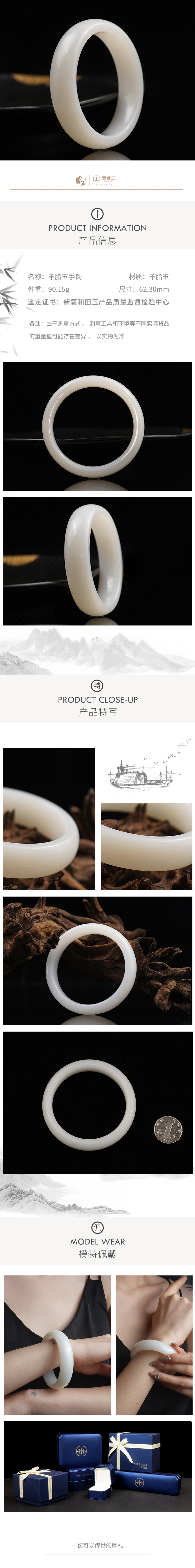 新疆国玉盟世玉和田玉糖羊脂玉手镯62.3圈口【带证书·顺丰物流】