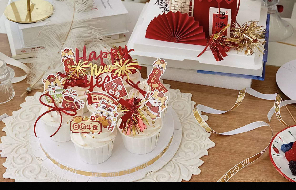 新年元旦杯子蛋糕限定款/无夹心内有卡仕达酱-低糖无添加/下午茶点心