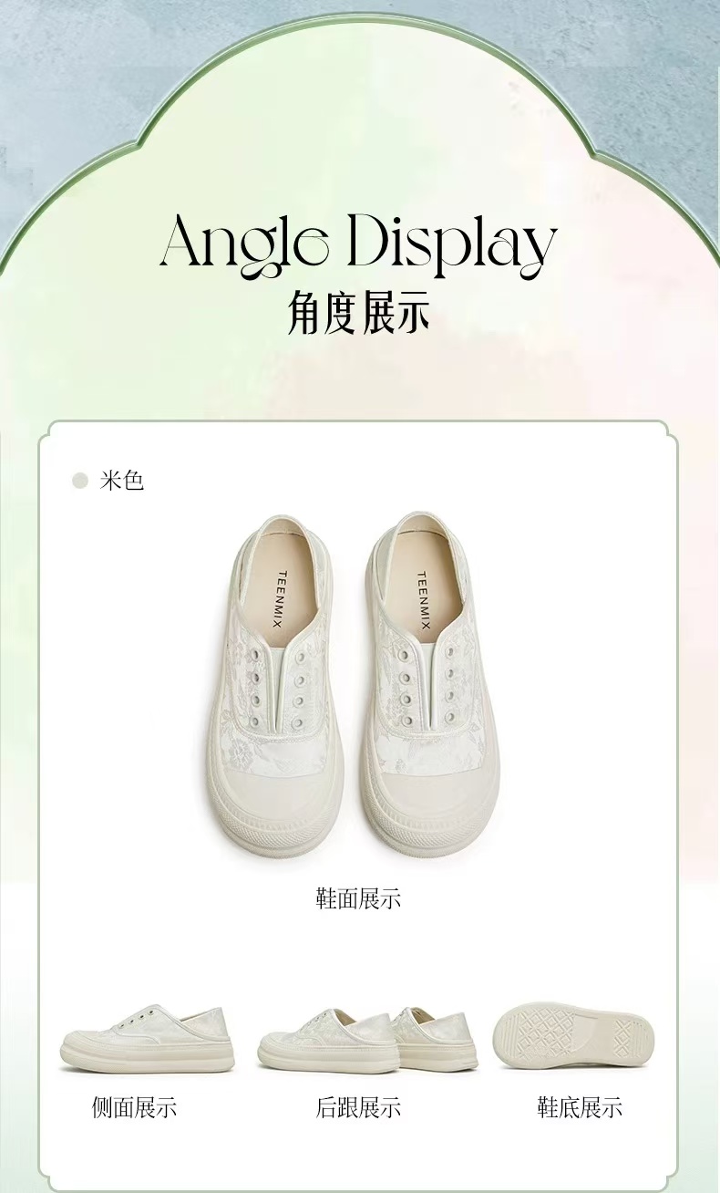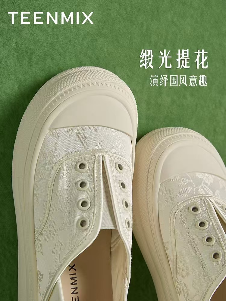 【内购会】天美意新中式小豆蔻厚底增高小白鞋女休闲板鞋帆布鞋2024秋季新款
