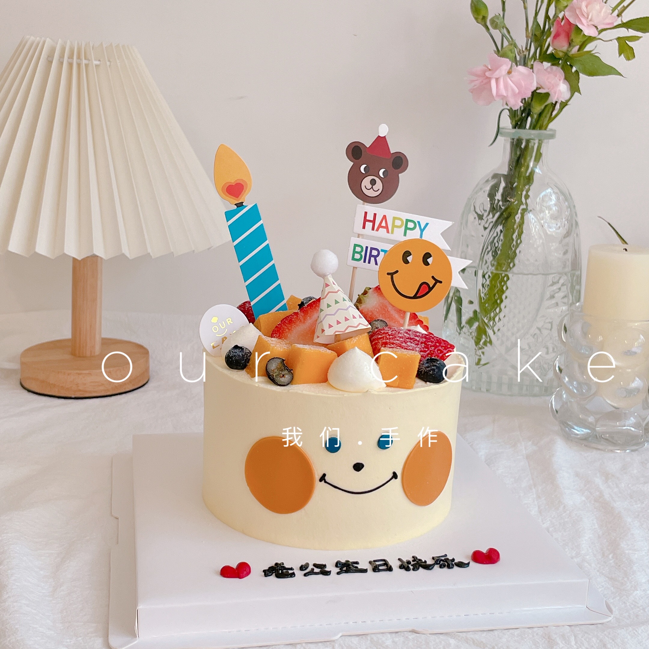 ins风小清新笑脸水果蛋糕(按当季水果装饰)-低糖处理无添加