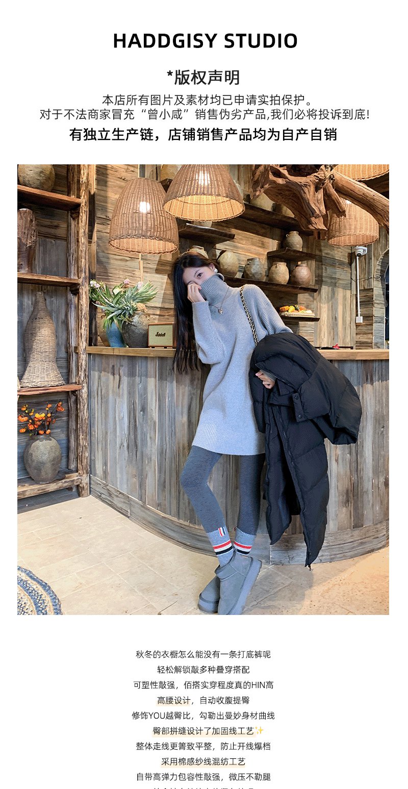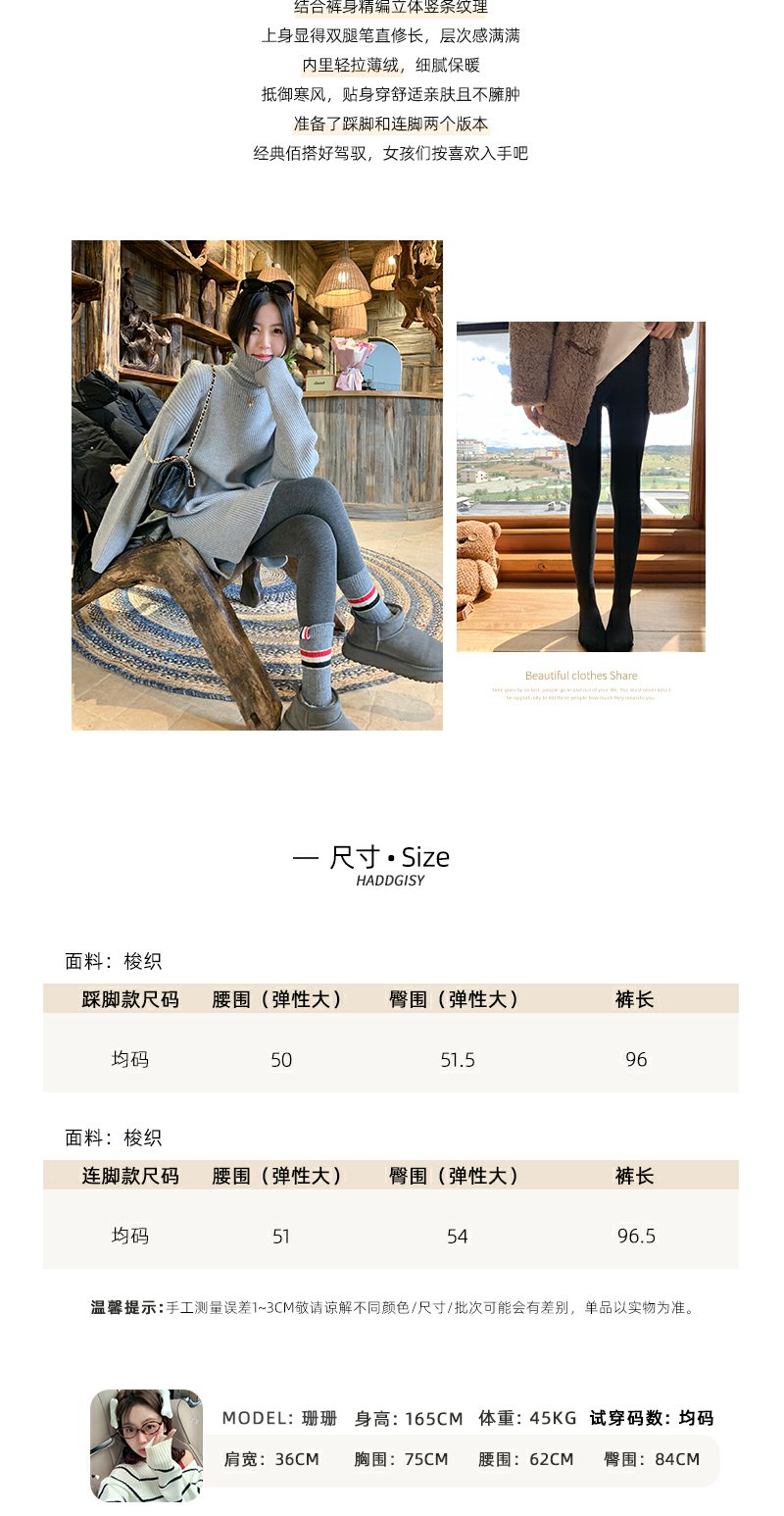 <曾小咸推荐>4色踩脚连脚版本棉感薄绒竖条打底裤
