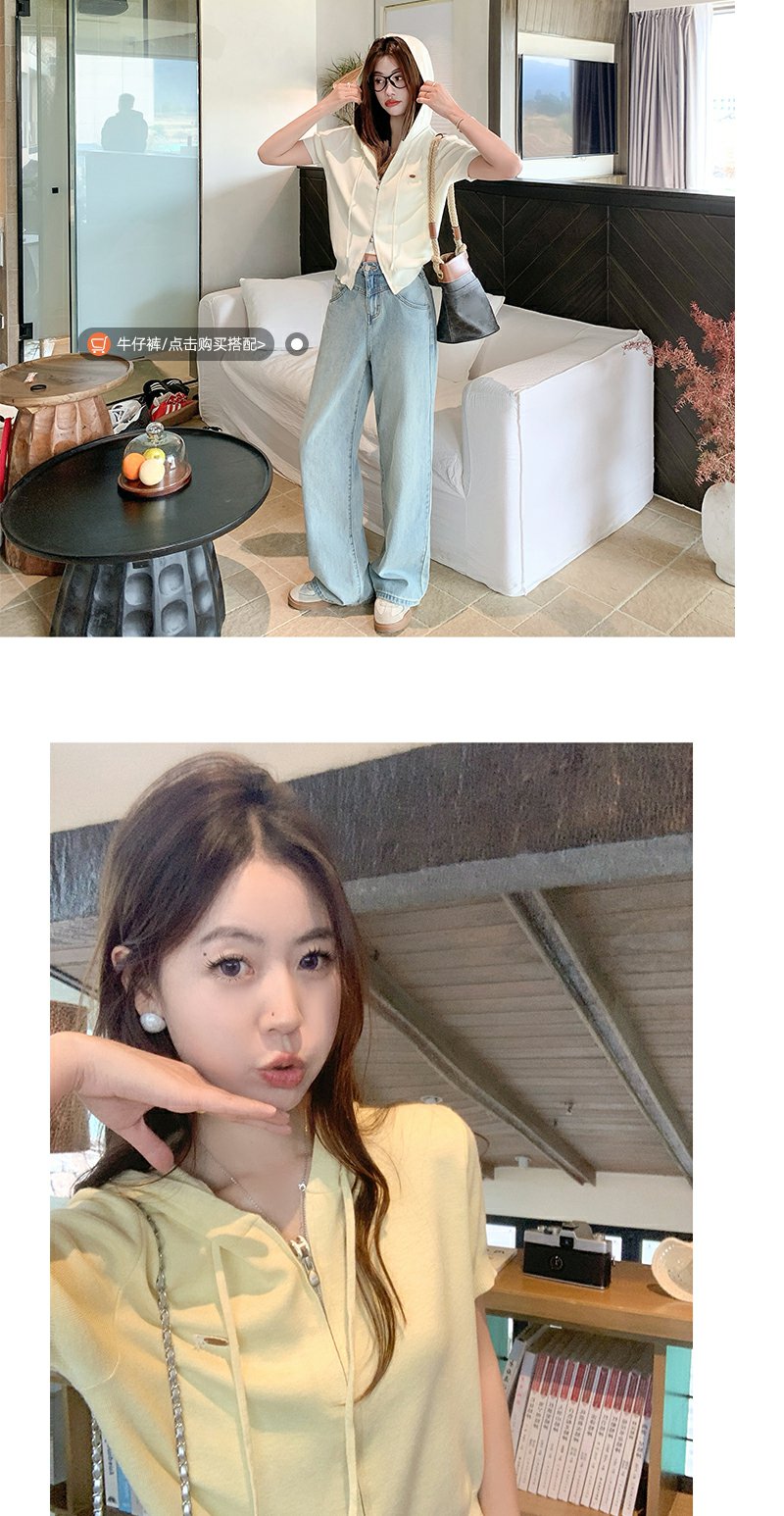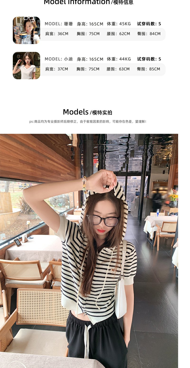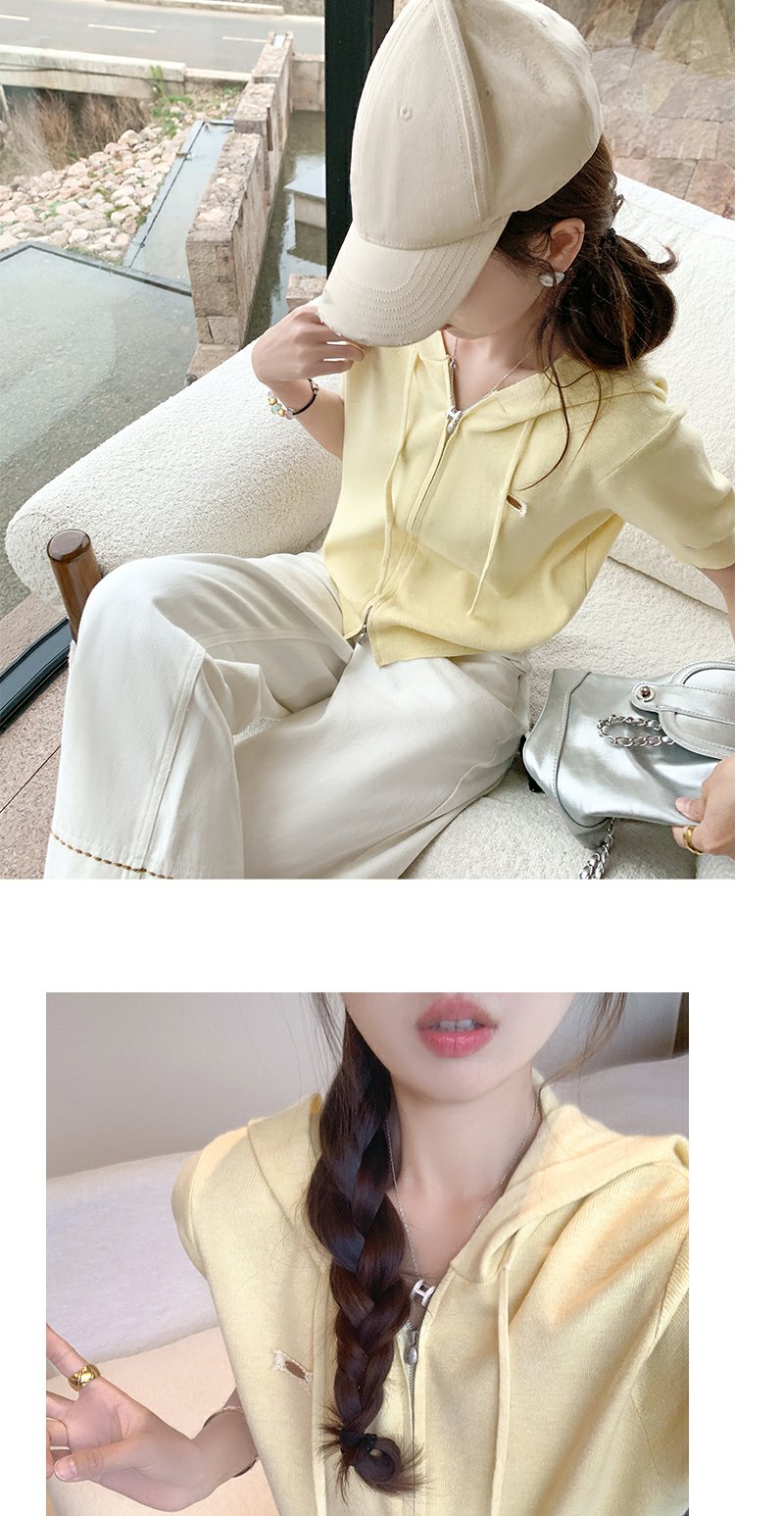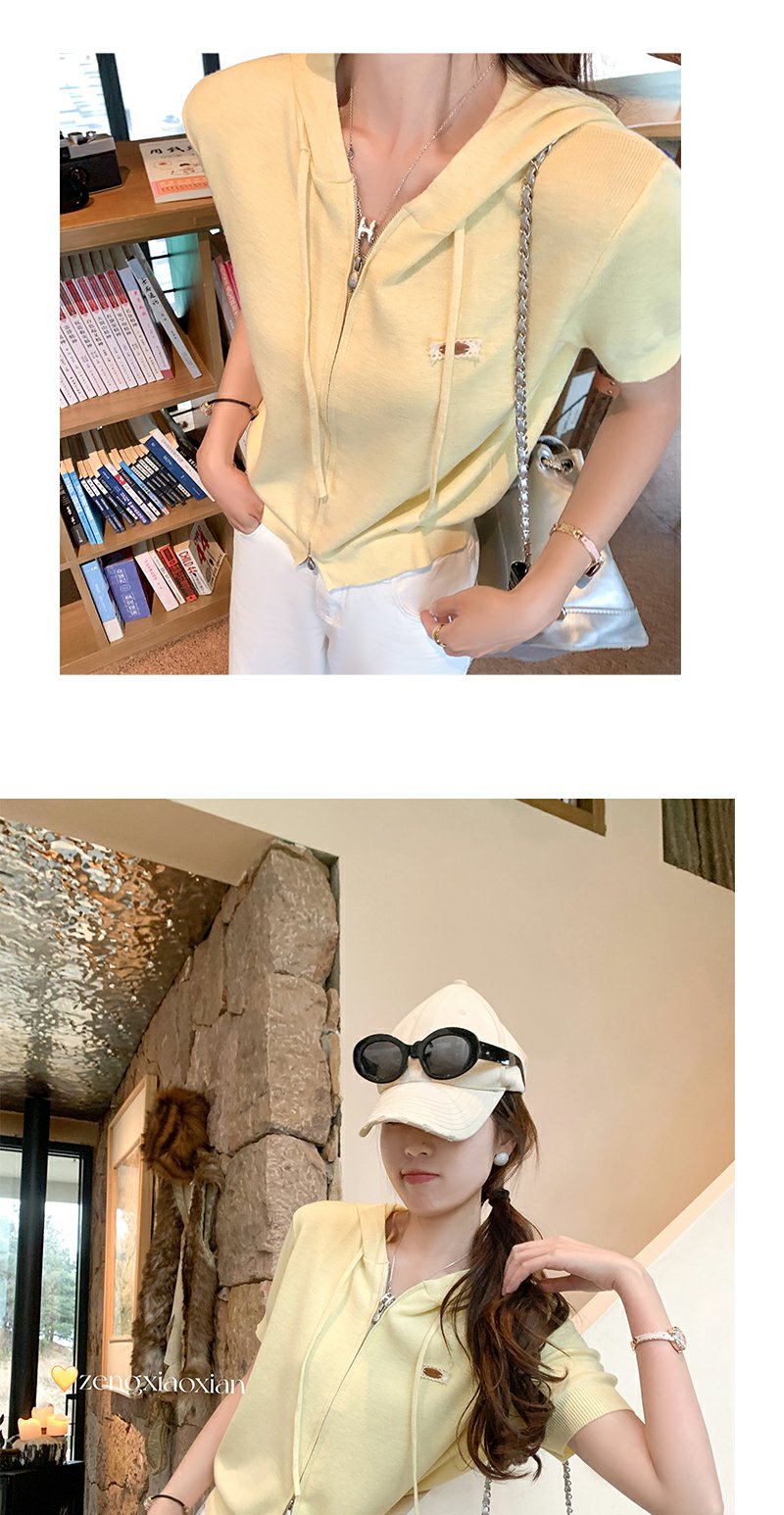 【169元任选2件】最后一波现货!3色短款针织连帽短袖T恤