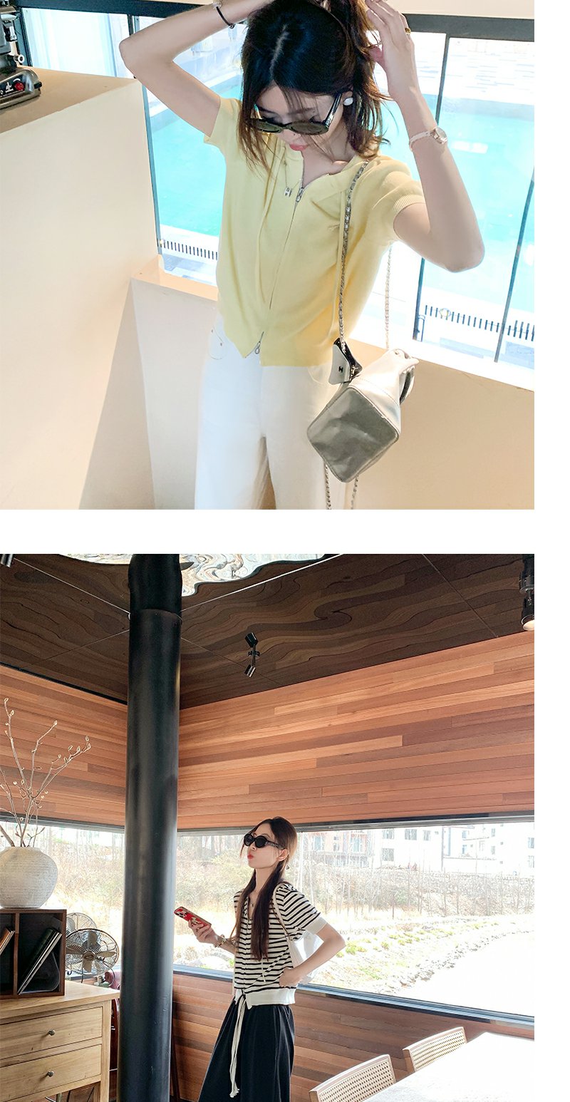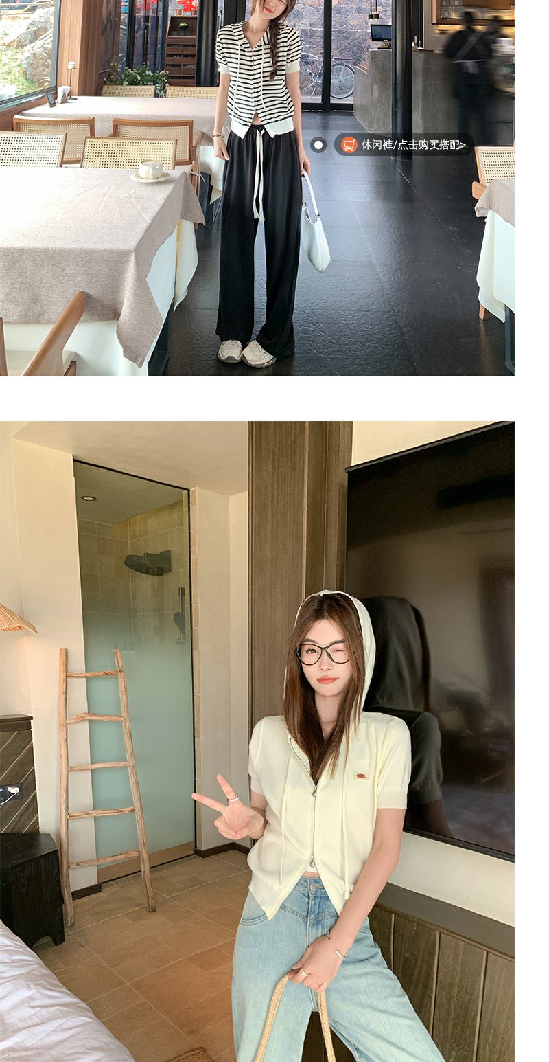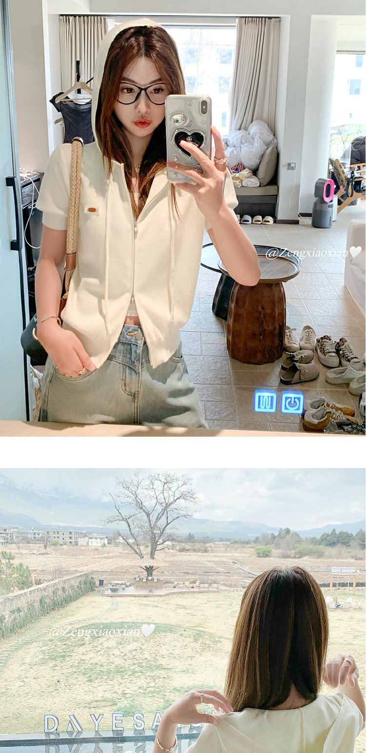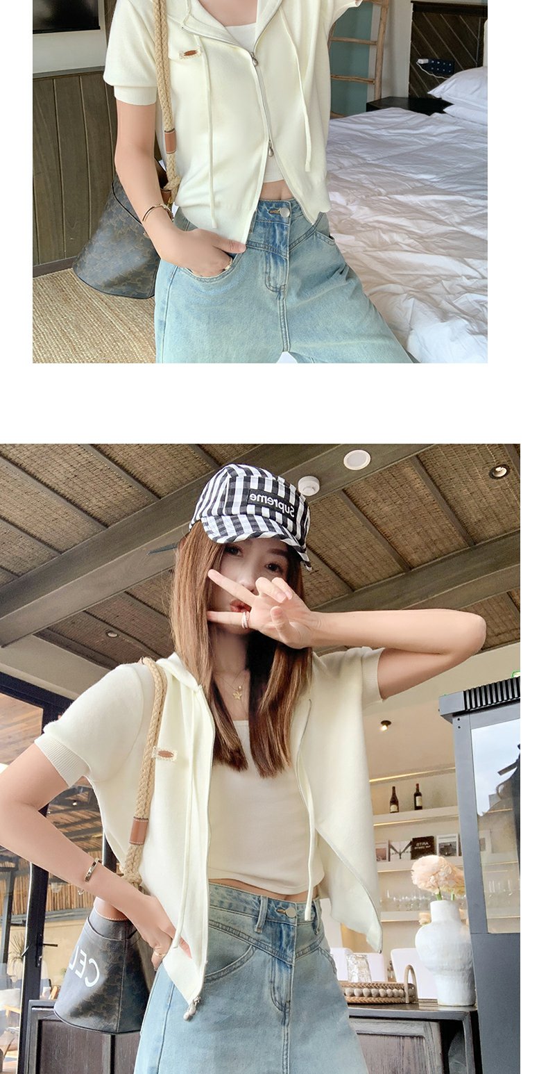 【169元任选2件】最后一波现货!3色短款针织连帽短袖T恤
