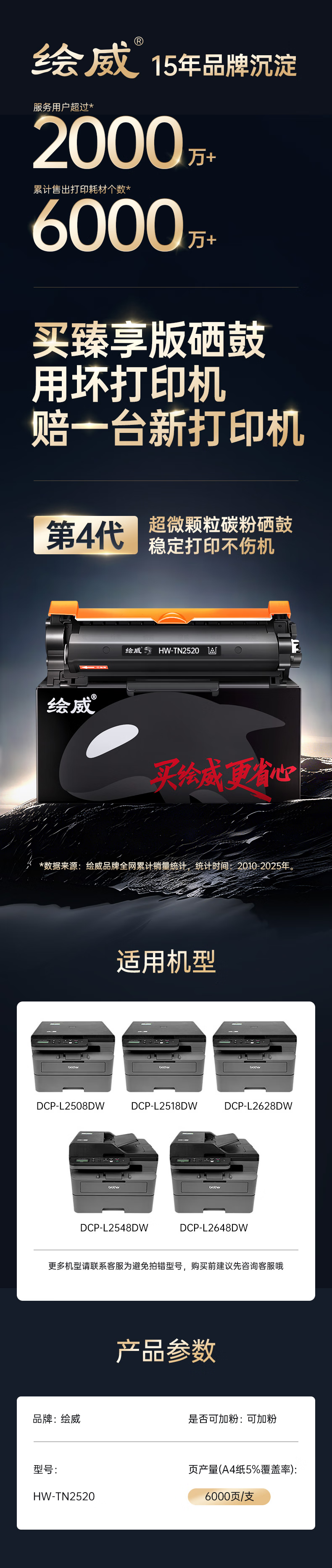 绘威臻享版tn2520粉盒/硒鼓架适用兄弟DCP-L2508DW粉盒L2518DW/L2548DW/L2628/L2648DW Brother打印机硒鼓 墨盒