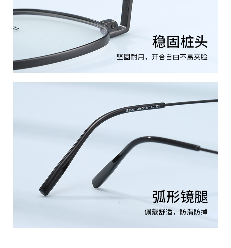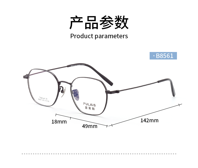 普莱斯光学镜框B8561 经典全框 半钛材质 舒适鼻托 稳固桩头 复古休闲 三色可选