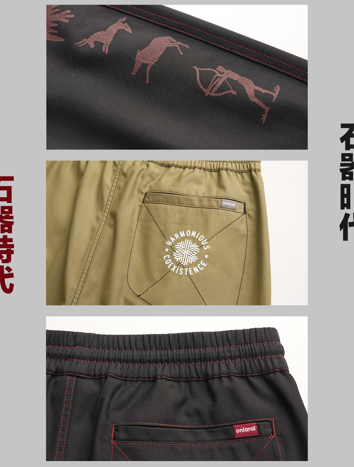 ONIARAI/鬼洗26春季新品黑标石器时代岩画图腾休闲裤男士 26A3402