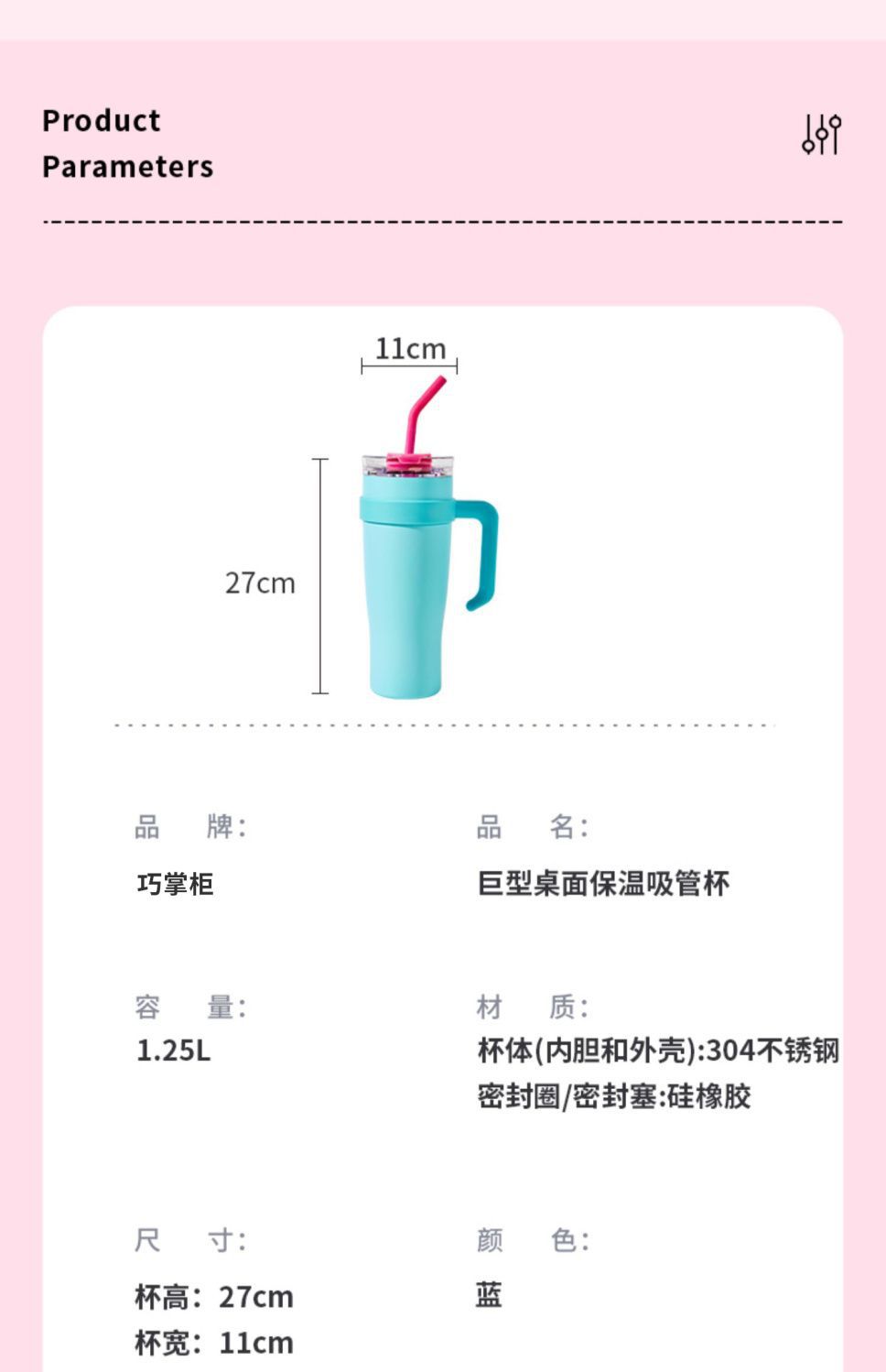 「四色可选!1.25L大容量」costo巨形冰霸杯304不锈钢大容量水杯保冰杯保冷杯车载咖啡杯餐饮用具