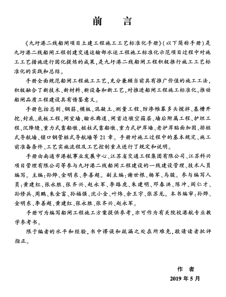书名:九圩港二线船闸项目土建工程施工工艺标准化手册