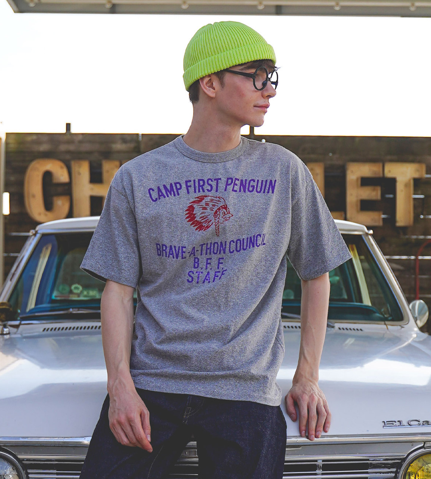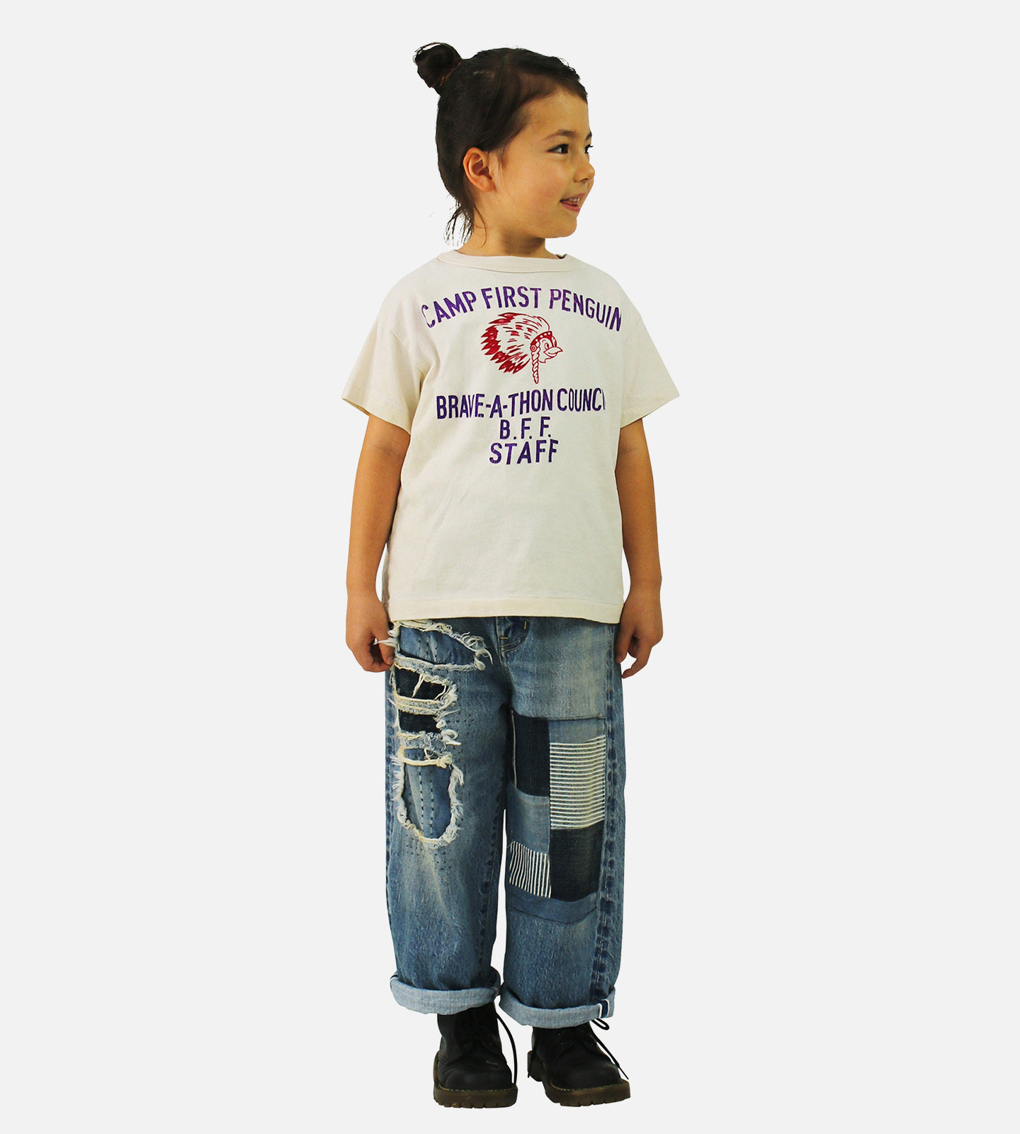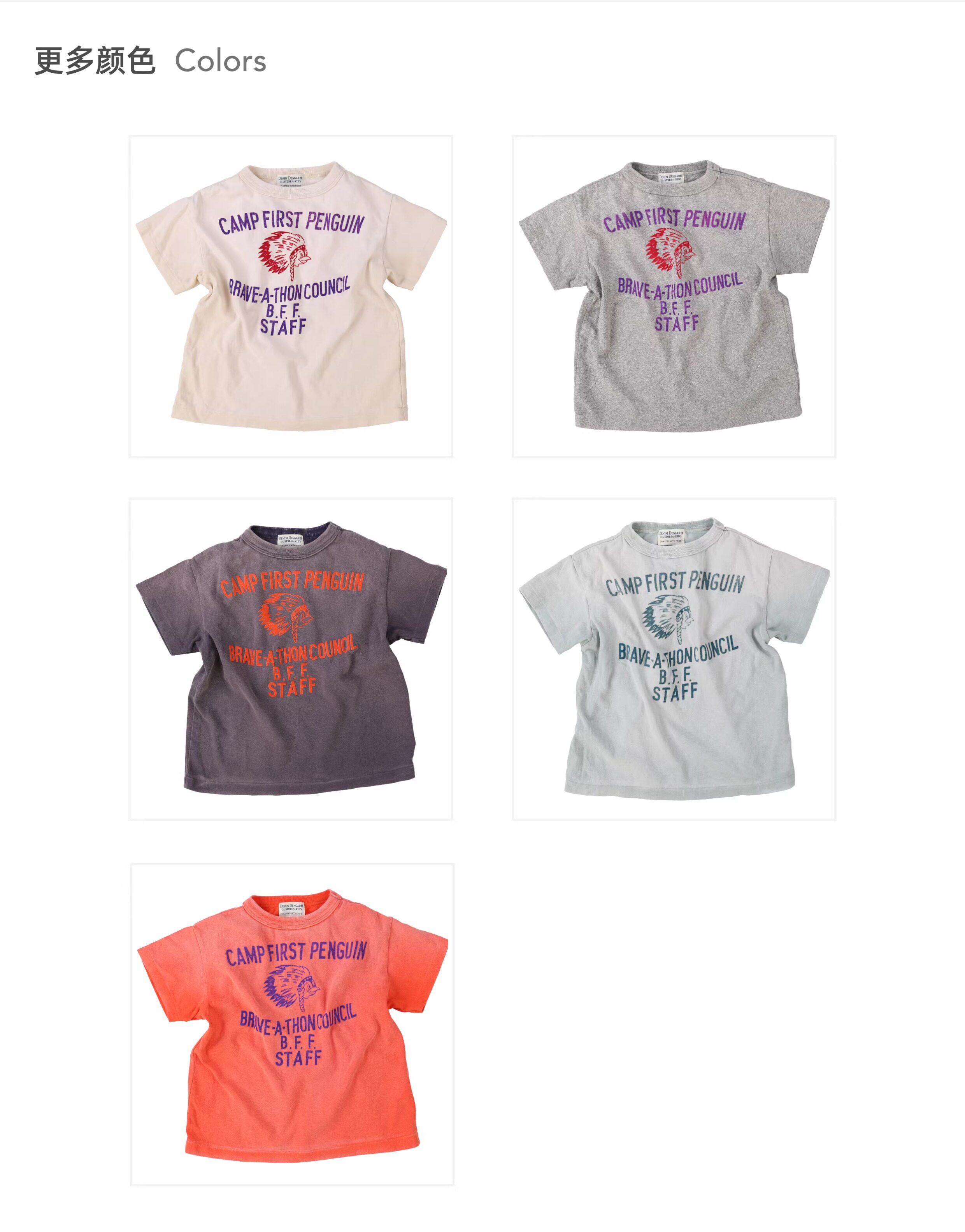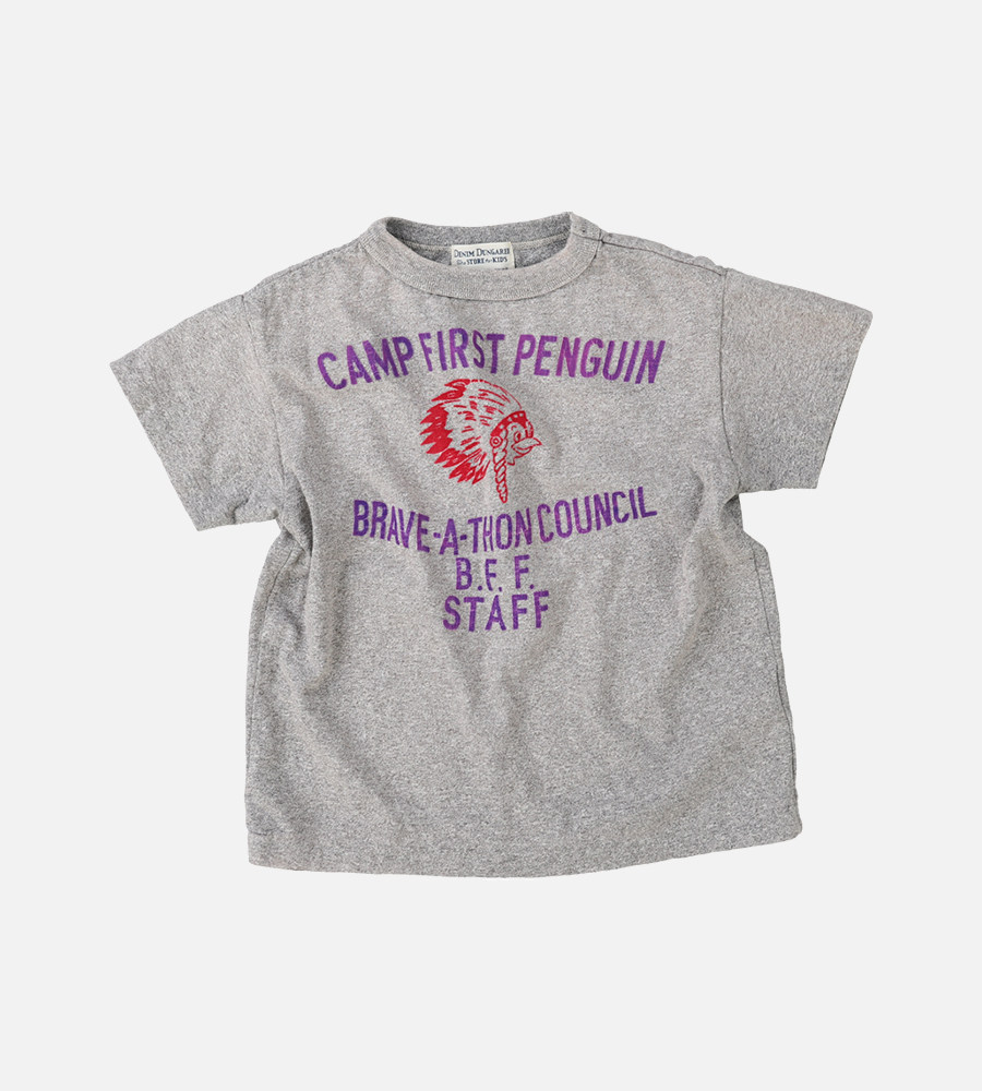 DD日本童装 DENIM DUNGAREE 26春夏复古棉质针织企鹅BRAVE短袖T恤