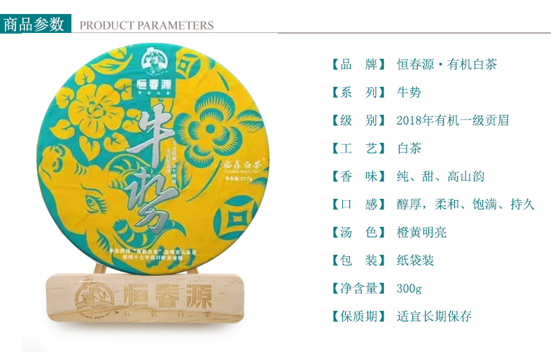 恒春源有机白茶饼 2018有机贡眉 牛势 支持自提