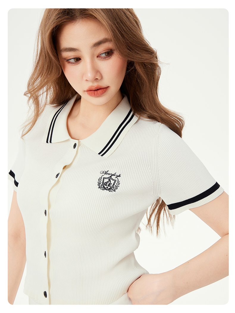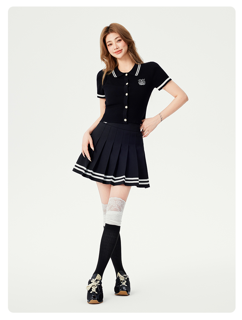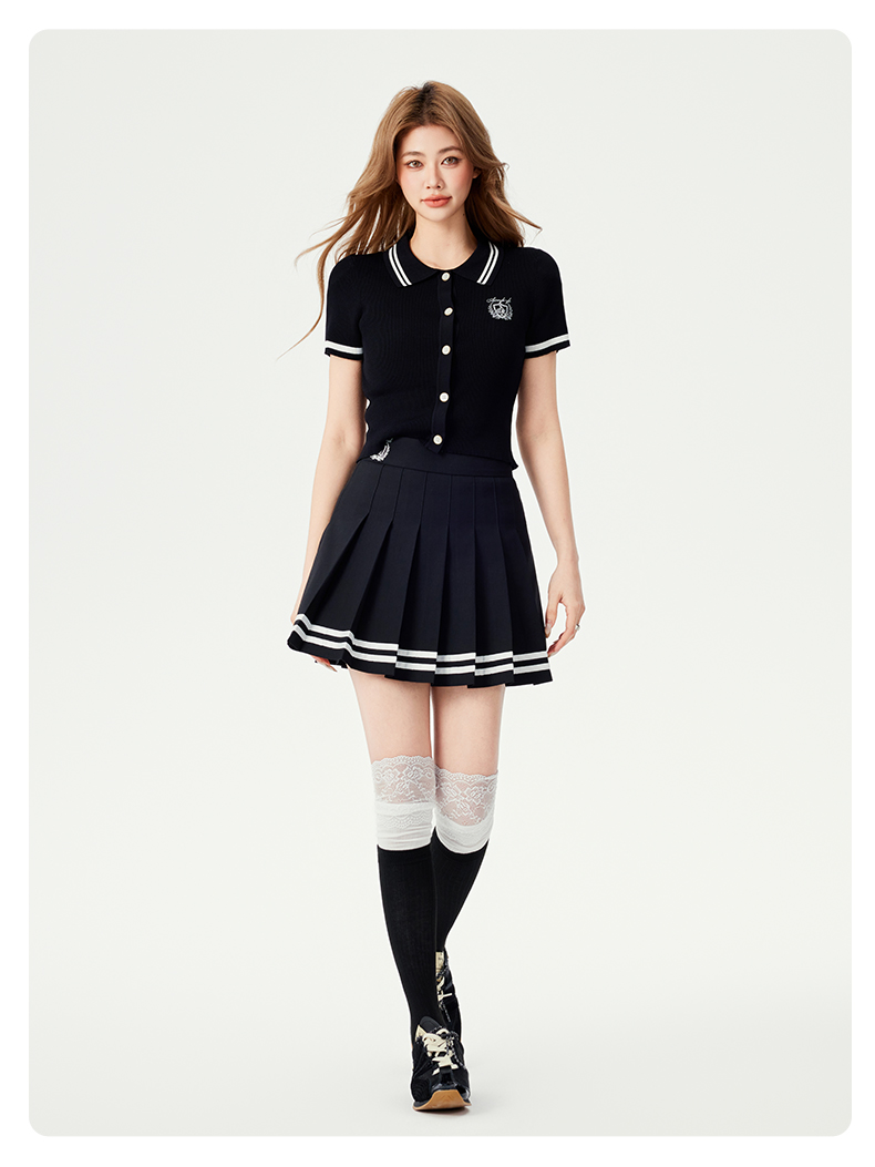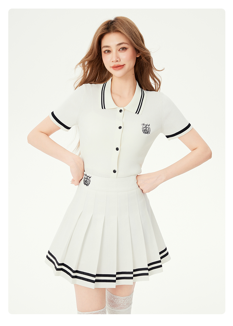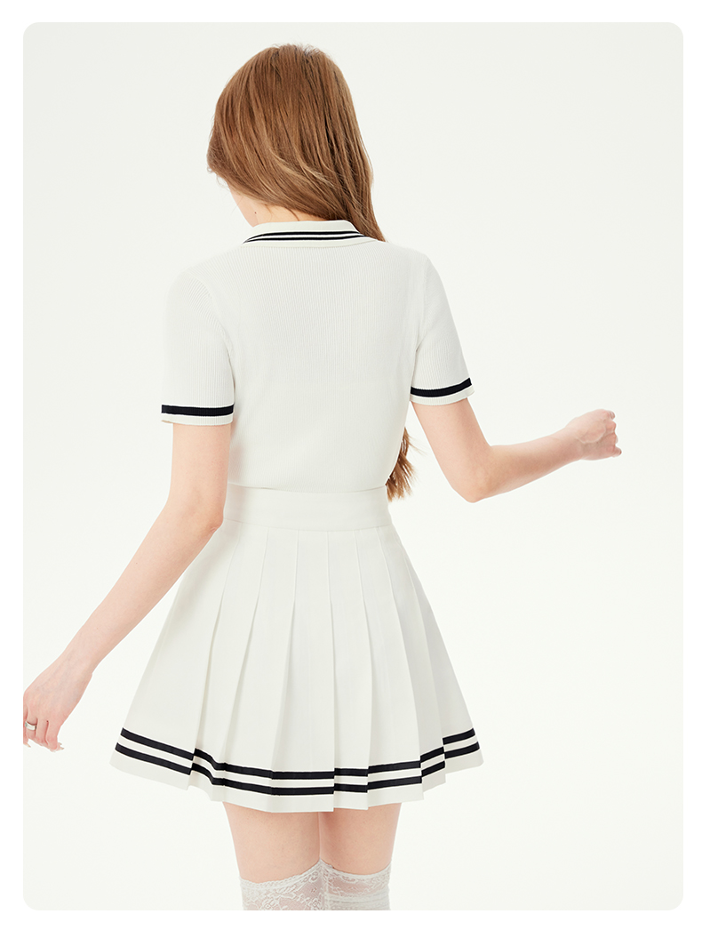 YKYB黄子韬POLO衫半身裙短裙套装性感活力凉感运动风复古潮流撞色条纹套装Y52FPL037