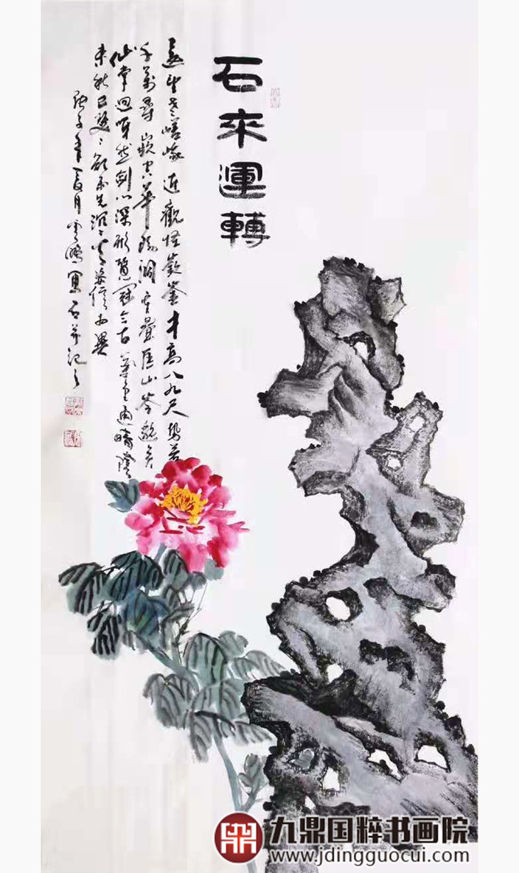 高云鹏《石来运转》68*138cm 花鸟竖幅作品 玄关挂画