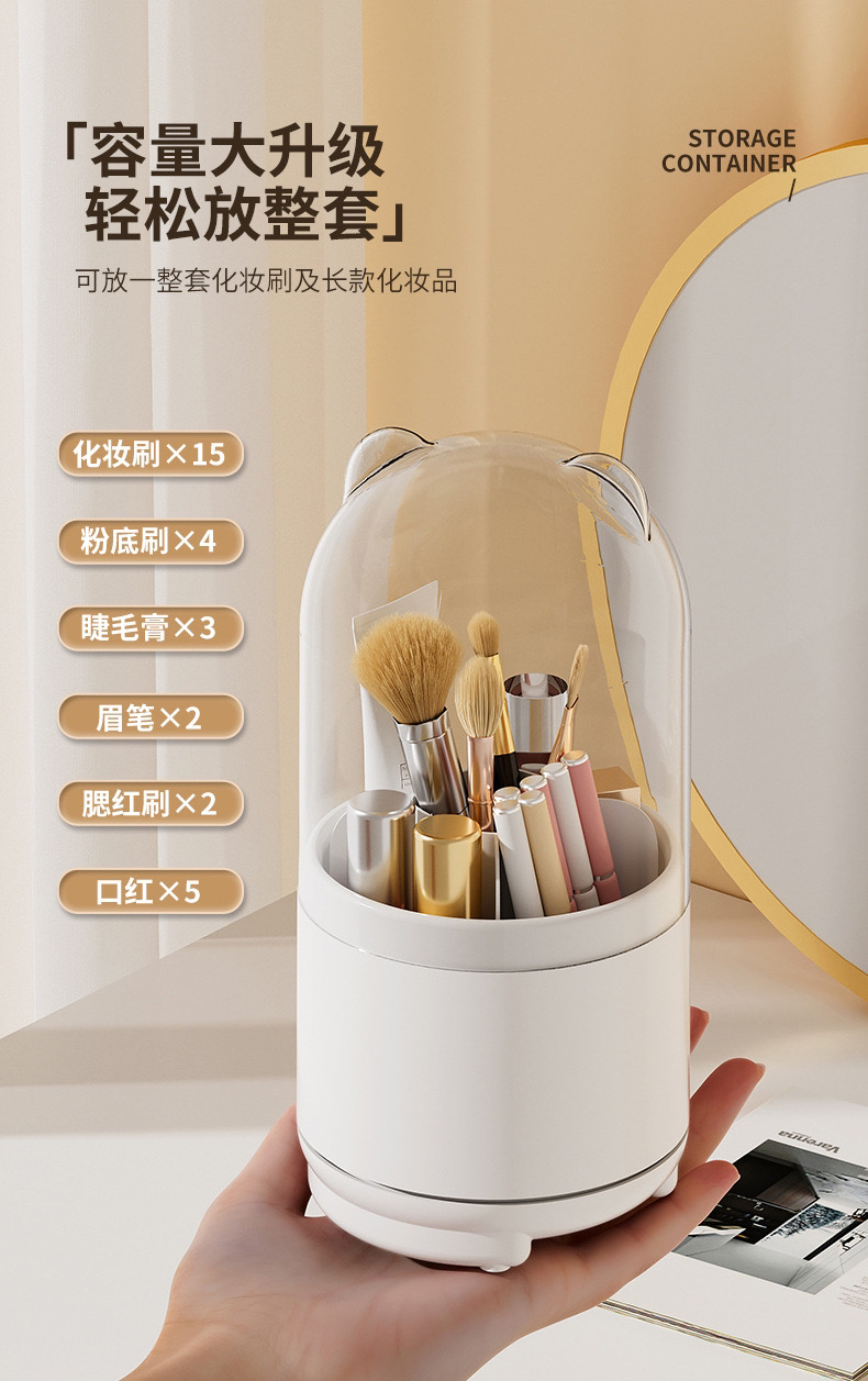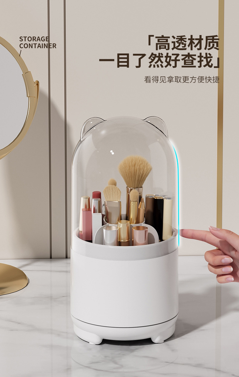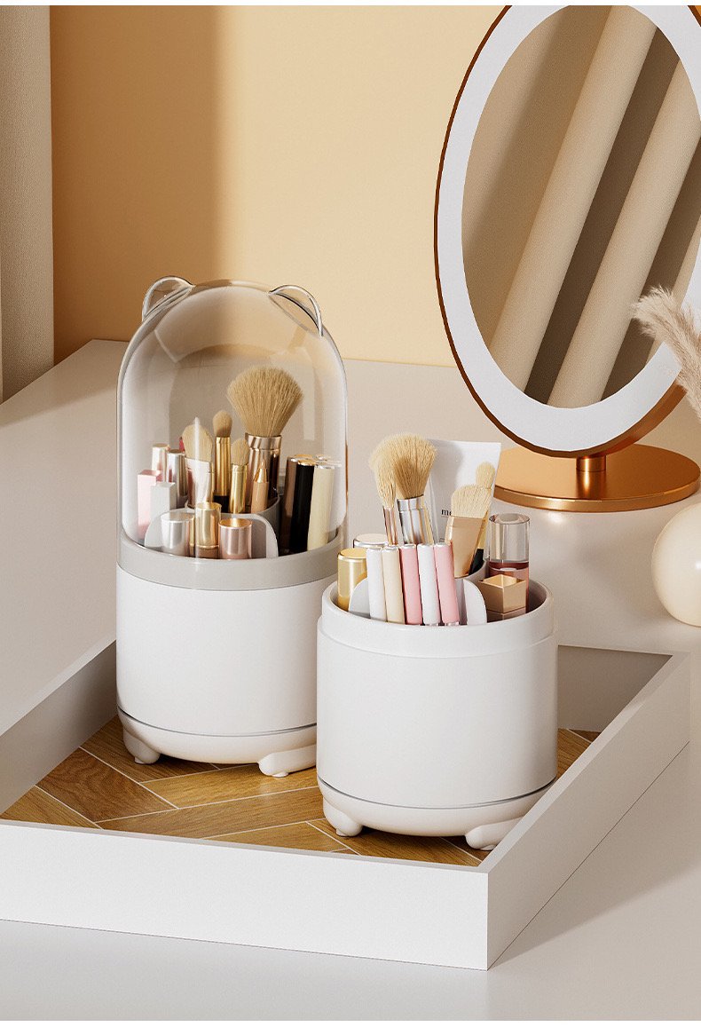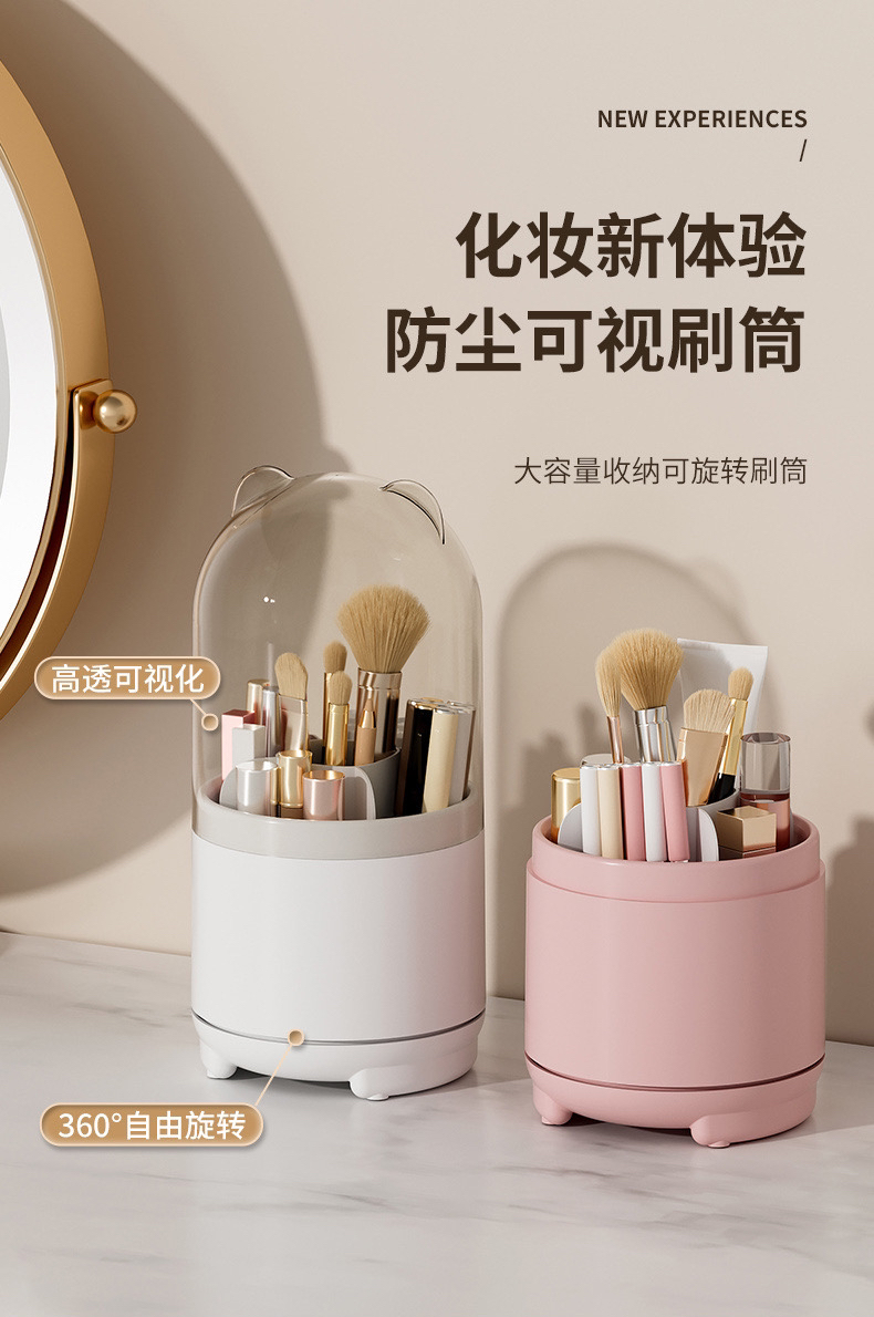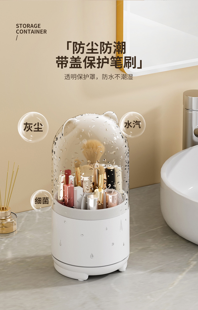 透明防尘360旋转化妆刷收纳盒