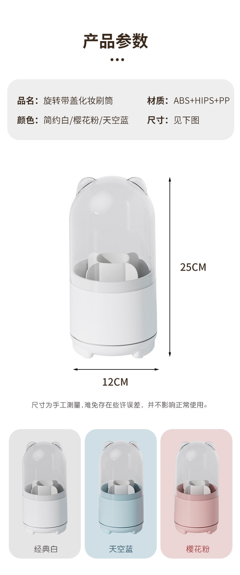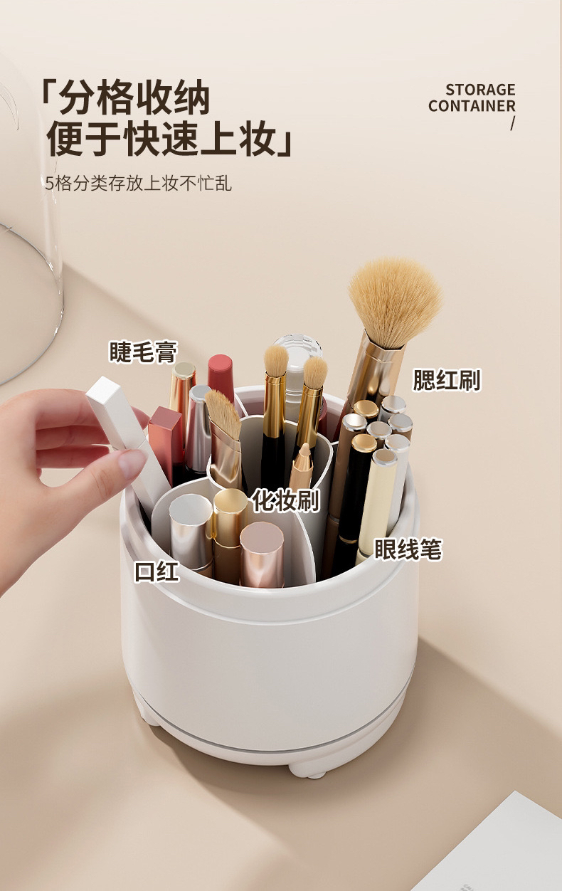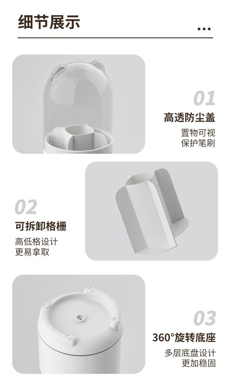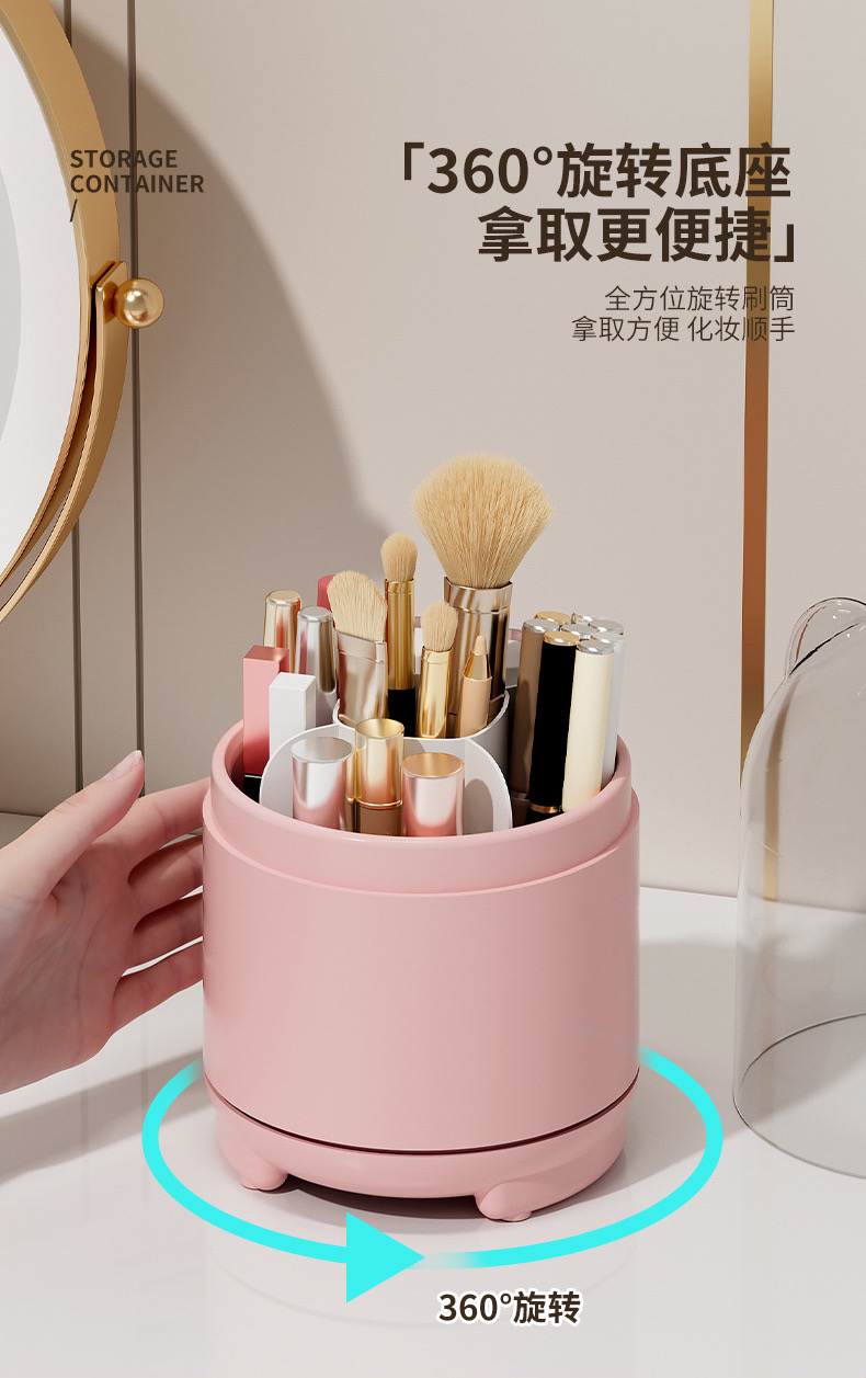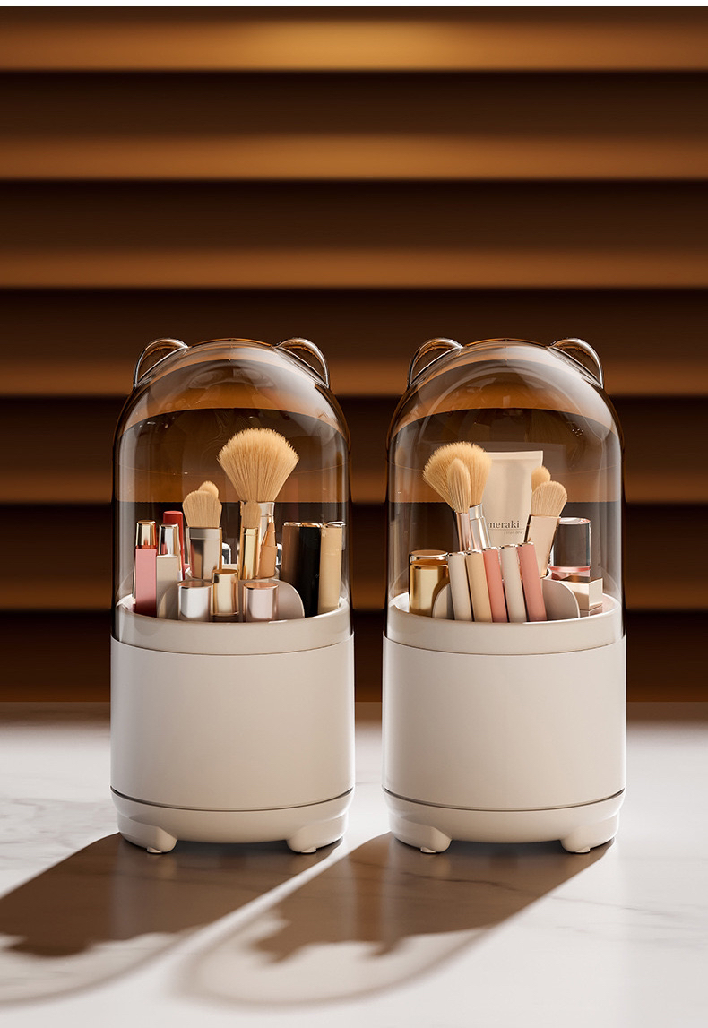 透明防尘360旋转化妆刷收纳盒