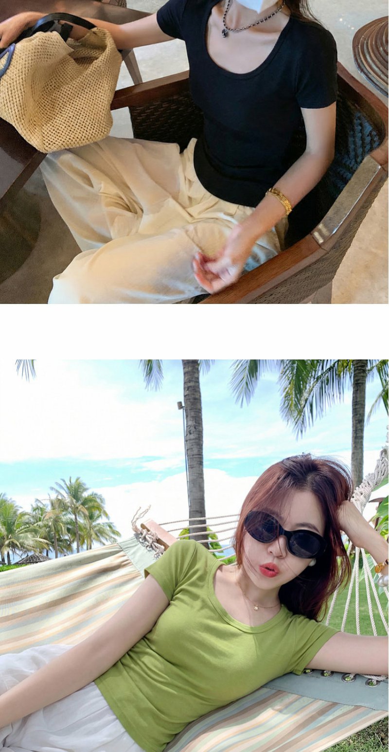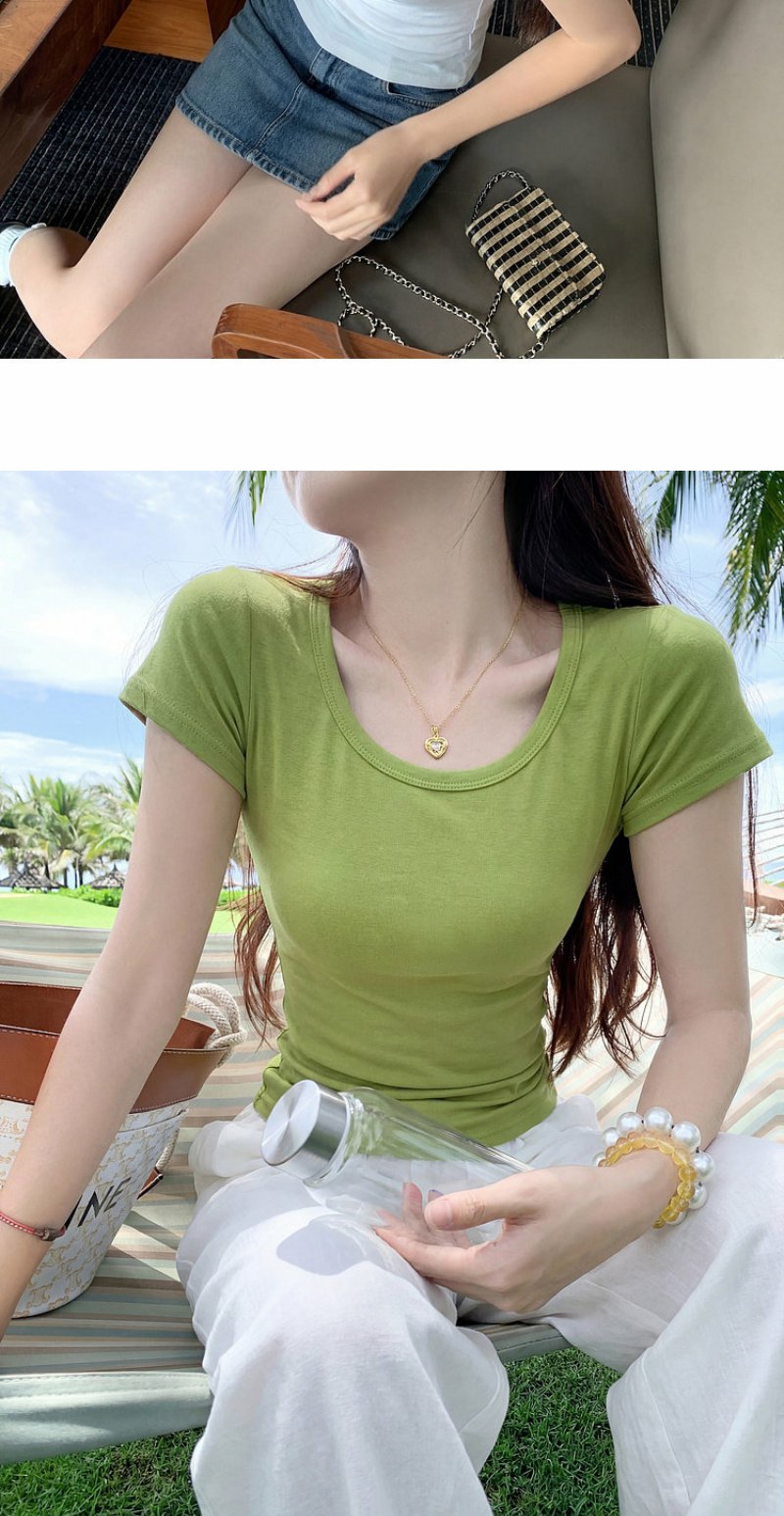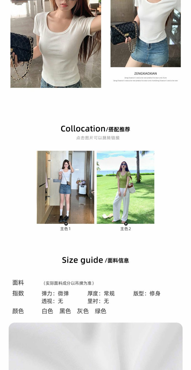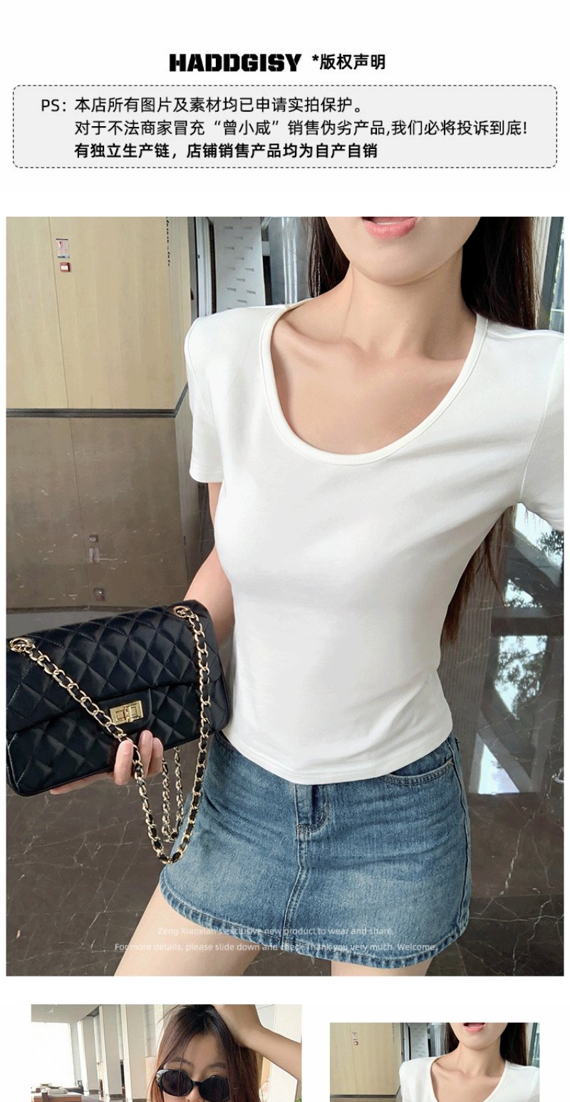 <曾小咸推荐>韩系U领修身短款T恤上衣【预售7-15天发货】