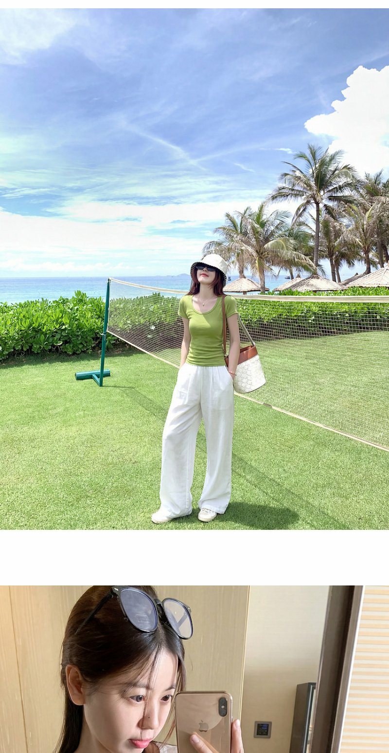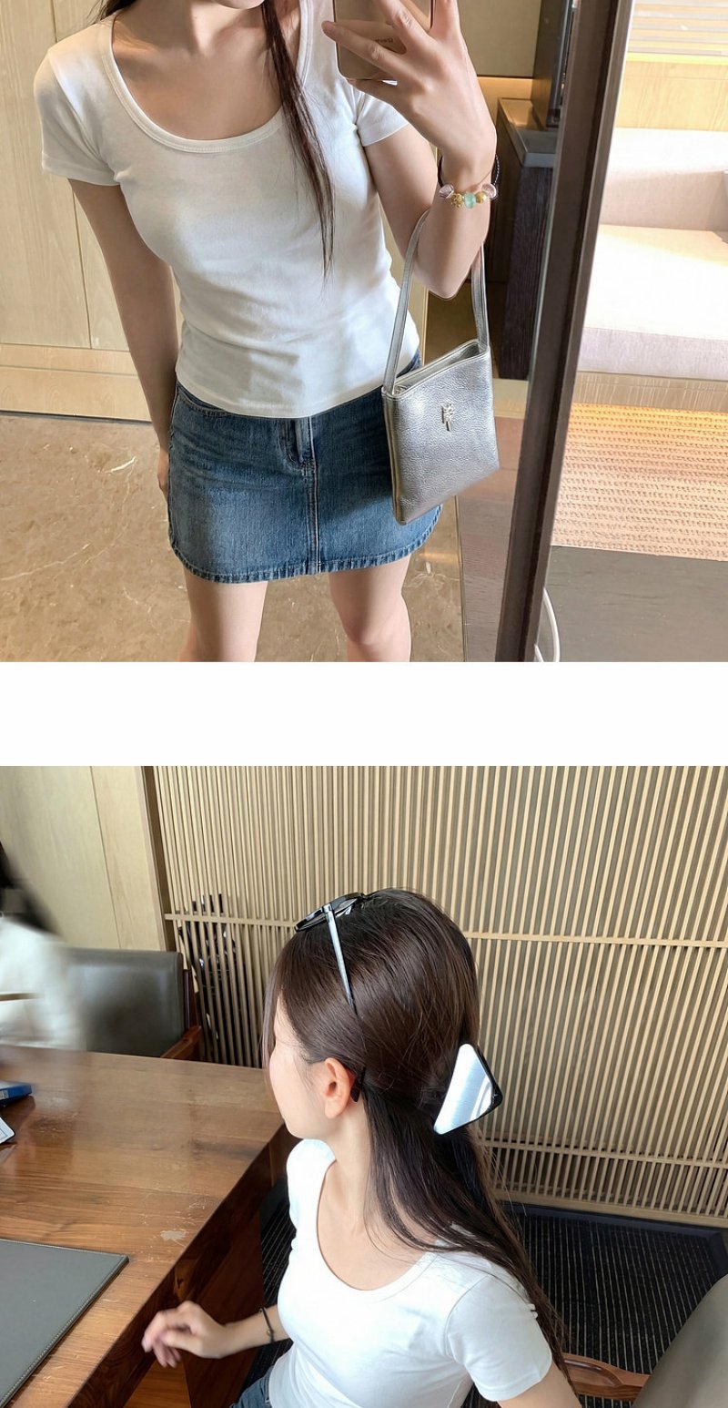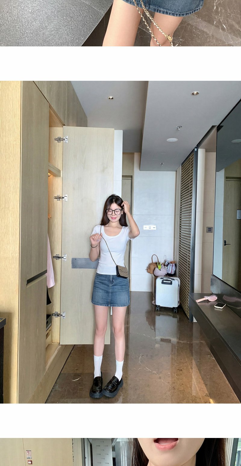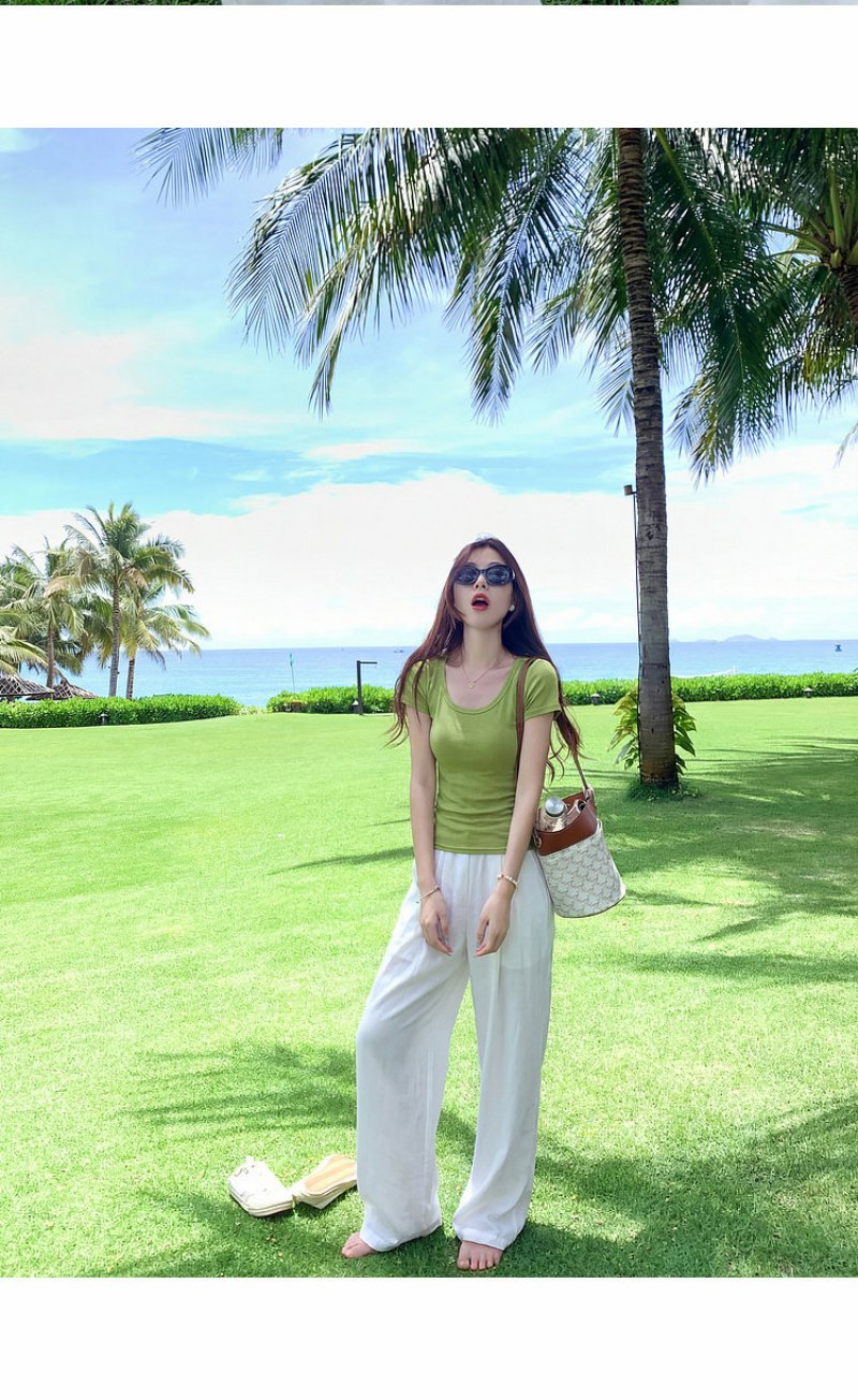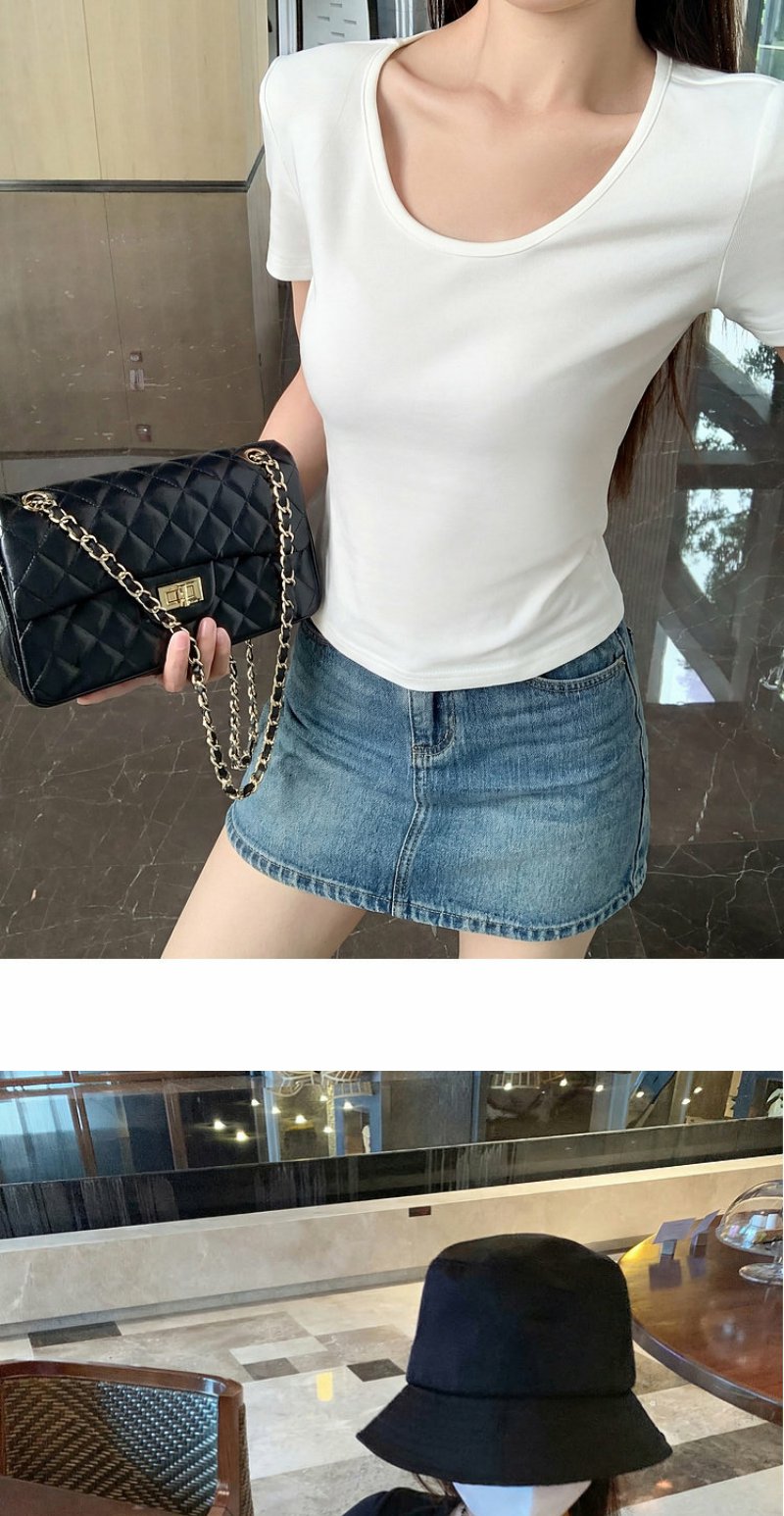 <曾小咸推荐>韩系U领修身短款T恤上衣【预售7-15天发货】