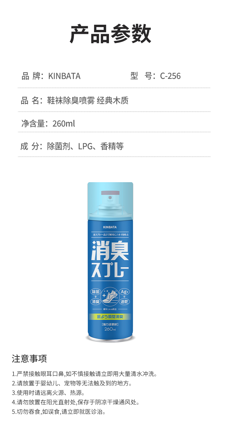 经典木质芳香,淡雅清新!99%除菌配方,能有效杀灭鞋袜上携带的细菌,从源头抑制臭味的形成,内部喷一喷就能轻松去除难闻脚臭味!!速干配方,即喷即穿,无需等待!匠心定制重工喷头,正喷倒喷均可,直接塞进鞋子内都可以顺利喷出,360度去鞋臭,不留死角,同时不沾手,使用干净又方便!