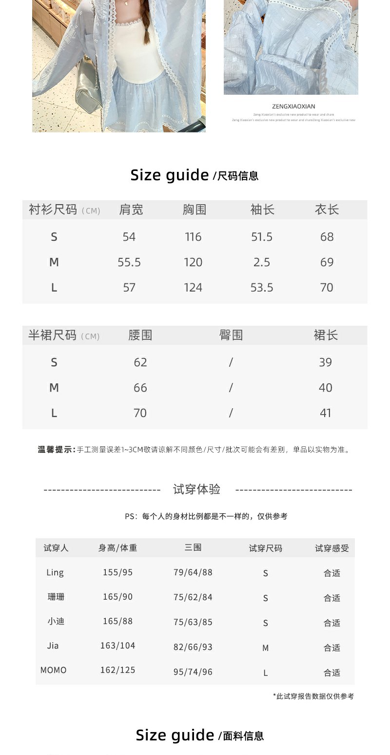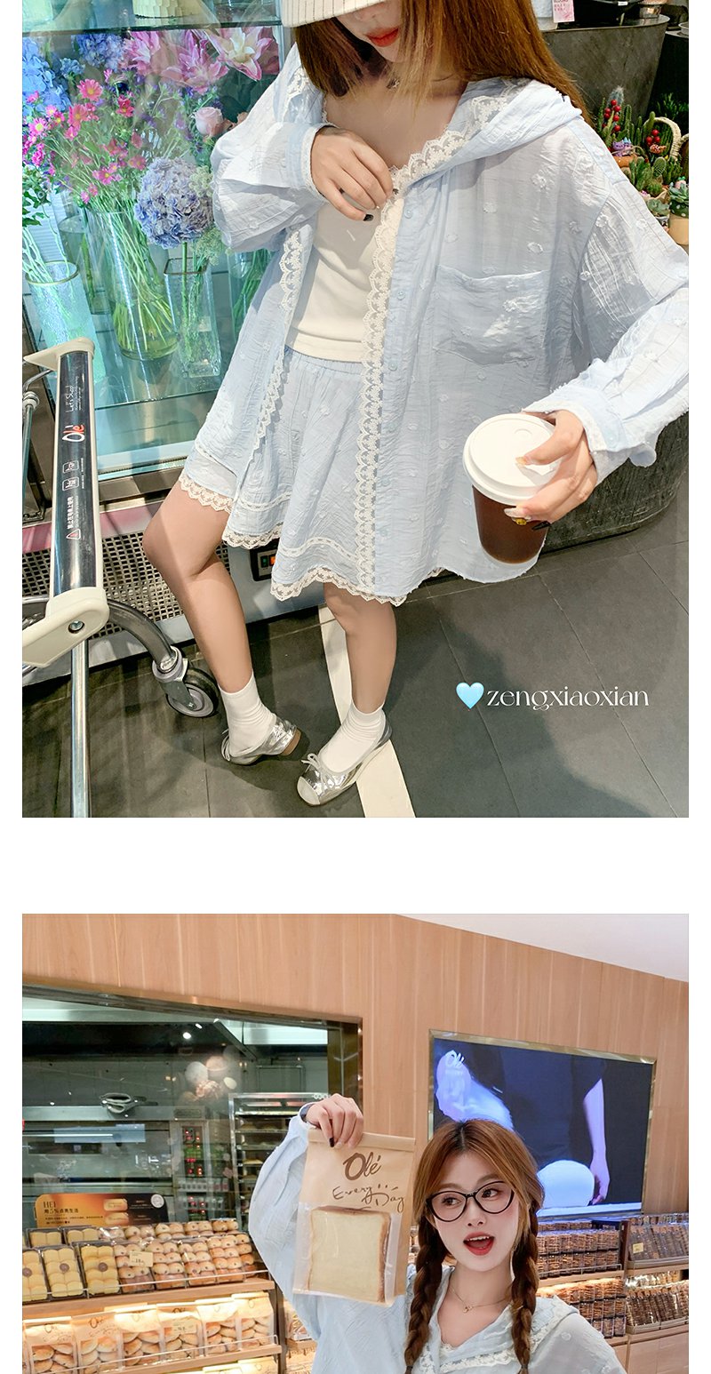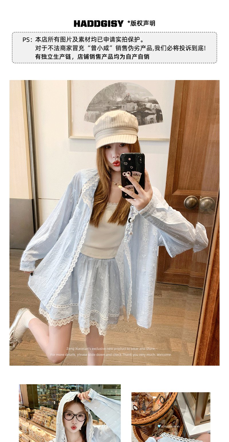 <曾小咸推荐>蓝色连帽防晒衬衫半身裙两件套