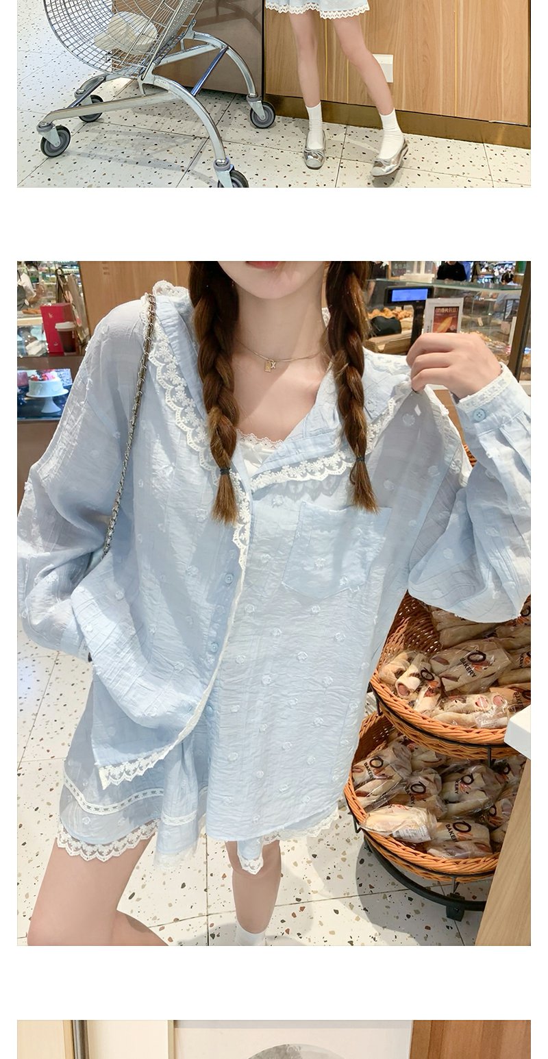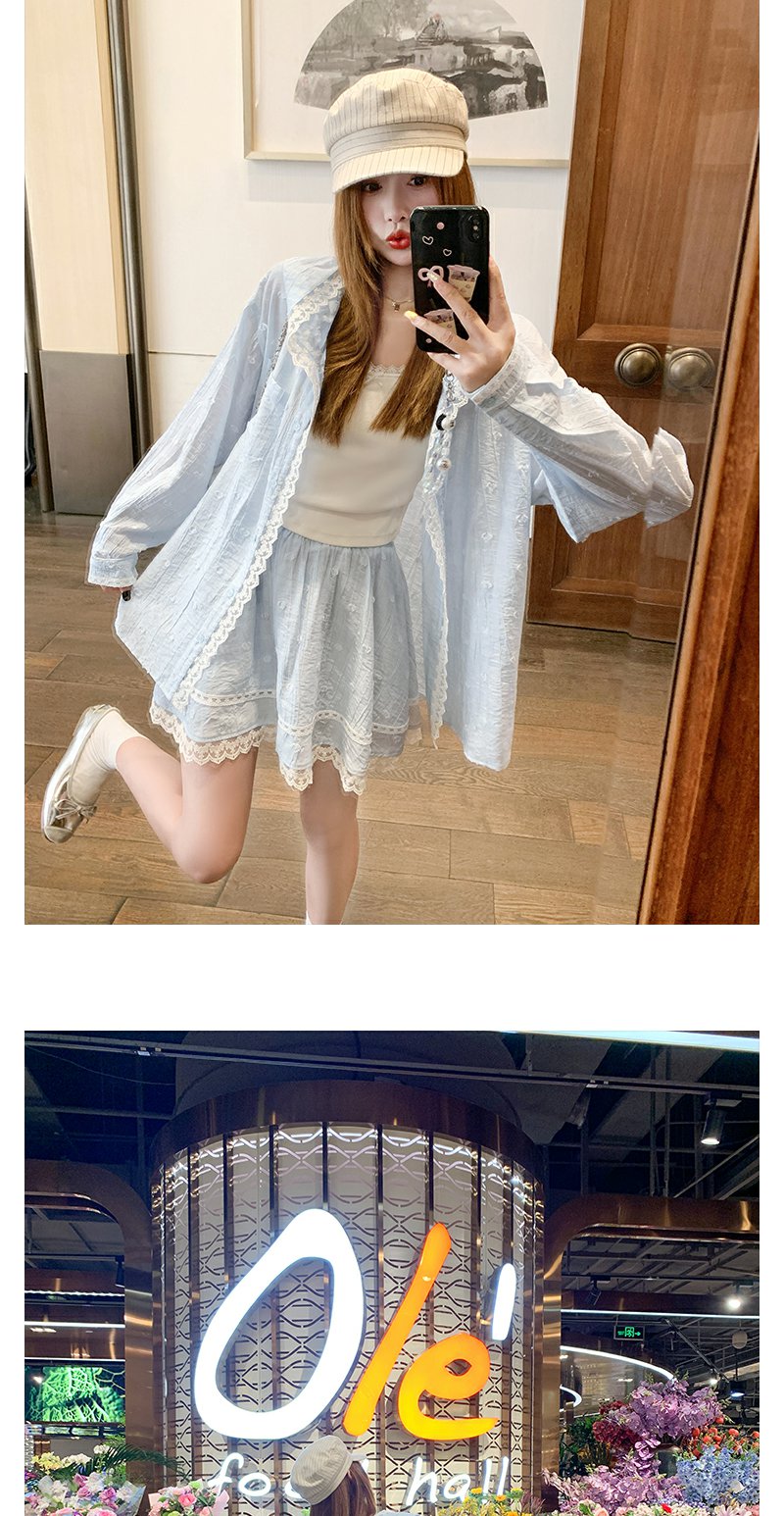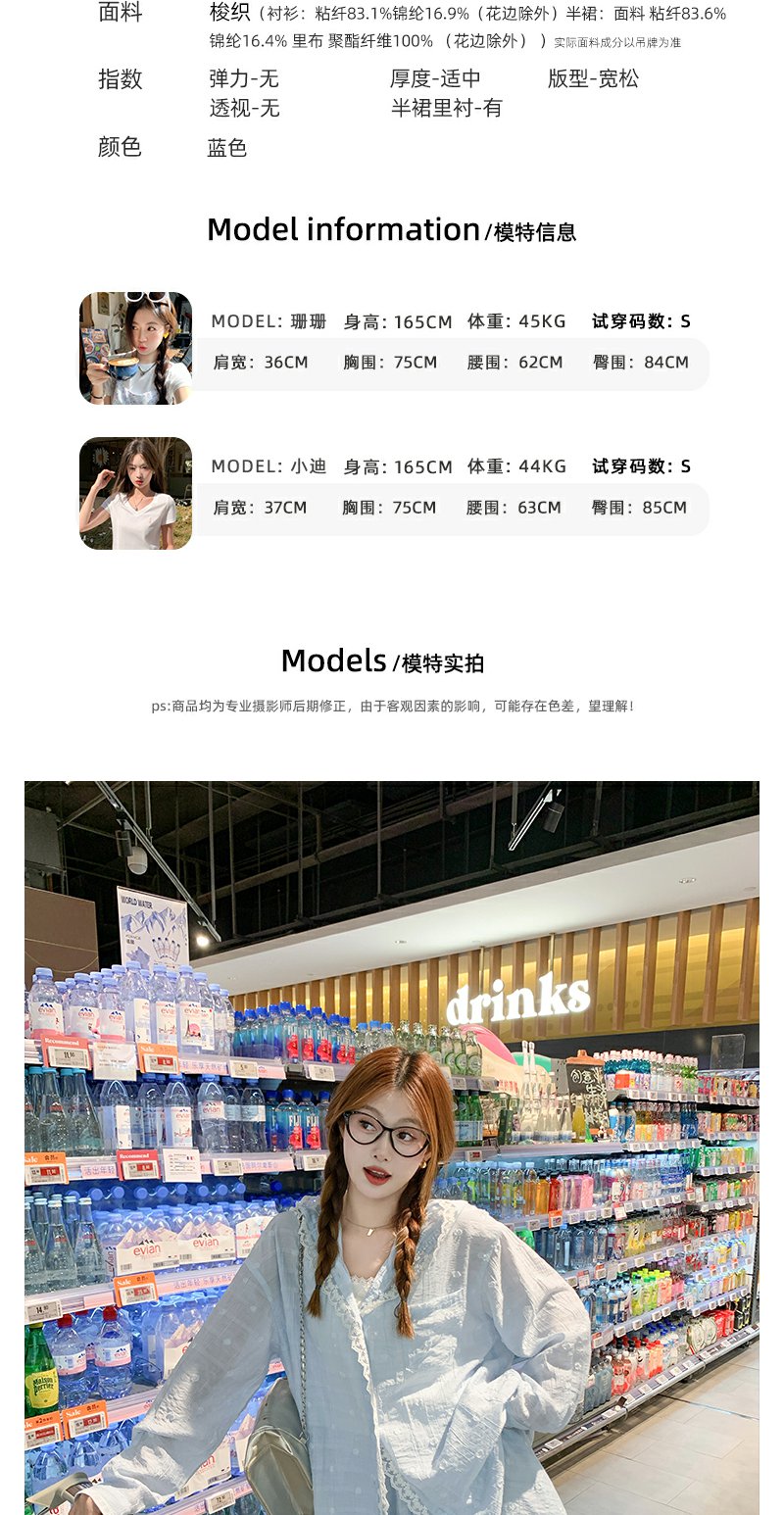 <曾小咸推荐>蓝色连帽防晒衬衫半身裙两件套