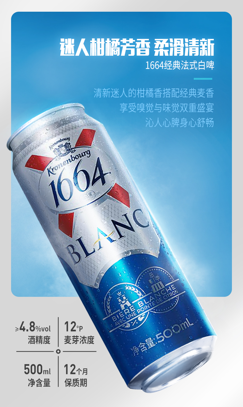 1664法式口味白啤/红啤/混合装大规格装啤酒
