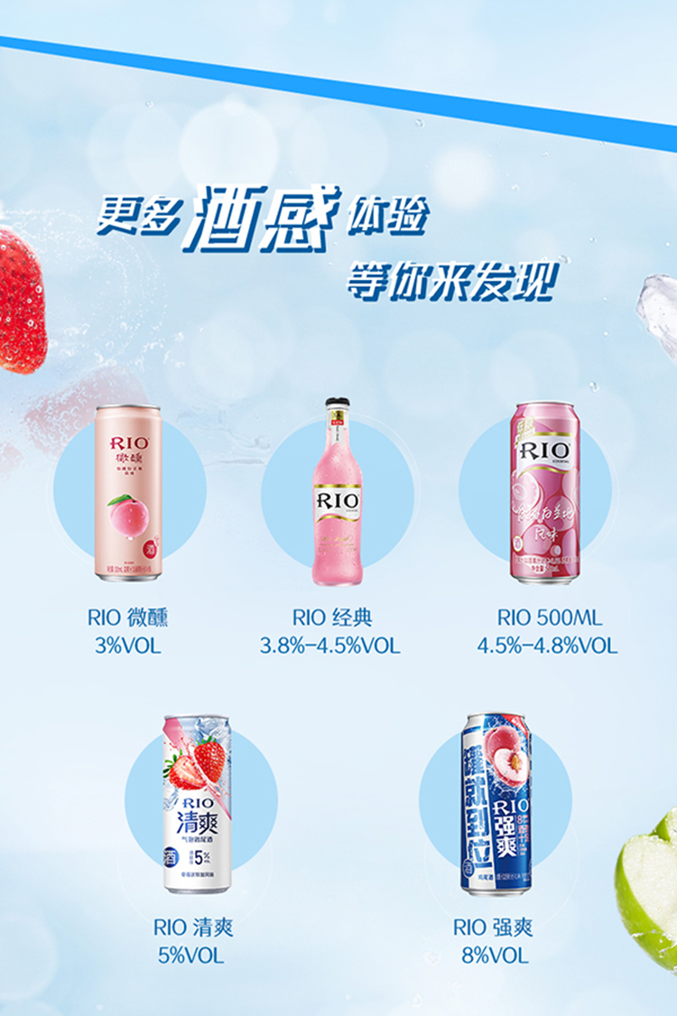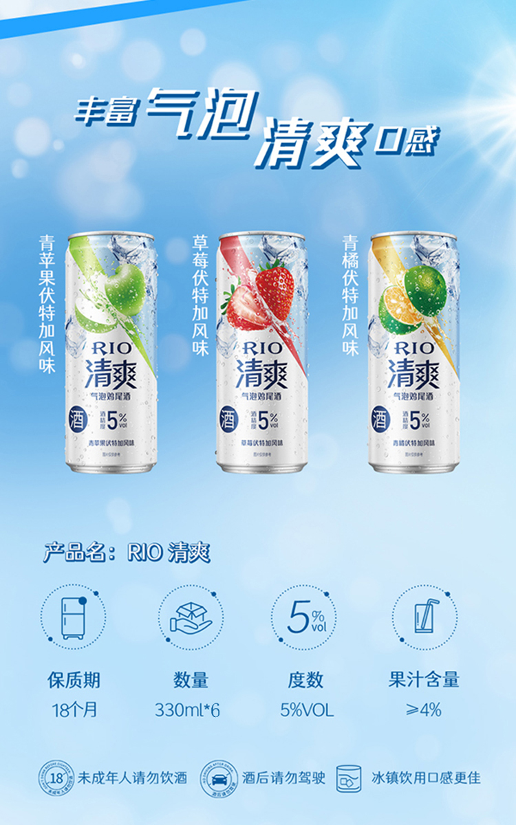 锐澳清爽鸡尾酒混合六联包5度330ml*6瓶(草莓+青苹果+青橘)