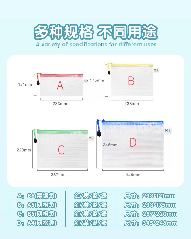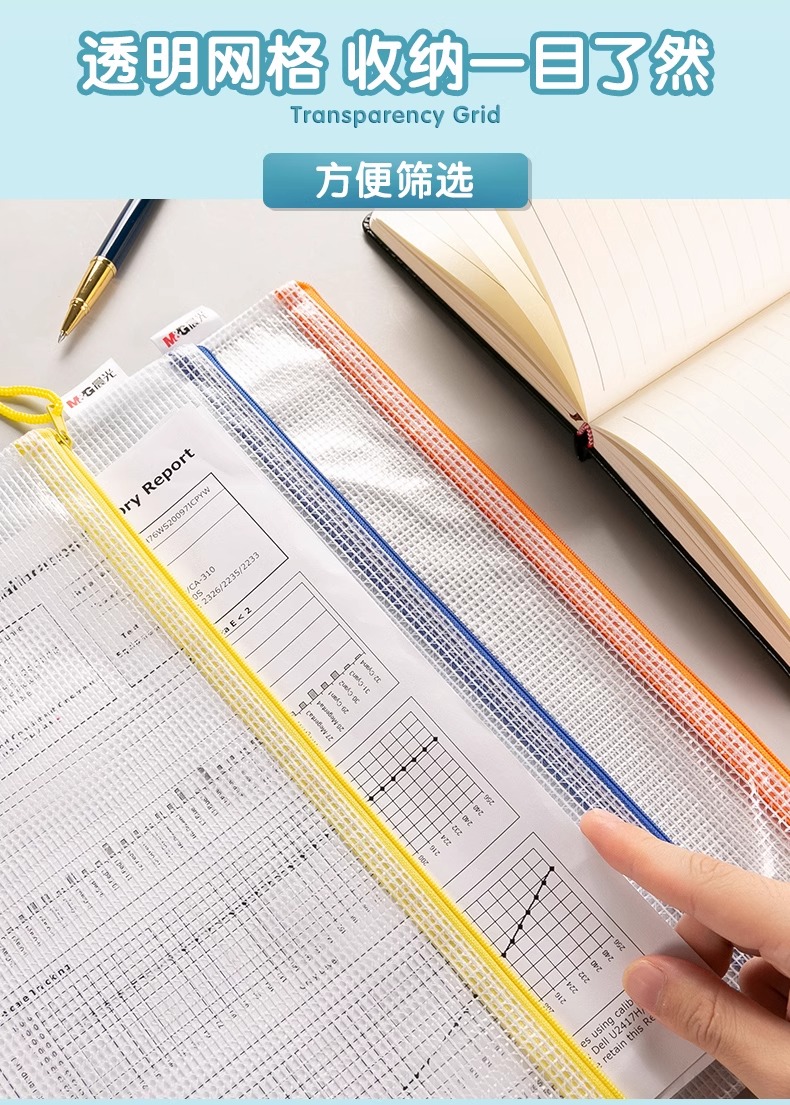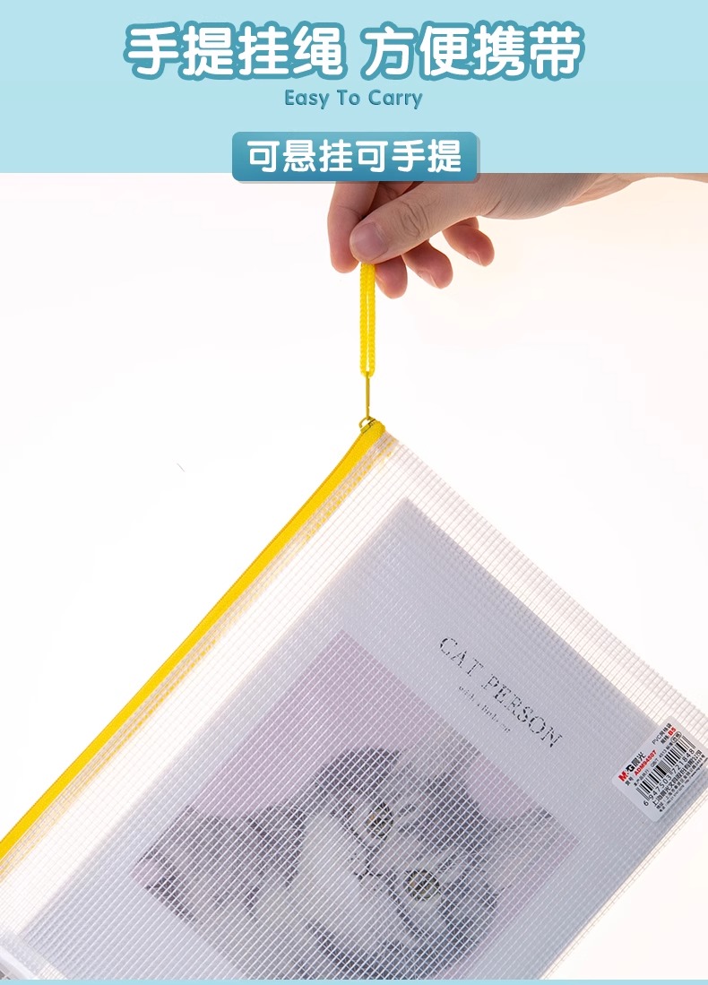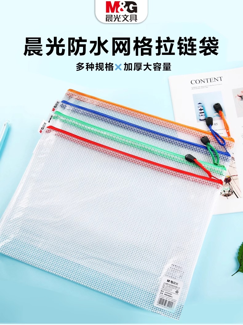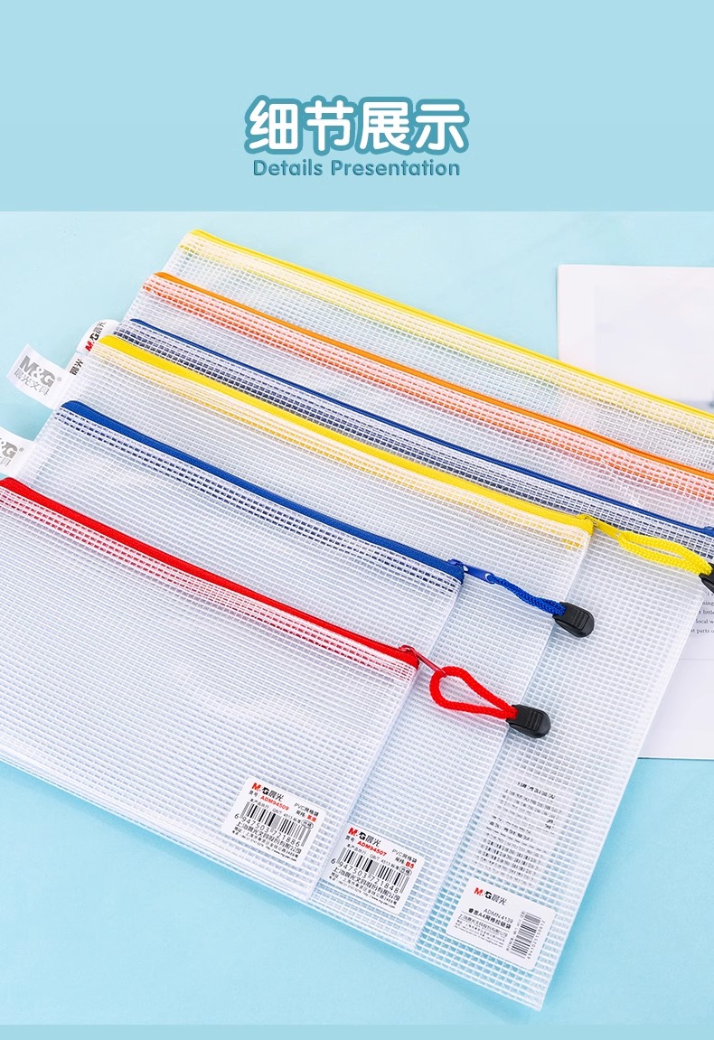 晨光文件袋A4规格PVC拉链袋四色防潮防水 ADM94506 1支/颜色随机