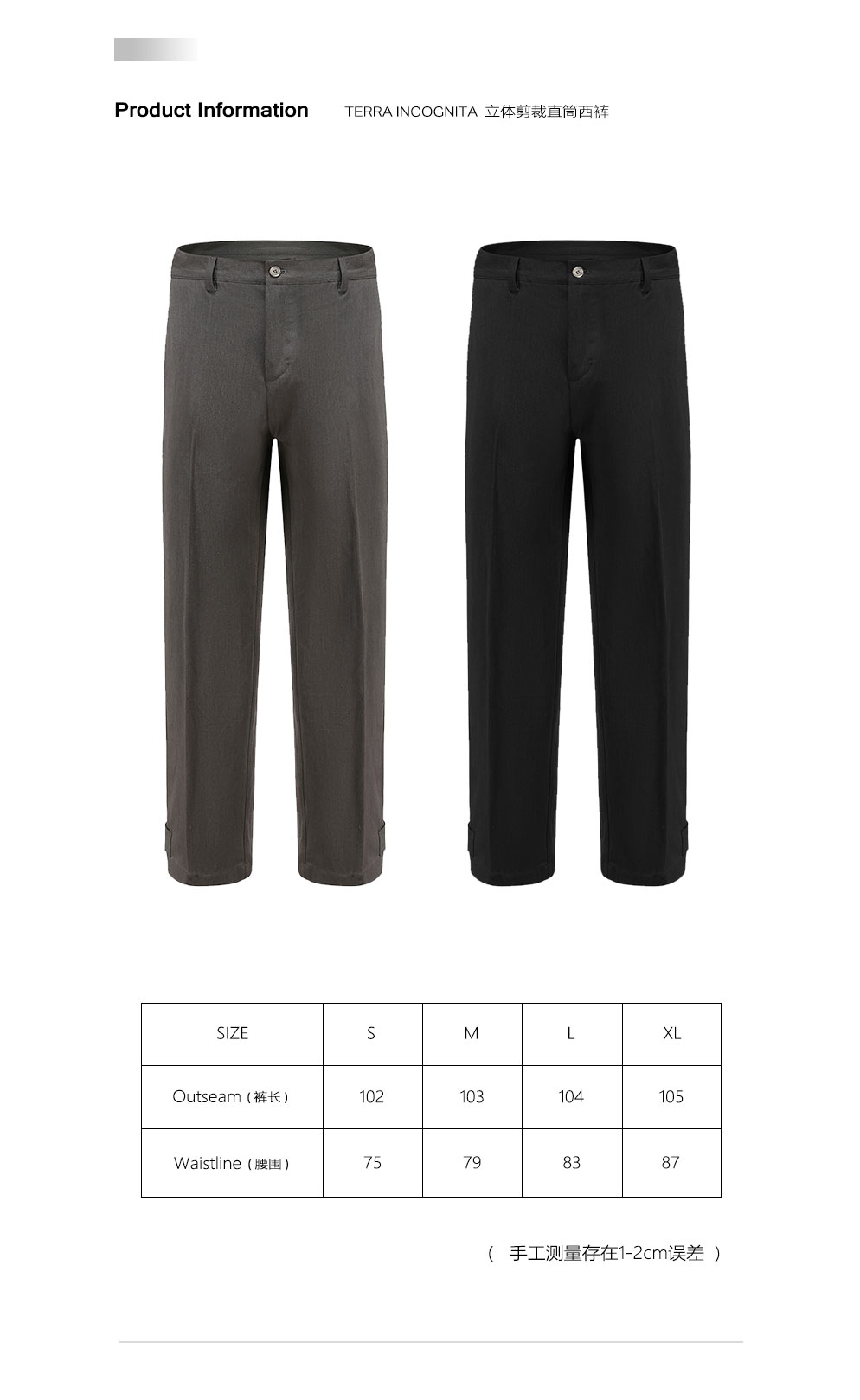 TERRA INCOGNITA 20SS 新品3D镭射标立体剪裁休闲西装长裤