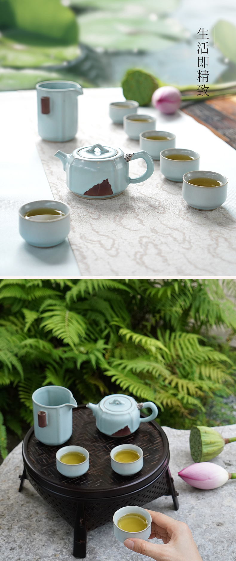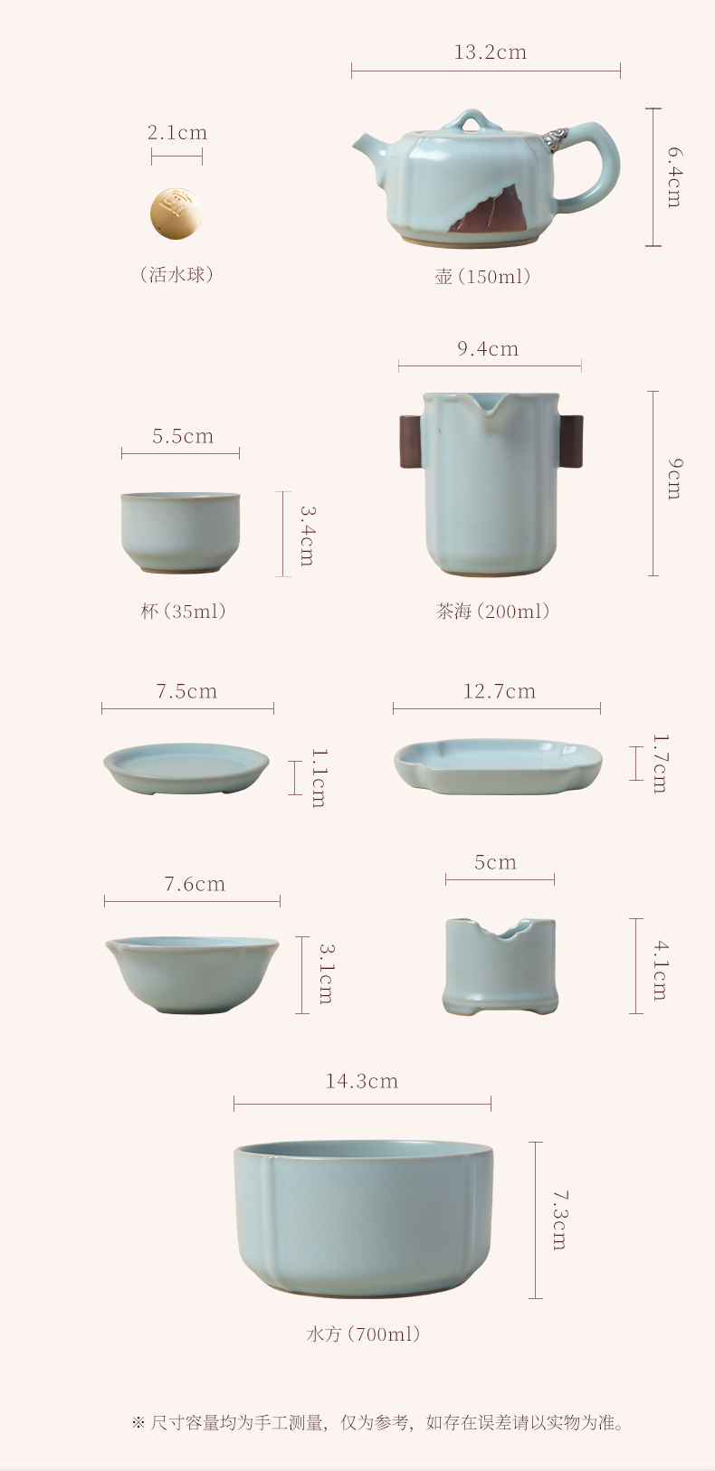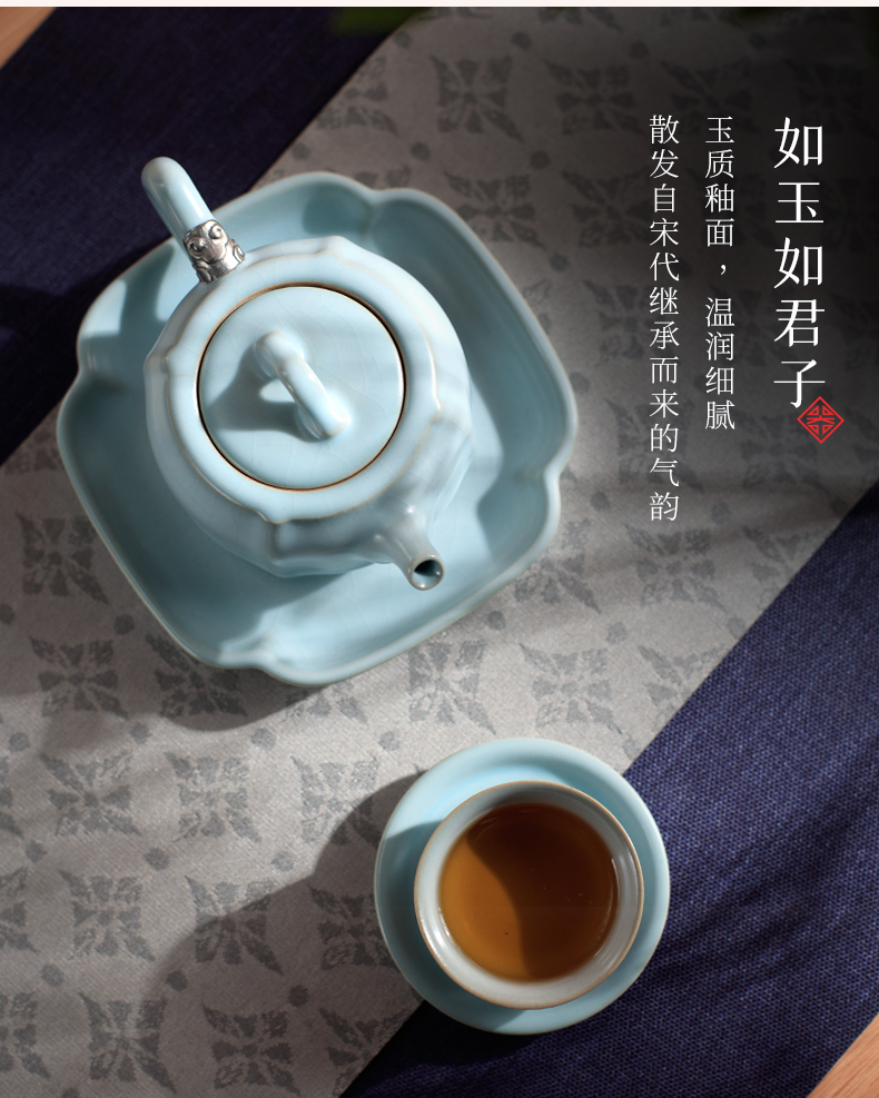 【特惠4折,仅1套,无货退款】陆宝汝窑茶具套装客厅家用整套茶具汝瓷可开片茶壶礼盒装雨过天青汝窑雨过天青茶组