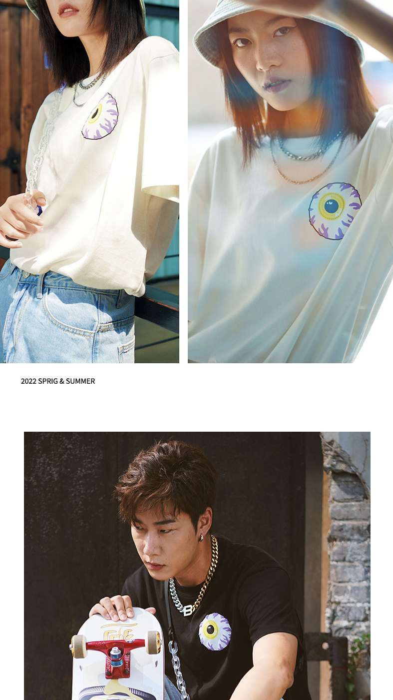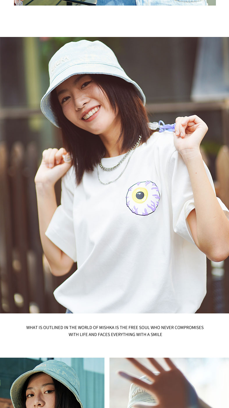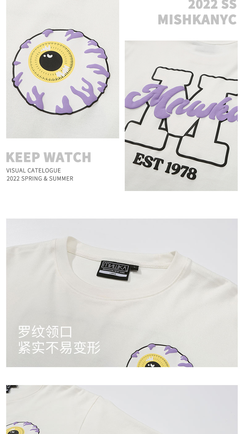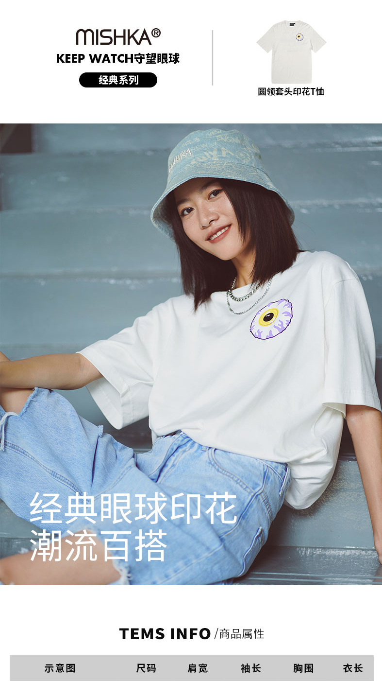 MISHKA大眼球潮牌2022春夏新品街头休闲M印花圆领短袖T恤男女同款M21100051M