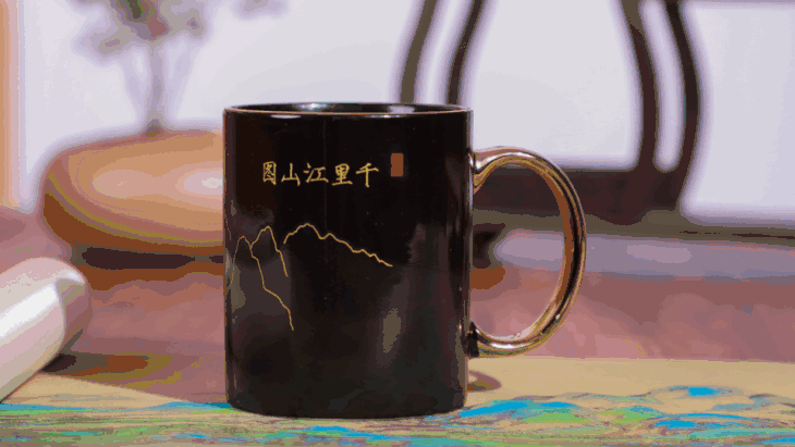 当遇热60℃以上,杯身图案就会渐渐晕开,呈现出《千里江山图》的惊艳之美。