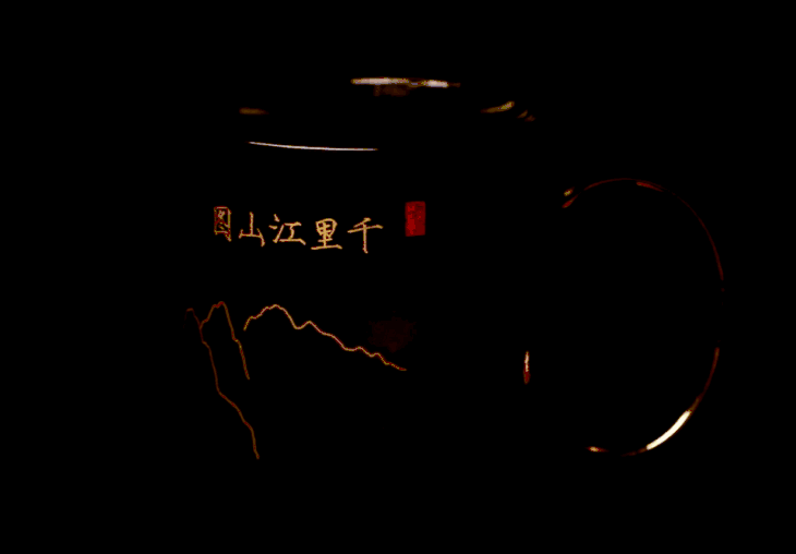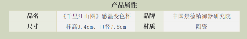 那么,这款《千里江山图》感温变色杯,更是将《千里江山图》展现出来,晕开了一道美。