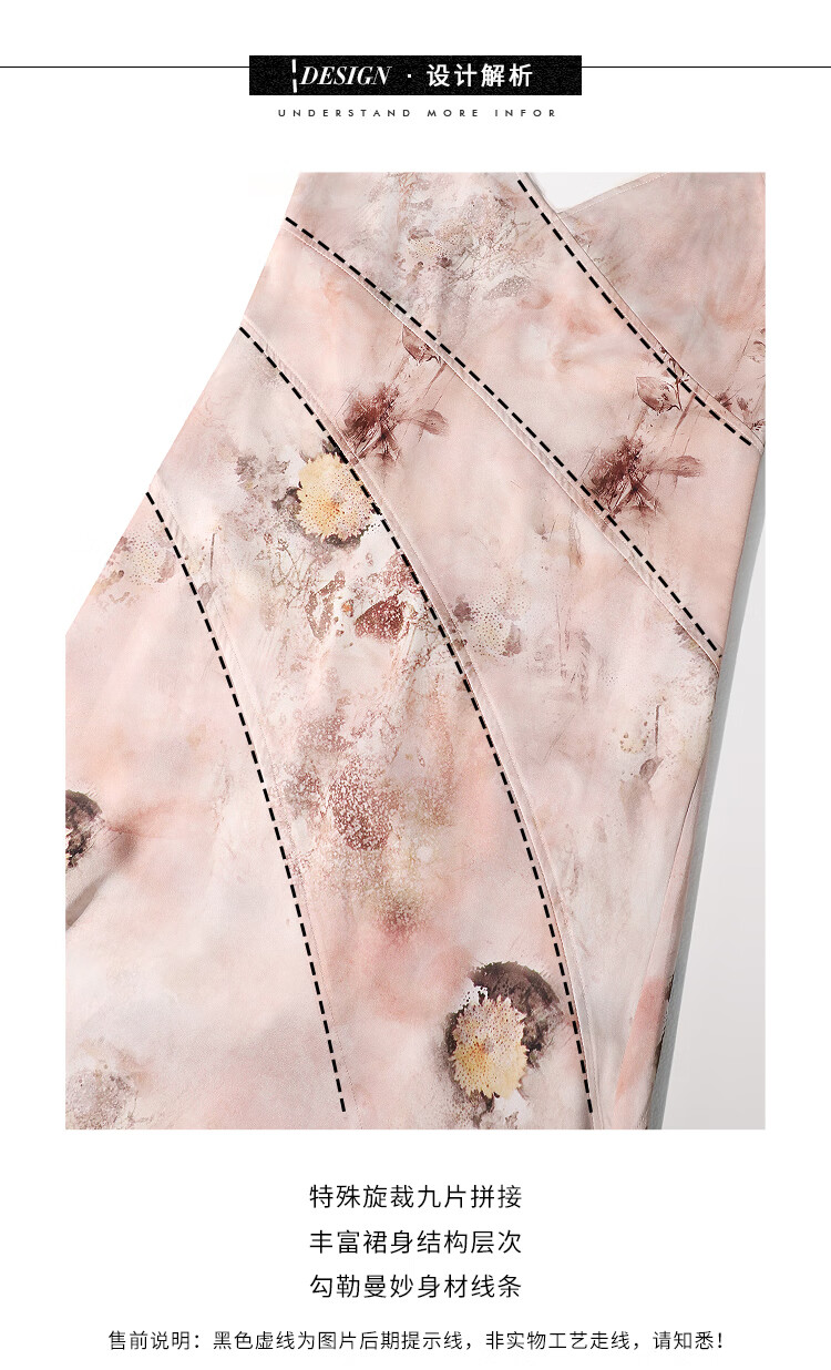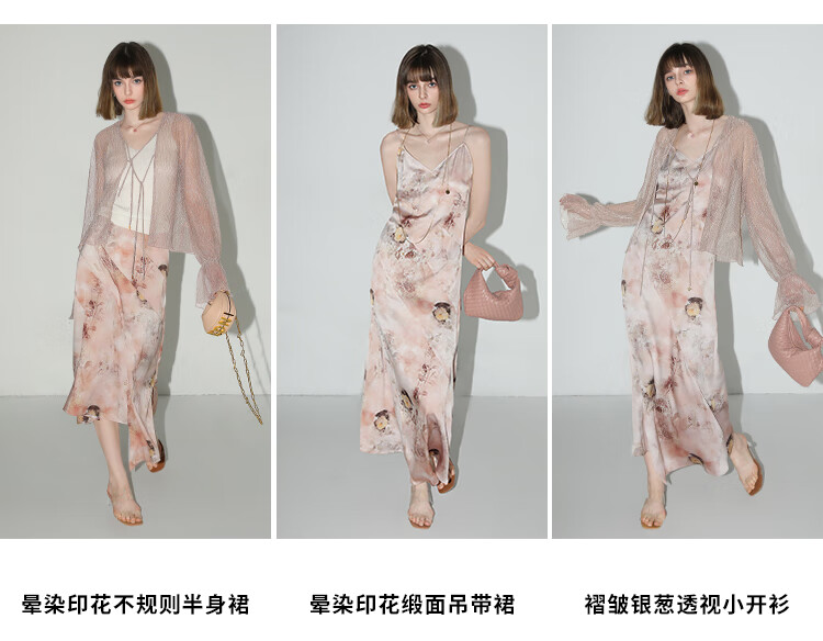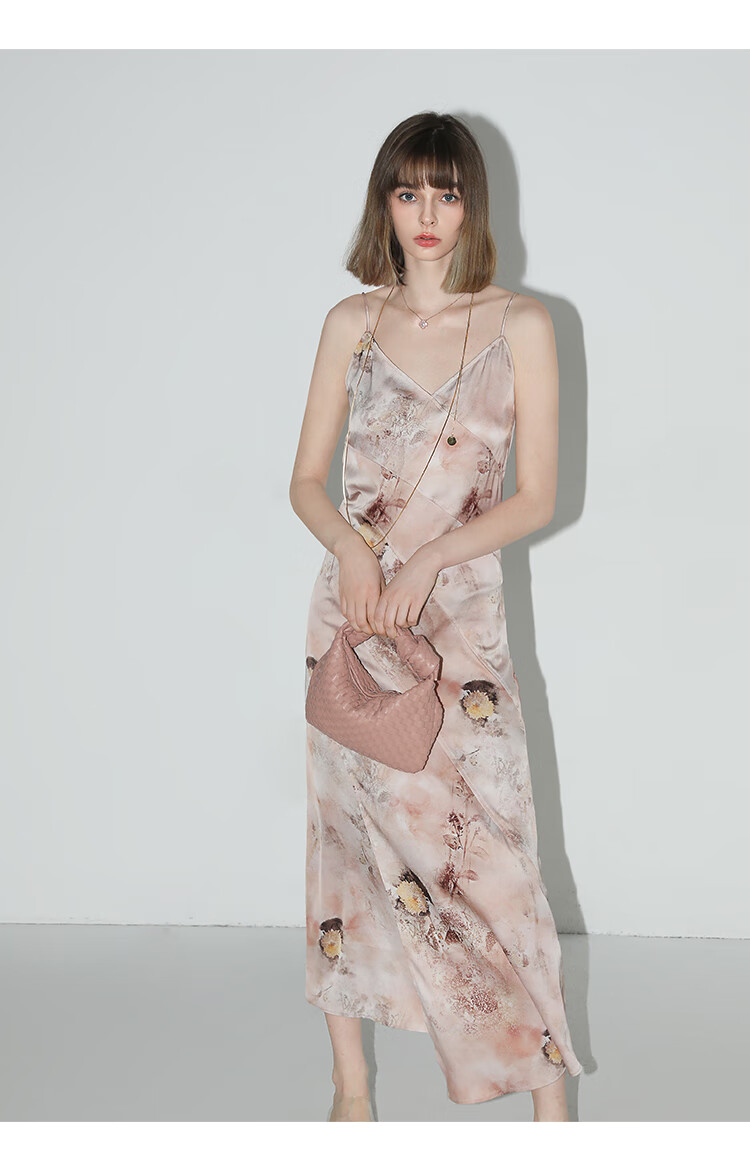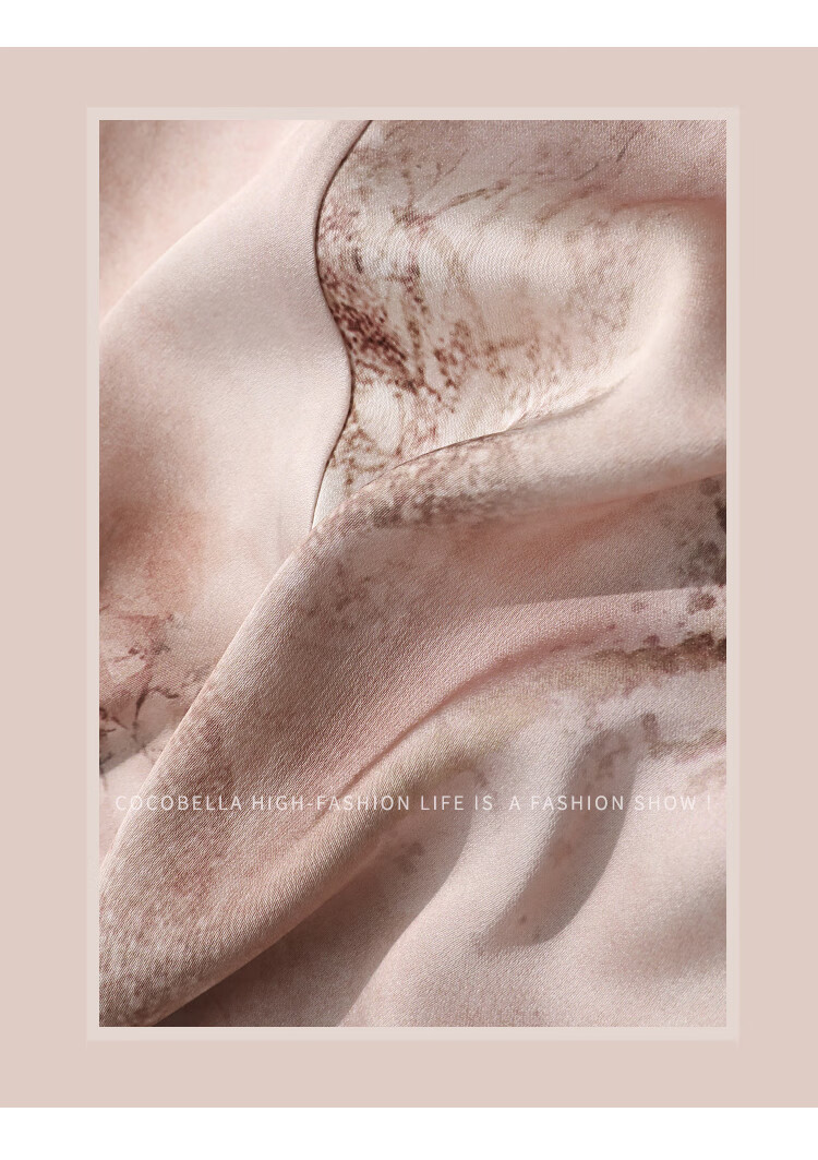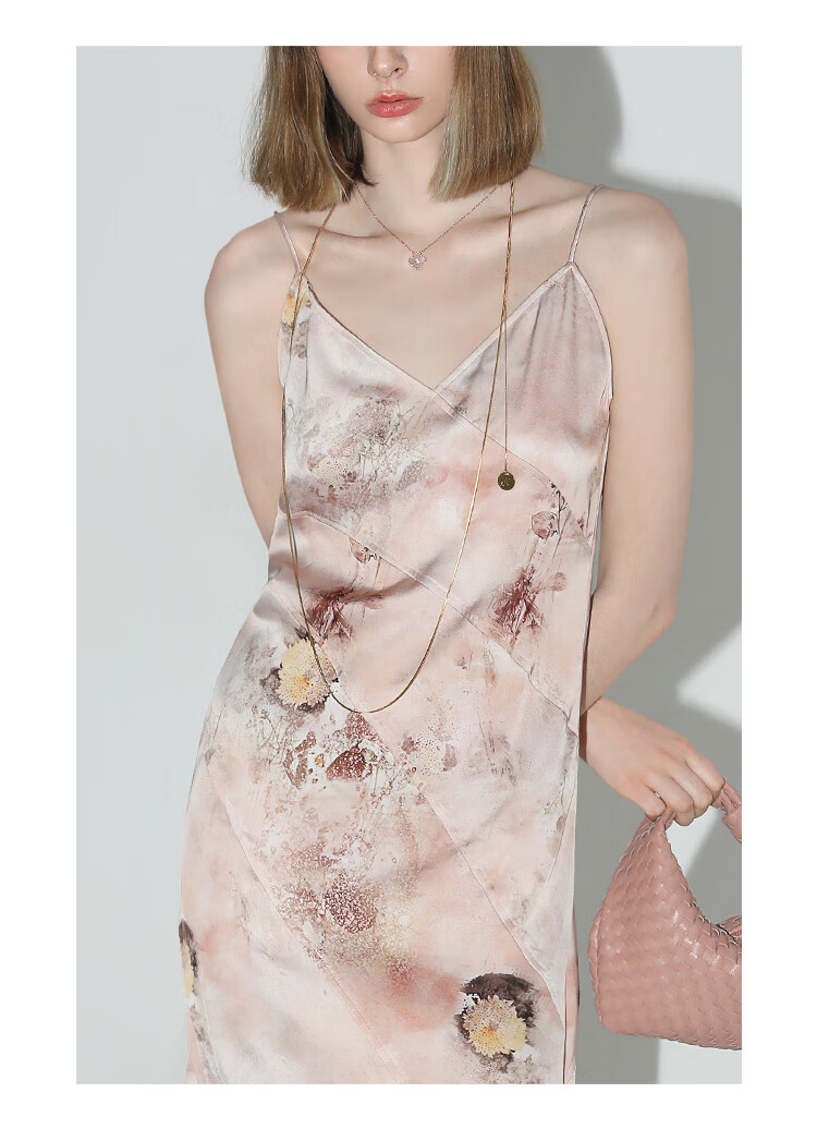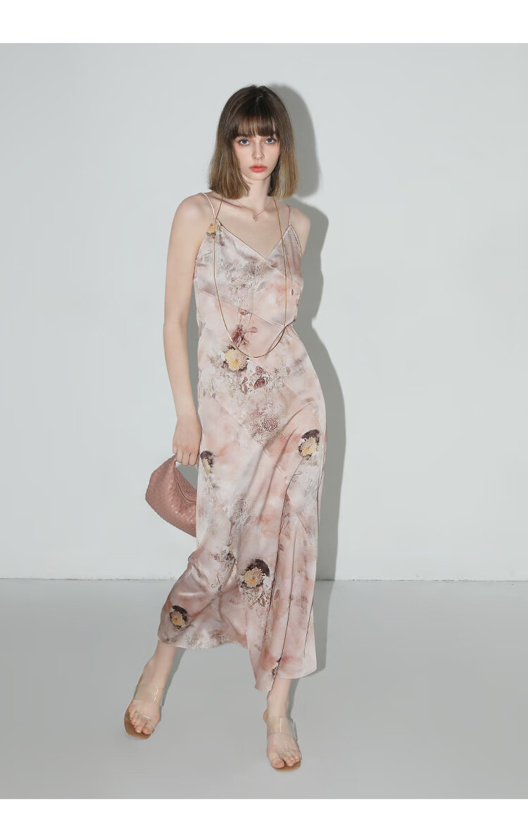 COCOBELLA设计感拼接晕染印花缎面吊带裙气质优雅连衣裙FR7037