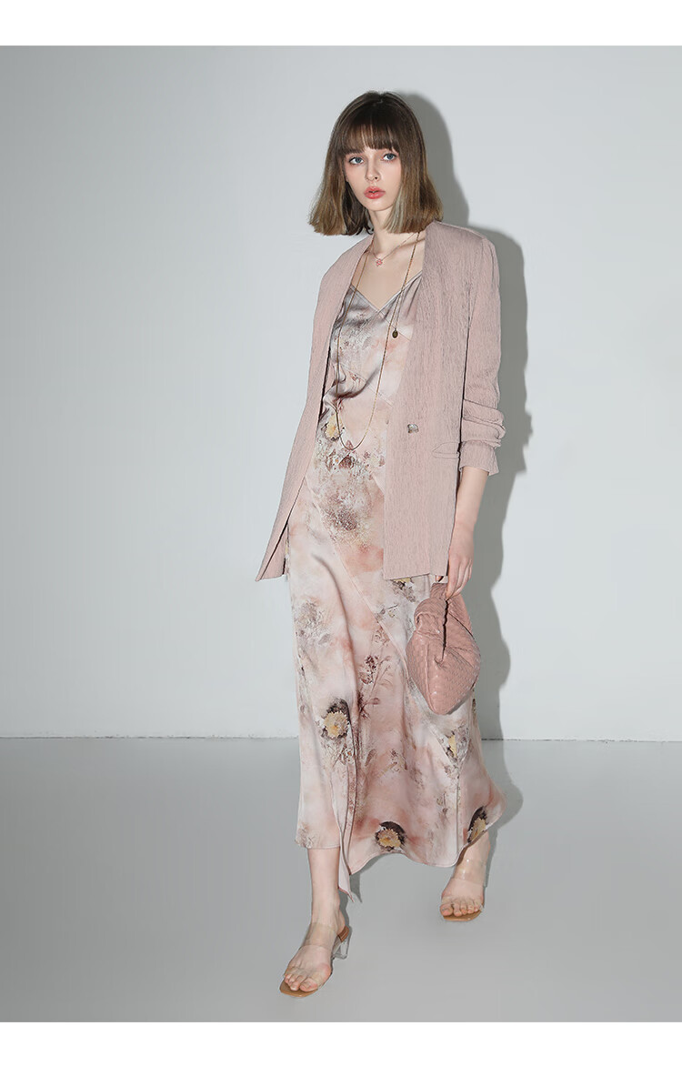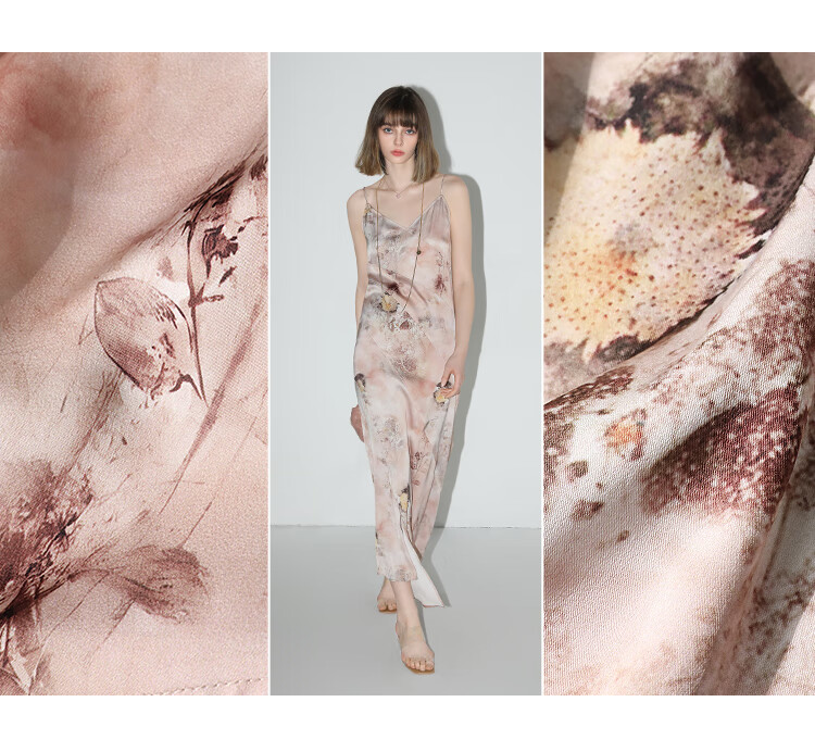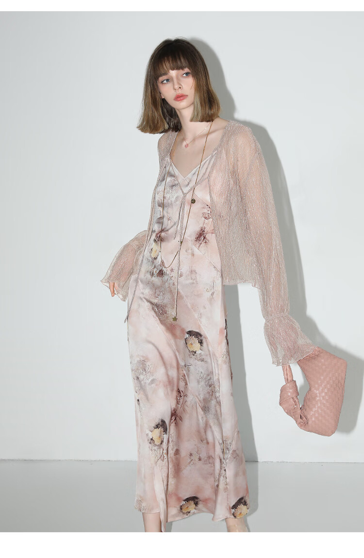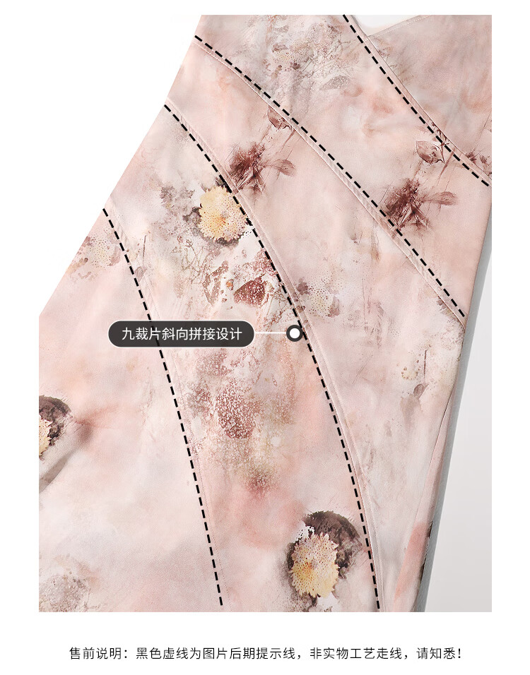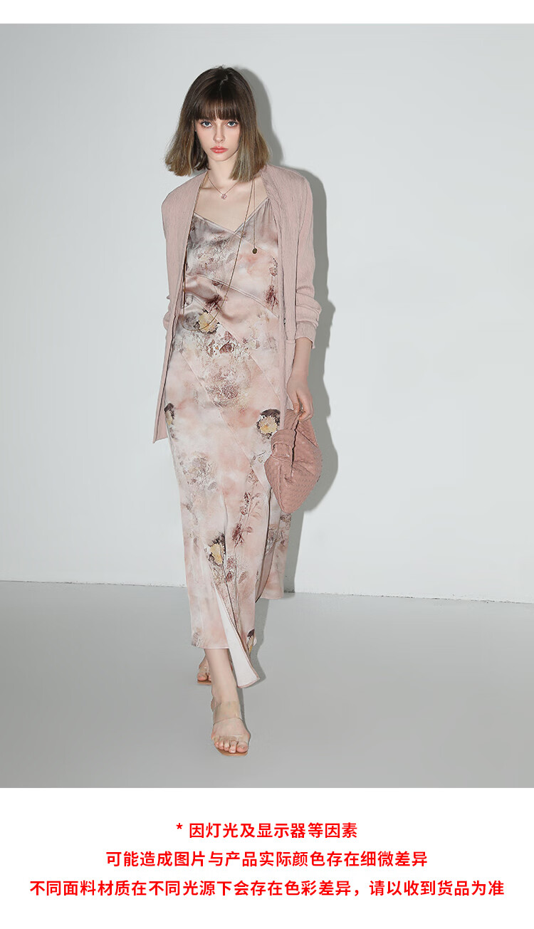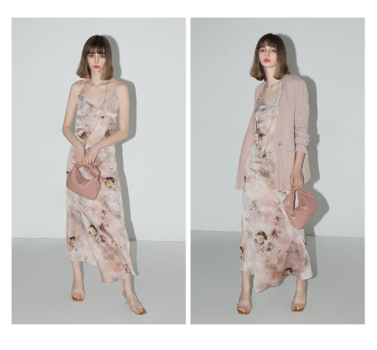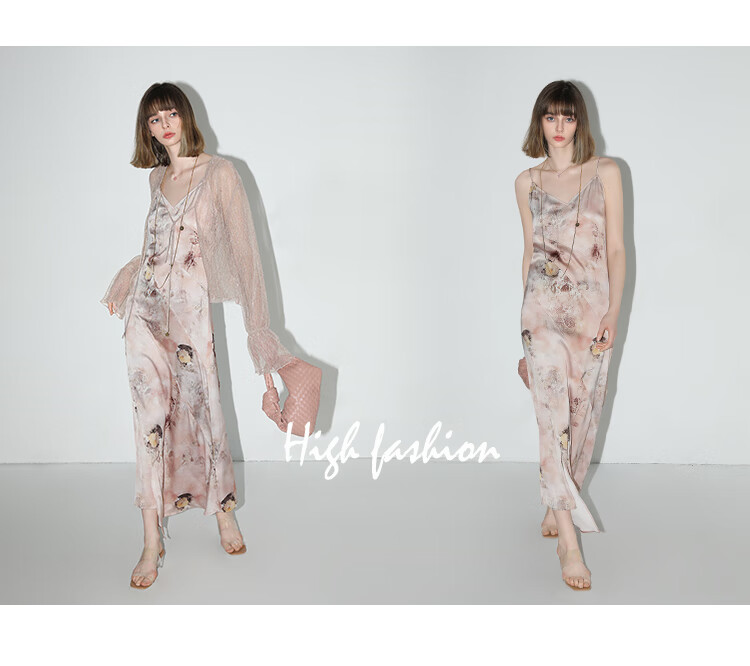 COCOBELLA设计感拼接晕染印花缎面吊带裙气质优雅连衣裙FR7037