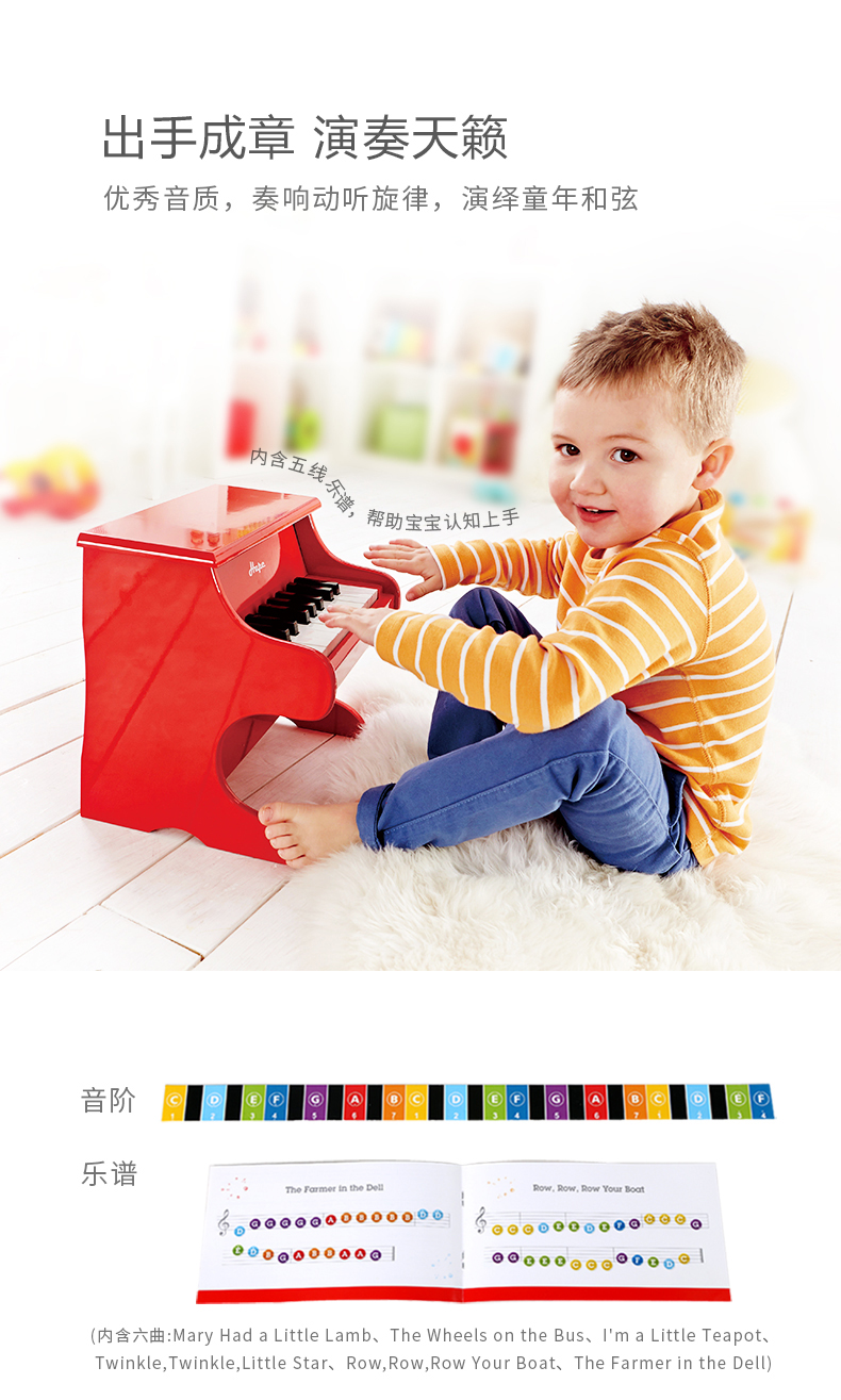 【会员盛典限定】Hape儿童18键红色钢琴(积分兑礼;5号/8号/12号15点抢!)