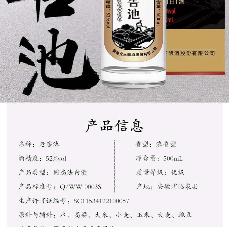 文王贡酒 52°老窖池500ml 【单瓶装】
