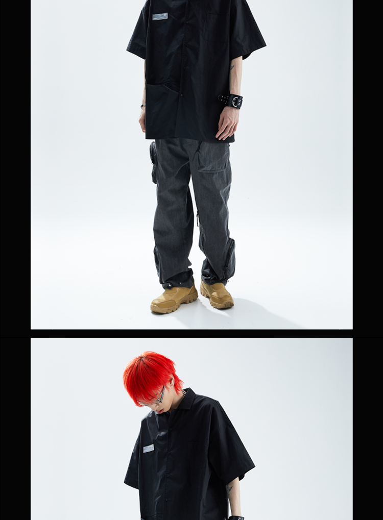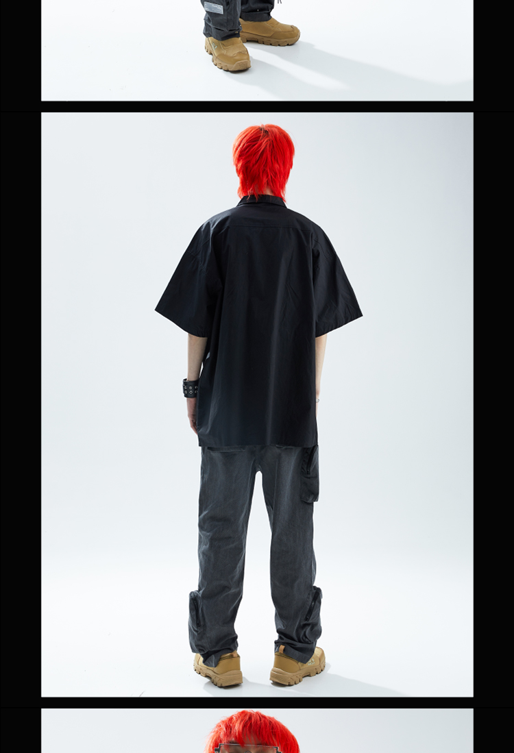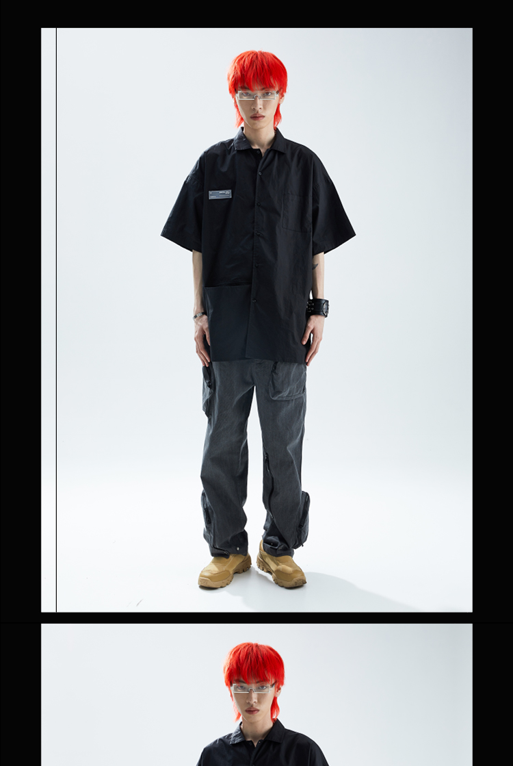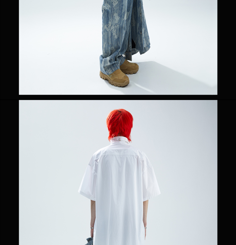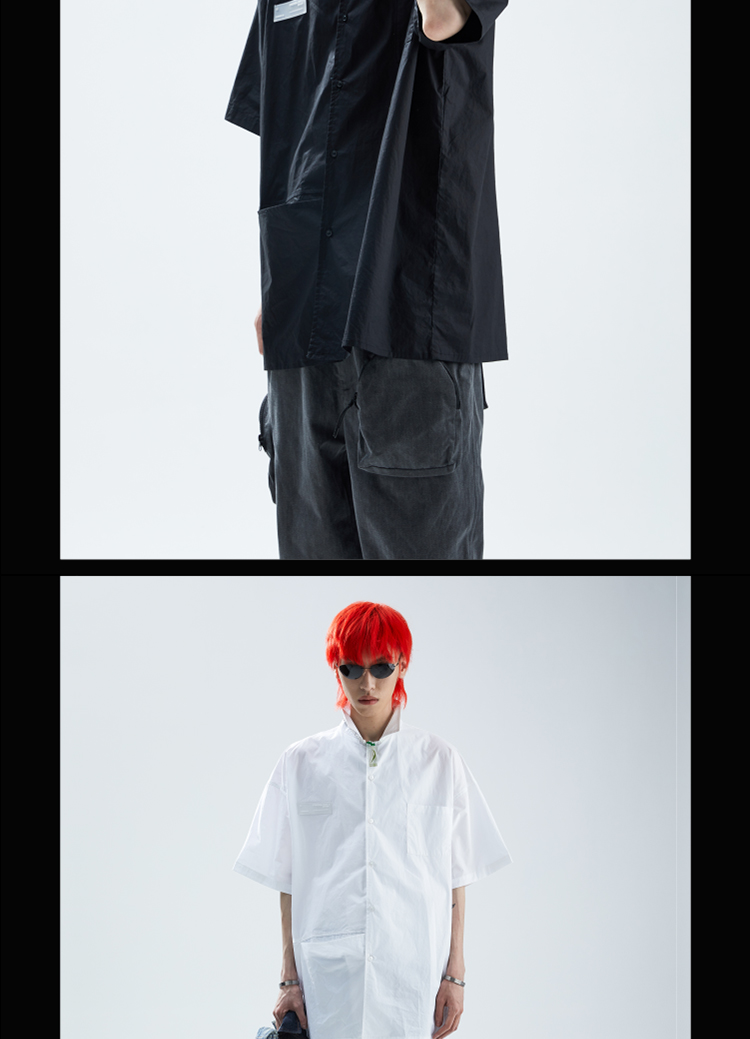 SFTTR 2021SS 断层裁片基础黑/白色解构男女休闲宽松廓形短袖衬衫