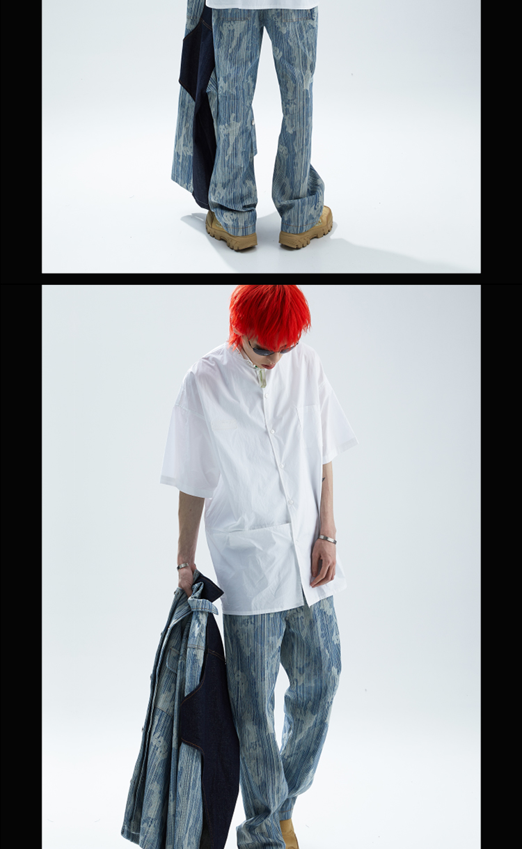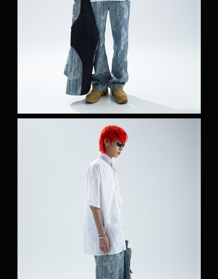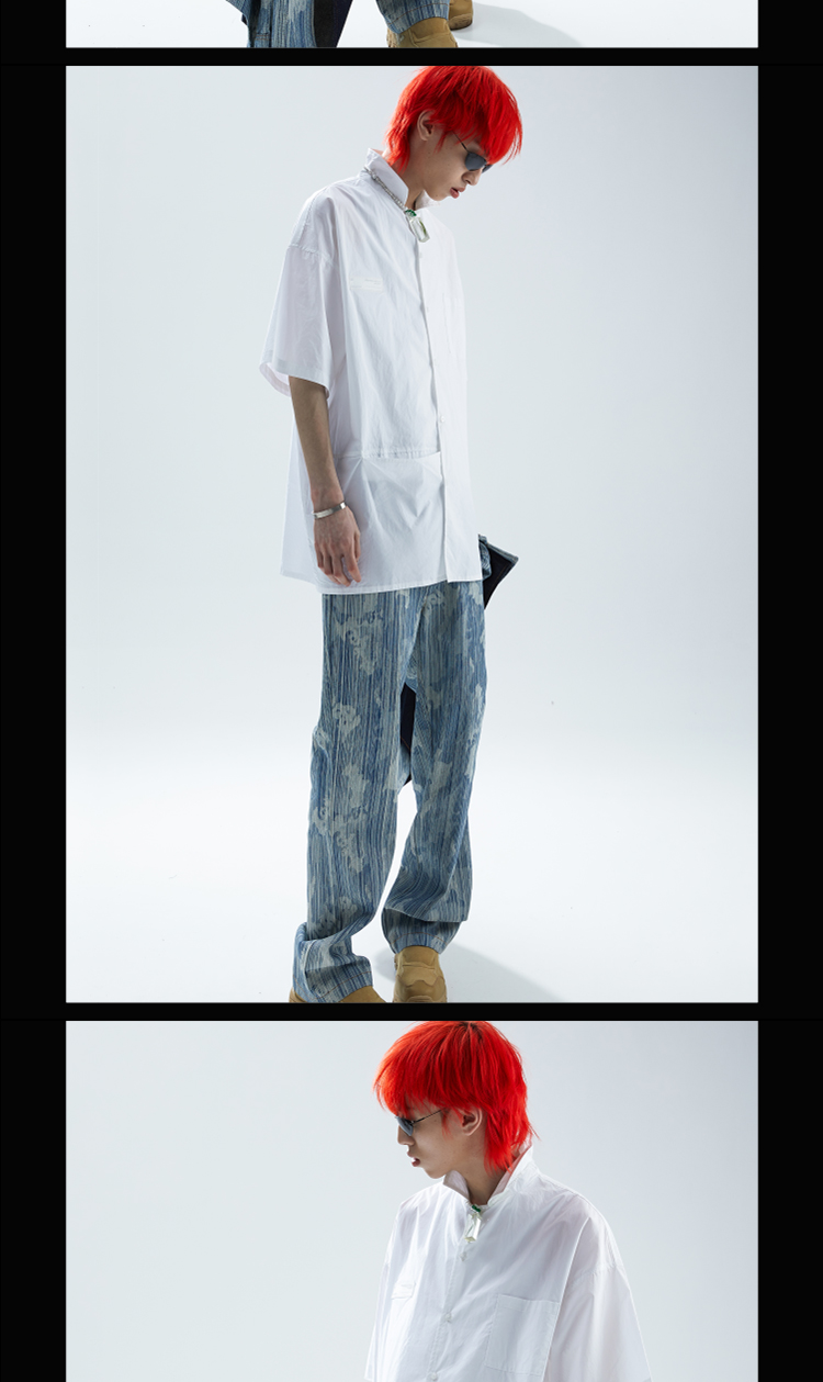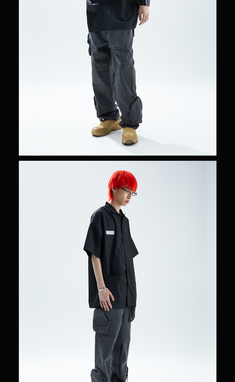 SFTTR 2021SS 断层裁片基础黑/白色解构男女休闲宽松廓形短袖衬衫