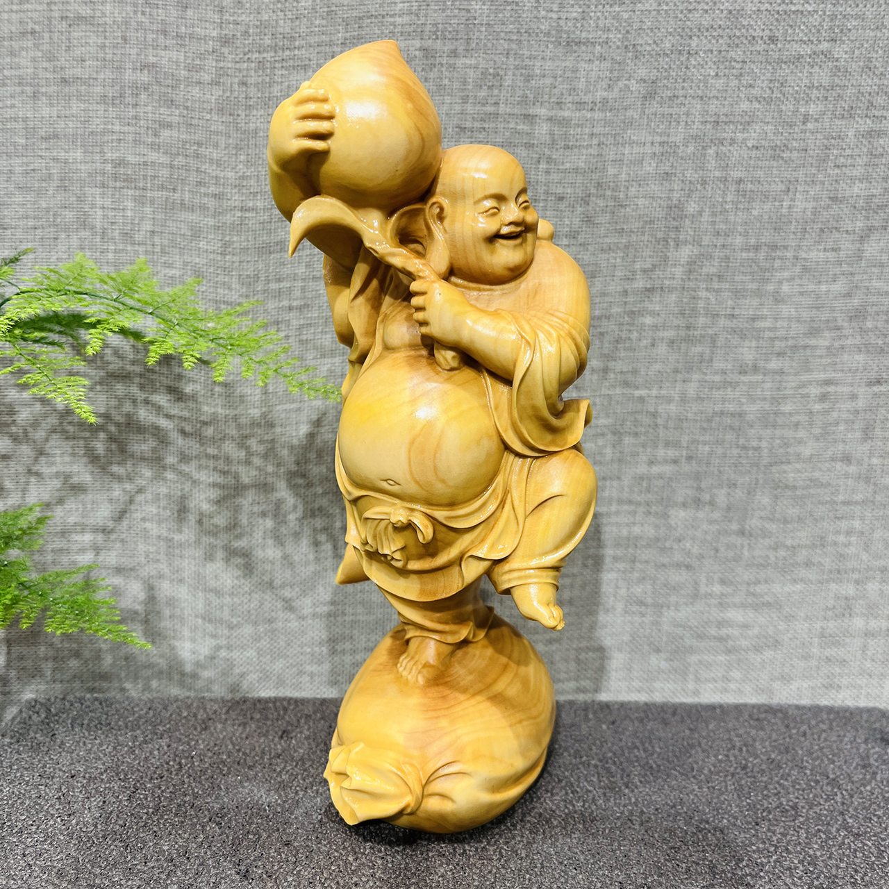开怀弥勒携寿桃,笑意盎然赐福来。欢喜弥勒面容饱满,大耳双垂,寿桃在手,赤脚随心走天下。弥勒佛本寓意慈悲宽容、乐观豁达、福气安康、福气连连、代代有福、福寿无疆等,赠与年长者,寓意福寿安康,健康长寿。